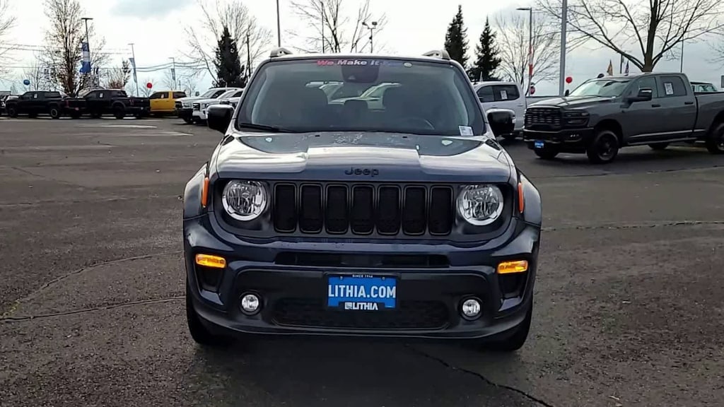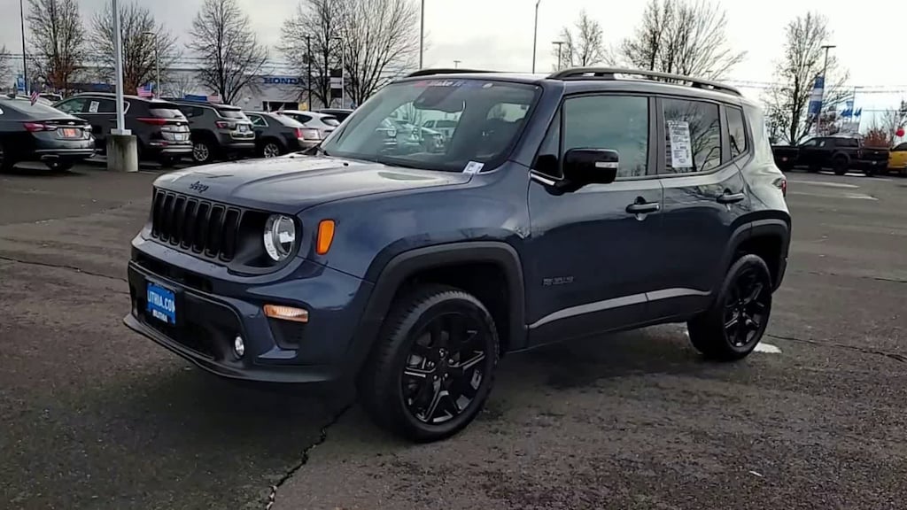 SUN/SOUND GROUP Premium Audio, Dual-Pane Panoramic Power Sunroof, CONVENIENCE GROUP I Leather Wrapped Steering Wheel, Windshield Wiper De-Icer, Rain Sensitive Windshield Wipers, Rear View Auto Dim Mirror, Heated Front Seats, Heated Steering Wheel, Power Adjust 8-Way Driver Seat, Power 2-Way Driver Lumbar Adjust, QUICK ORDER PACKAGE 22M ALTITUDE Engine: 1.3L I4 Turbo MAIR DI w/ESS, Transmission: 9-Speed 948TE Automatic, Remote Start System, Ambient LED Interior Lighting, Automatic Headlamps, Exterior Mirrors w/Supplemental Signals, Cornering Front Fog Lamps, Upgraded Exterior Color Mirror, Altitude Package, Gloss Black Grille-Gloss Black Xhairs, Cluster 7 TFT Color Display, Gloss Black Exterior Accents, Black Side Roof Rails, Premium-Wrapped Steering Wheel, Keyless Entry w/Panic Alarm, TRANSMISSION: 9-SPEED 948TE AUTOMATIC (STD), ENGINE: 1.3L I4 TURBO MAIR DI W/ESS (STD). Jeep Altitude with Slate Blue Pearlcoat exterior and Black interior features a 4 Cylinder Engine with 177 HP at 5750 RPM*.