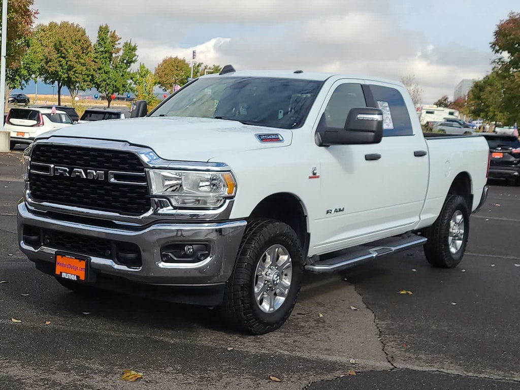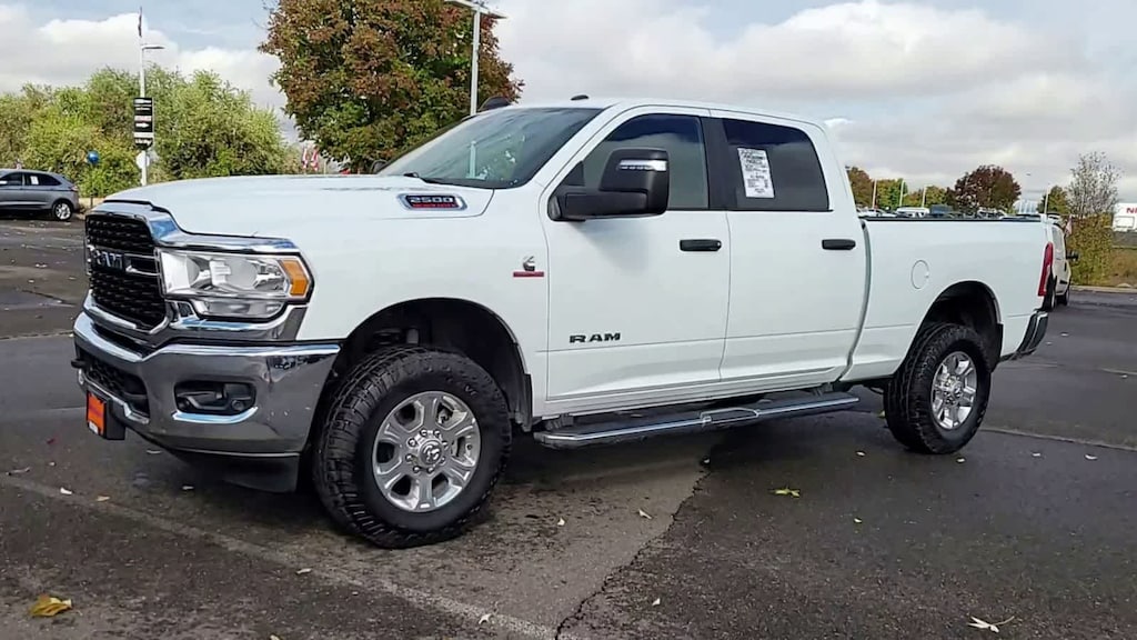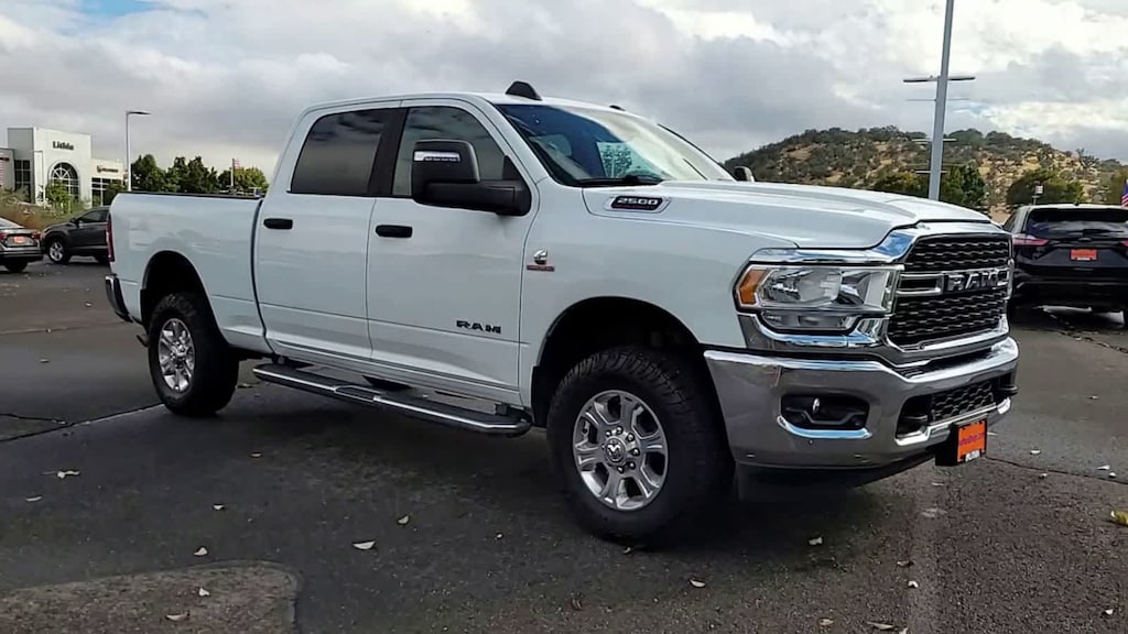 ENGINE: 6.7L I6 CUMMINS TURBO DIESEL Selective Catalytic Reduction (Urea), Dual 730 Amp Maintenance Free Batteries, Cummins Turbo Diesel Badge, Heavy Duty Engine Cooling, Tow Hooks, Diesel Exhaust Brake, Supplemental Heater, Front Bumper Sight Shields, Capless Fuel Fill w/o Discriminator, DIESEL GRAY/BLACK, PREMIUM CLOTH 40/20/40 BENCH SEAT Storage Tray, Rear 60/40 Folding Seat, Front Armrest w/Cupholders, Remote USB Port - Charge Only, Front Center Seat Cushion Storage, Manual Adjust 4-Way Front Passenger Seat, Power Adjust 8-Way Driver Seat, Front Seat Back Map Pockets, Power 2-Way Driver Lumbar Adjust, CHROME FLAT CAB-LENGTH SIDE STEPS, MOPAR SPRAY IN BEDLINER, ANTI-SPIN DIFFERENTIAL REAR AXLE, PARKSENSE FRONT/REAR PARK ASSIST SYSTEM, LEVEL 1 EQUIPMENT GROUP Google Android Auto®, For Details, Visit DriveUconnect.com, For More Info, Call 800-643-2112, Leather Wrapped Steering Wheel, Rear Dome w/On/Off Switch Lamp, Front Fog Lamps, Glove Box Lamp, Auto Power-Folding Mirrors, Footwell Courtesy Lamp, 4G LTE Wi-Fi Hot Spot, Mirror Running Lights, Radio: Uconnect 5 W w/8.4 Display, 8.4 Touchscreen Display, Foam Bottle Insert (Door Trim Panel), Wheels: 18 x 8.0 Polished Aluminum, Apple CarPlay®, Big Horn IP Badge, Power Adjustable Convex Aux Mirrors, Forward & Reverse Utility Lights, Locking Lower Glove Box, Selectable Tire Fill Alert, SiriusXM Satellite Radio, Power Heated Fold Telescope Mirrors, Exterior Mirrors w/Supplemental Signals, Steering Wheel Mounted Audio Controls, Exterior Mirrors Courtesy Lamps, Dual Glove, TRANSMISSION: 6-SPEED AUTOMATIC (68RFE). Ram Big Horn with Bright White Clearcoat exterior and Diesel Gray/Black interior features a Straight 6 Cylinder Engine with 410 HP at 5600 RPM*. AutoCheck One Owner