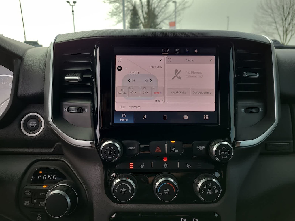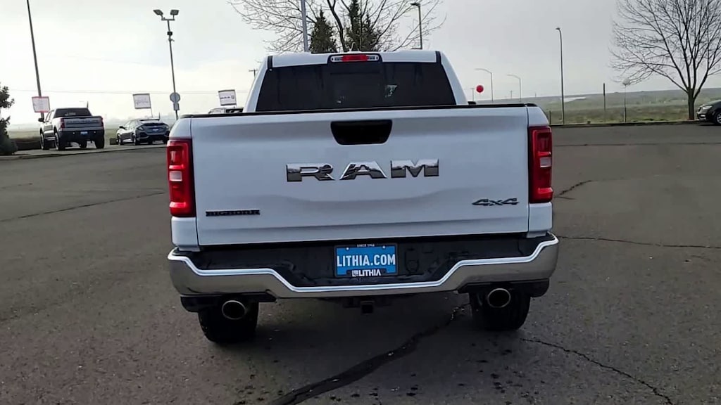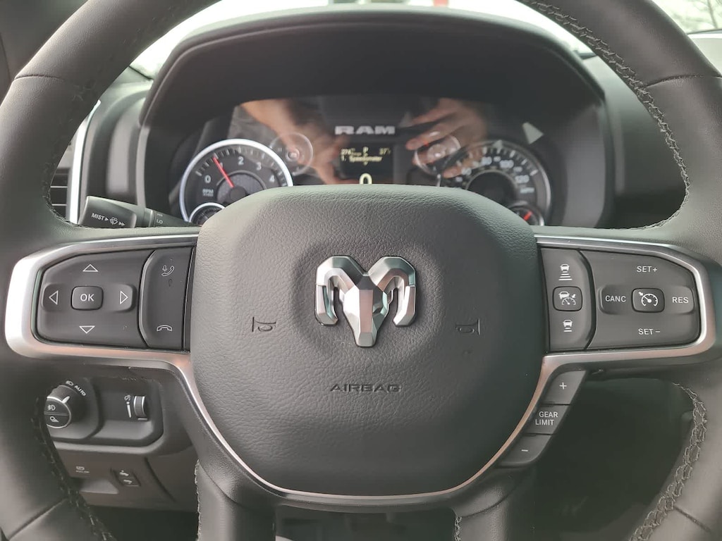 ENGINE: 3.0L I6 HURRICANE SO TWIN TURBO ESS Aux Battery, Secondary Active Grille Shutters, 700 Amp Maintenance Free Battery, Active Noise Control System, GVWR: 7,100 lbs, 3.55 Rear Axle Ratio, Dual Rear Exhaust w/Bright Tips, Start-Stop Dual Battery System, 230 Amp Alternator, 26 Gallon Fuel Tank, BIG HORN LEVEL 1 EQUIPMENT GROUP 400W Inverter, Rear Window Defroster, Rear View Auto Dim Mirror, Power Adjustable Pedals, Leather Wrapped Steering Wheel, Rear Power Sliding Window, Exterior Mirrors w/Supplemental Signals, Steering Wheel Mounted Audio Controls, Exterior Mirrors Courtesy Lamps, Glove Box Lamp, Auto Power-Folding Mirrors, Auto Dim Exterior Driver Mirror, 115V Auxiliary Power Outlet, Universal Garage Door Opener, Heated Front Seats, Heated Steering Wheel, Power Adjust 8-Way Driver Seat, Black Premium Power Mirrors, Sun Visors w/Illuminated Vanity Mirrors, Power 2-Way Driver Lumbar Adjust, MOPAR FRONT & REAR RUBBER FLOOR MATS, TRANSMISSION: 8-SPEED AUTOMATIC (8HP75). Ram Big Horn with Bright White Clearcoat exterior and Black interior features a Straight 6 Cylinder Engine with 420 HP at 5200 RPM*.