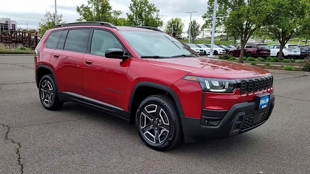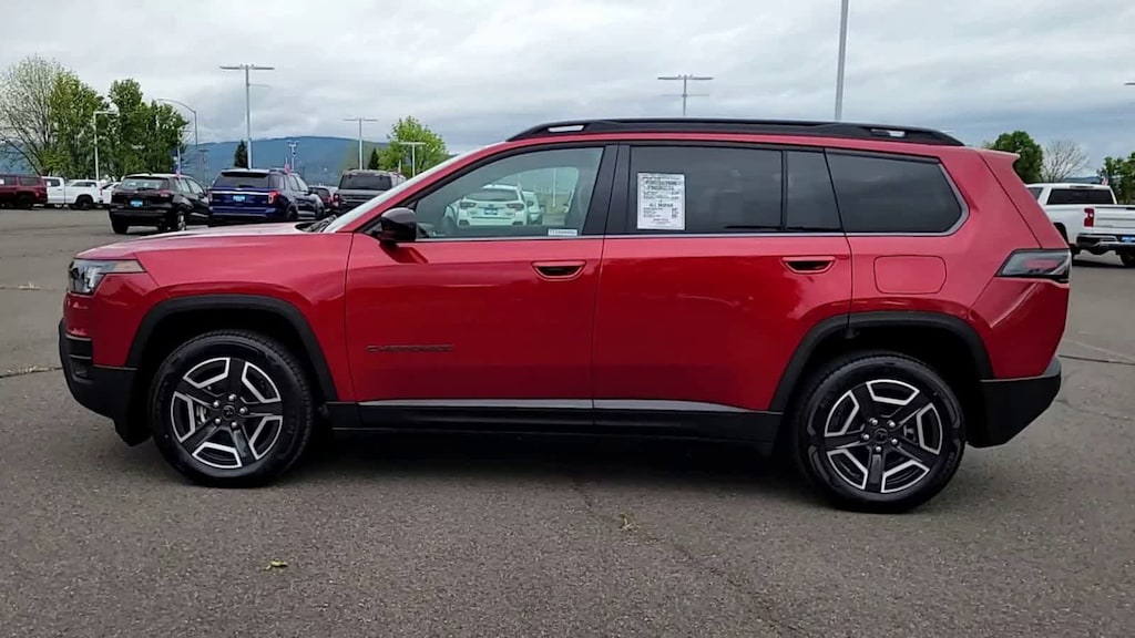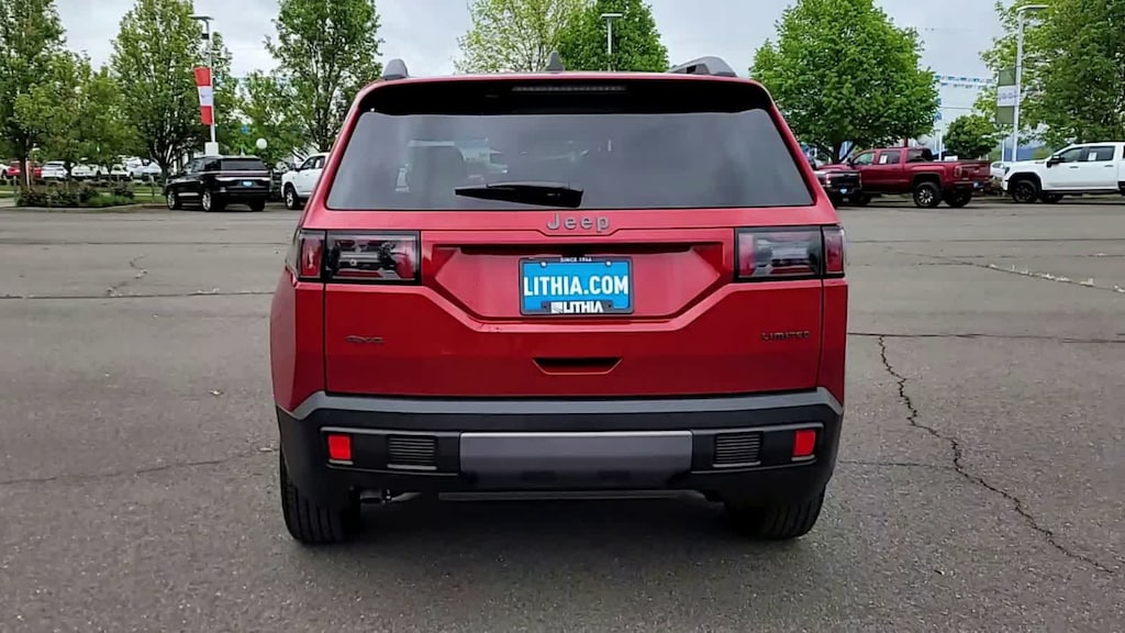QUICK ORDER PACKAGE 23G LIMITED 1.6L I4 EP Turbo Hybrid, BN EVT313 HEV Transmission, Rear View Auto Dim Mirror, Wireless Charging Pad, Power Multi-Function Foldaway Mirrors, Exterior Mirrors w/Supplemental Signals, Power 2-Way Passenger Lumbar Adjust, Exterior Mirrors Courtesy Lamps, Universal Garage Door Opener, Power Adjust 6-Way Front Passenger Seat, Heated Steering Wheel, Limited Badge, Power Liftgate, Security Alarm, Cognac Interior Stitching, DUAL-PANE PANORAMIC SUNROOF, TRAILER TOW GROUP Trailer Hitch Zoom, Compact Spare Tire, 7 and 4 Pin Wiring Harness, Class III Receiver Hitch, Blind Spot w/Trailer Detection, BN EVT313 HEV TRANSMISSION (STD). Jeep Limited with Red Hot Pearlcoat exterior and Arctic/Black interior features a 4 Cylinder Engine with 210 HP at 5500 RPM*.