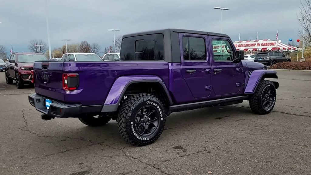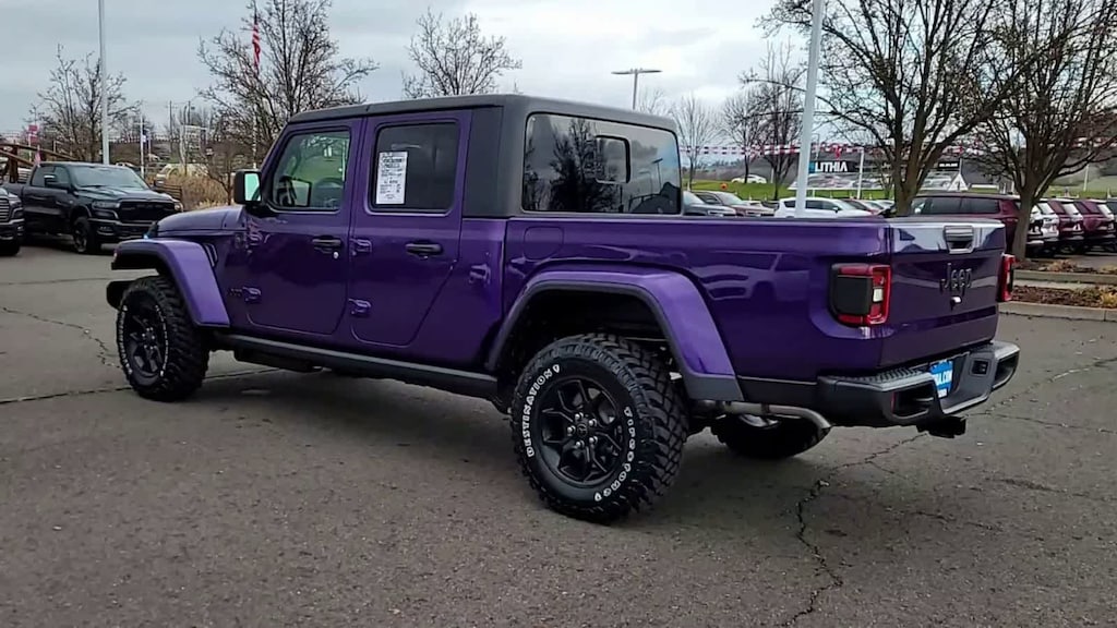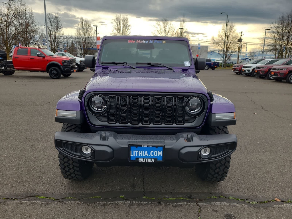 QUICK ORDER PACKAGE 24W WILLYS 3.6L V6 24V VVT UPG I Engine w/ESS, 8-Speed Automatic 850RE Transmission, LED Taillamps, Protection Sill Rails, 4-Wheel Drive Decal, Black Grille, Body Color Fender Flares (2-Piece), Front Heavy Duty Red Accent Shock Absorbers, Daytime Running Lamps LED Accents, Front LED Fog Lamps, LED Premium Reflector Headlamps, E-Locker Rear Axle, Corning Gorilla Glass, Trailer Hitch Zoom, Class IV Receiver Hitch, Security Alarm, Mold In Color Bumper w/Gloss Black, Advanced Brake Assist, Heavy Duty Engine Cooling, Automatic Headlamps, Air Conditioning w/Auto Temp Control, Deep Tint Sunscreen Windows, Off-Road Plus Mode, Willys Hood Decal, Full Speed Forward Collision Warning Plus, Rear Heavy Duty Red Accent Shock Absorbers, Front Door Locks 2-Door Passive Entry, Cluster, BLACK 3-PIECE HARD TOP Freedom Panel Storage Bag, Rear Window Defroster, Rear Sliding Window, CONVENIENCE GROUP Emergency/Assistance Call, Front Door Locks 2-Door Passive Entry, Remote Start System, Body Color Fender Flares (2-Piece), Cluster 7.0 TFT Color Display, Universal Garage Door Opener, Daytime Running Lamp System, Heated Front Seats, Air Conditioning w/Auto Temp Control, Heated Steering Wheel, Corning Gorilla Glass, ALPINE PREMIUM AUDIO SYSTEM, MOPAR SPRAY IN BEDLINER, 8-SPEED AUTOMATIC 850RE TRANSMISSION (STD), 3.6L V6 24V VVT UPG I ENGINE W/ESS (STD). Jeep Willys with Reign exterior and Black interior features a V6 Cylinder Engine with 285 HP at 6400 RPM*.