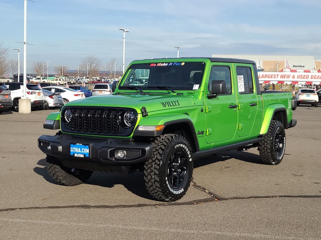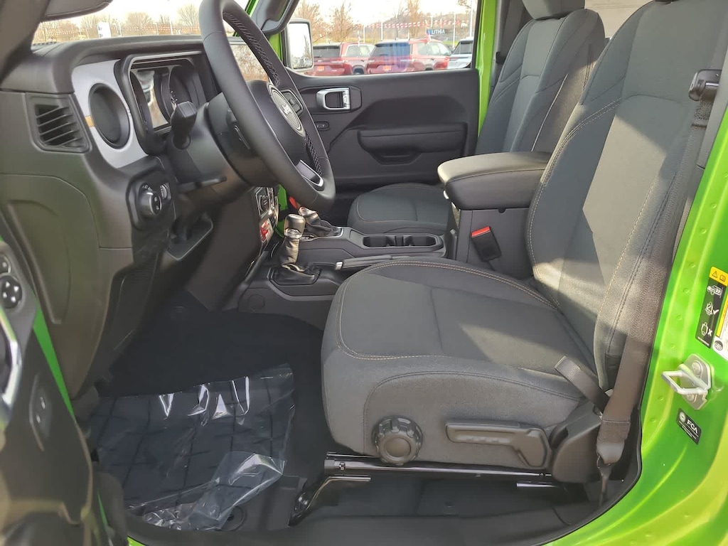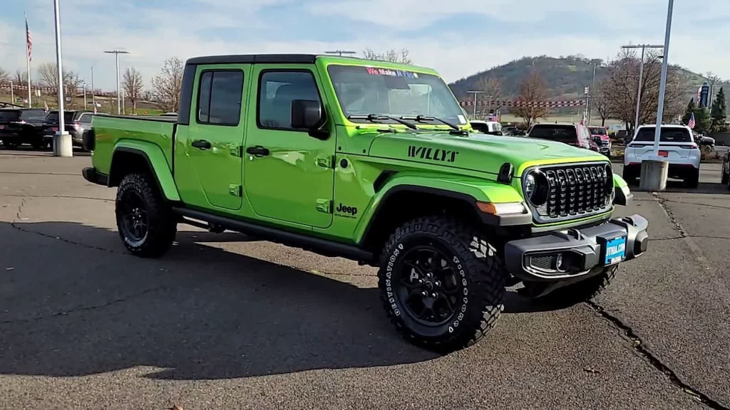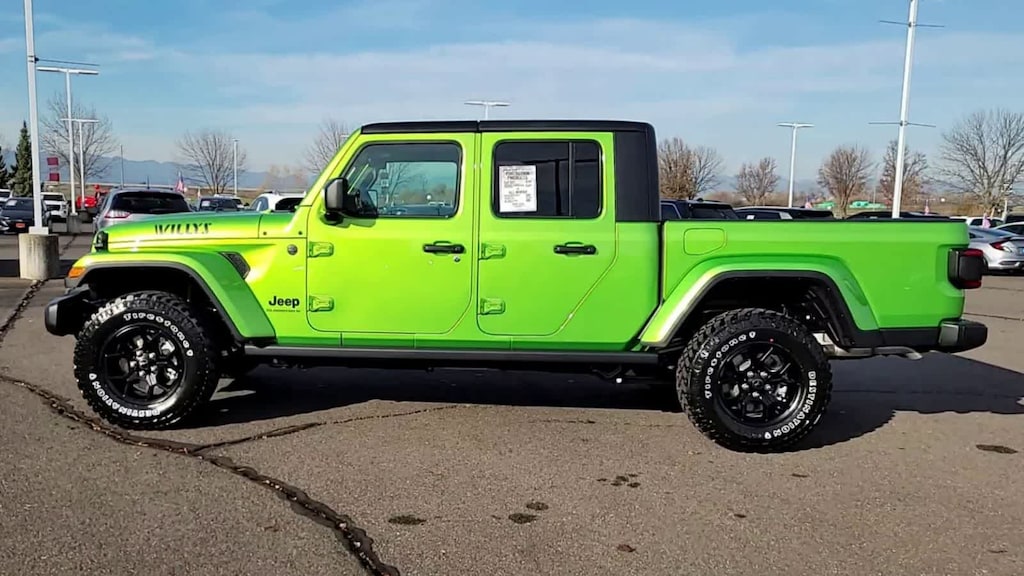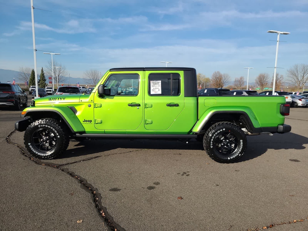 QUICK ORDER PACKAGE 24W WILLYS 3.6L V6 24V VVT UPG I Engine w/ESS, 8-Speed Automatic 850RE Transmission, LED Taillamps, Protection Sill Rails, 4-Wheel Drive Decal, Black Grille, Body Color Fender Flares (2-Piece), Front Heavy Duty Red Accent Shock Absorbers, Daytime Running Lamps LED Accents, Front LED Fog Lamps, LED Premium Reflector Headlamps, E-Locker Rear Axle, Corning Gorilla Glass, Trailer Hitch Zoom, Class IV Receiver Hitch, Security Alarm, Mold In Color Bumper w/Gloss Black, Advanced Brake Assist, Heavy Duty Engine Cooling, Automatic Headlamps, Air Conditioning w/Auto Temp Control, Deep Tint Sunscreen Windows, Off-Road Plus Mode, Willys Hood Decal, Full Speed Forward Collision Warning Plus, Rear Heavy Duty Red Accent Shock Absorbers, Front Door Locks 2-Door Passive Entry, Cluster, CONVENIENCE GROUP Emergency/Assistance Call, Front Door Locks 2-Door Passive Entry, Remote Start System, Cluster 7.0 TFT Color Display, Universal Garage Door Opener, Daytime Running Lamp System, Heated Front Seats, Air Conditioning w/Auto Temp Control, Heated Steering Wheel, Corning Gorilla Glass, ALPINE PREMIUM AUDIO SYSTEM, TECHNOLOGY GROUP Media Hub w/2 Charge Only USBs, 400W Inverter, 115V Auxiliary Power Outlet, HD Radio, Connected Travel & Traffic Services, Rear View Auto Dim Mirror, Integrated Voice Command w/Bluetooth®, Uconnect 5 Nav w/12.3 Display, GPS Navigation, MOPAR SPRAY IN BEDLINER, 8-SPEED AUTOMATIC 850RE TRANSMISSION (STD), 3.6L V6 24V VVT UPG I ENGINE W/ESS (STD), BLACK 3-PIECE HARD TOP Freedom Panel Storage Bag, Rear Window Defroster, Rear Sliding Window. Jeep Willys with Mojito exterior and Black interior features a V6 Cylinder Engine with 285 HP at 6400 RPM*.