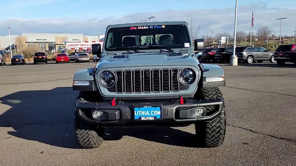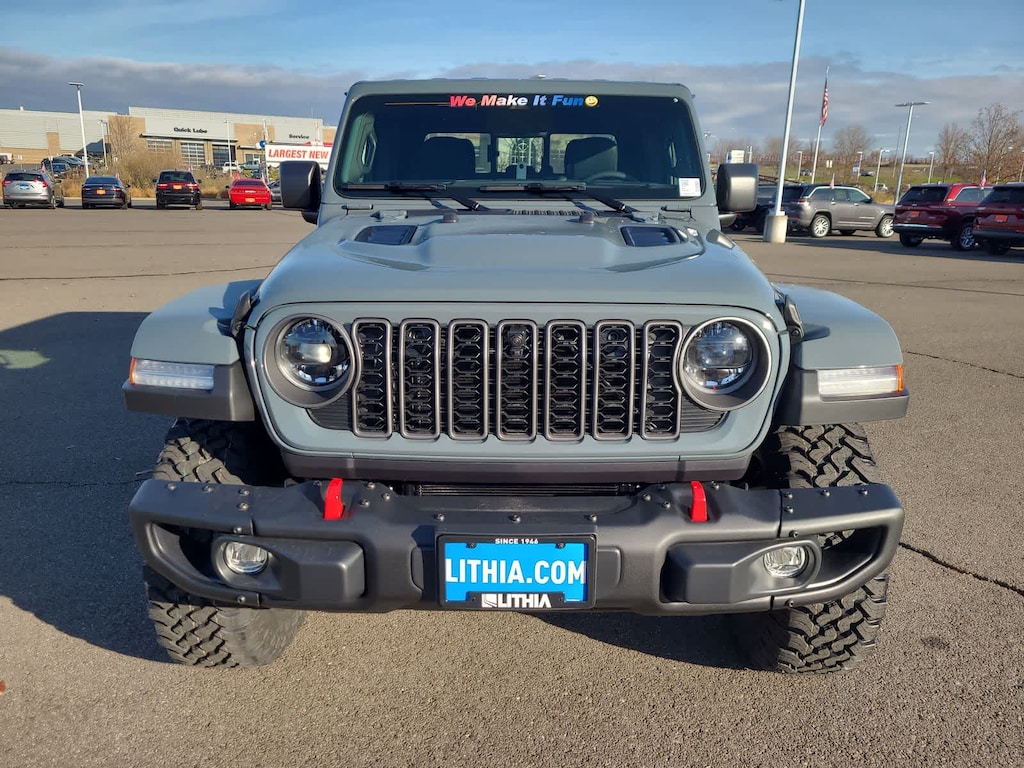 QUICK ORDER PACKAGE 24Y RUBICON X 3.6L V6 24V VVT UPG I Engine w/ESS, 8-Speed Automatic 850RE Transmission, Steel Front Bumper, Integrated Off-Road Camera, Blind Spot & Cross Path Detection, Rear View Auto Dim Mirror, Freedom Panel Storage Bag, Rear Window Defroster, Rear Sliding Window, Heated Front Seats, Bluetooth® Wireless Speaker, Integrated Voice Command w/Bluetooth®, Auto High Beam Headlamp Control, Universal Garage Door Opener, Heated Steering Wheel, ParkSense Rear Park Assist System, Rubicon Hood Top Decal, 17 X 7.5 MACHINED WHEELS W/BLACK POCKETS, MOPAR SPRAY IN BEDLINER, 8-SPEED AUTOMATIC 850RE TRANSMISSION (STD), 3.6L V6 24V VVT UPG I ENGINE W/ESS (STD). Jeep Rubicon X with Anvil Clearcoat exterior and Black interior features a V6 Cylinder Engine with 285 HP at 6400 RPM*.