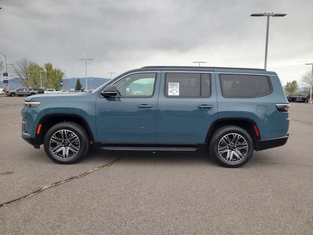 8-SPEED AUTO 880RE TRANSMISSION (STD), 3.0L I6 HURRICANE SO TWIN TURBO ESS ENGINE (STD). Jeep Grand Wagoneer with Steel Blue exterior and Global Black interior features a Straight 6 Cylinder Engine with 420 HP at 5200 RPM*.