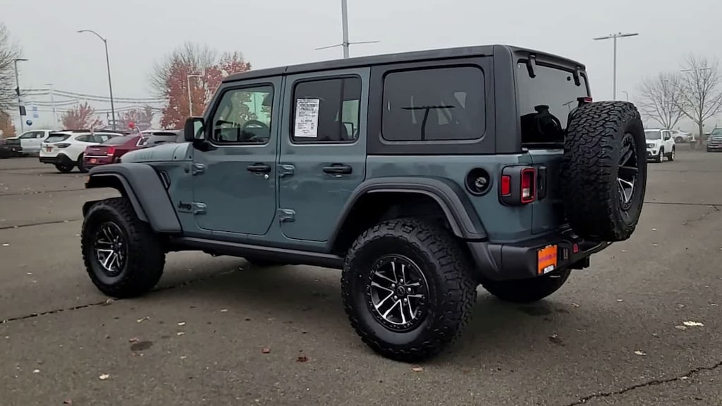 QUICK ORDER PACKAGE 24W WILLYS 3.6L V6 24V VVT UPG I Engine w/ESS, 8-Speed Automatic 850RE Transmission, 7 & 4 Pin Wiring Harness, Conventional Differential Front Axle, 4-Wheel Drive Swing Gate Decal, Black Grille, Injection Molded Black Rear Bumper, Dana M210 Wide HD Tube Front Axle, Daytime Running Lamps LED Accents, Front LED Fog Lamps, LED Premium Reflector Headlamps, E-Locker Rear Axle, Corning Gorilla Glass, Security Alarm, Class II Receiver Hitch, Mold In Color Bumper w/Gloss Black, Advanced Brake Assist, Automatic Headlamps, Off-Road Plus Mode, Willys Hood Decal, Full Speed Forward Collision Warning Plus, Rock Protection Sill Rails, Power Heated Mirrors, Enhanced Adaptive Cruise Control, Auxiliary Switches, Dana M220 Wide Rear Axle, Molded in Color Rubicon Highline Flare, Premium, XTREME 35 TIRE PACKAGE LT315/70R17C 113/110S Tires, Wheel Flare Extensions, MOPAR Tire Relocation Kit, Anti-Lock 4-Wheel Disc Perf Brakes, 17 x 8 Machined Wheels w/Black Pockets, 4.56 Rear Axle Ratio, Injection Molded Black Rear Bumper, Delete 4-Wheel Drive Swing Gate Decal, 35 Tire Suspension, MOPAR Hinge-Gate Reinforcement, MOPAR Jack Spacer, Molded in Color Rubicon Highline Flare, 6,250 lbs GVWR, 8-SPEED AUTOMATIC 850RE TRANSMISSION Adaptive Cruise Control w/Stop, Anti-Lock 4-Wheel Disc Brakes, Integrated Radar Camera Module (IRCM), Dana M200 Rear Axle, Selec-Speed Control, CONVENIENCE GROUP Emergency/Assistance Call, 2-Door Passive Entry, Front Door Locks, Cluster 7.0 TFT Color Display, Universal Garage Door Opener, Heated Front Seats, Air Conditioning w/Auto Temp Control, Heated Steering Wheel, Air Filtering, BLACK 3-PIECE HARD TOP Freedom Panel Storage Bag, Rear Window Defroster, Rear Window Wiper/Washer, 3.6L V6 24V VVT UPG I ENGINE W/ESS Engine Oil Cooler (STD). Jeep Willys with Anvil Clearcoat exterior and Black interior features a V6 Cylinder Engine with 285 HP at 6400 RPM*.