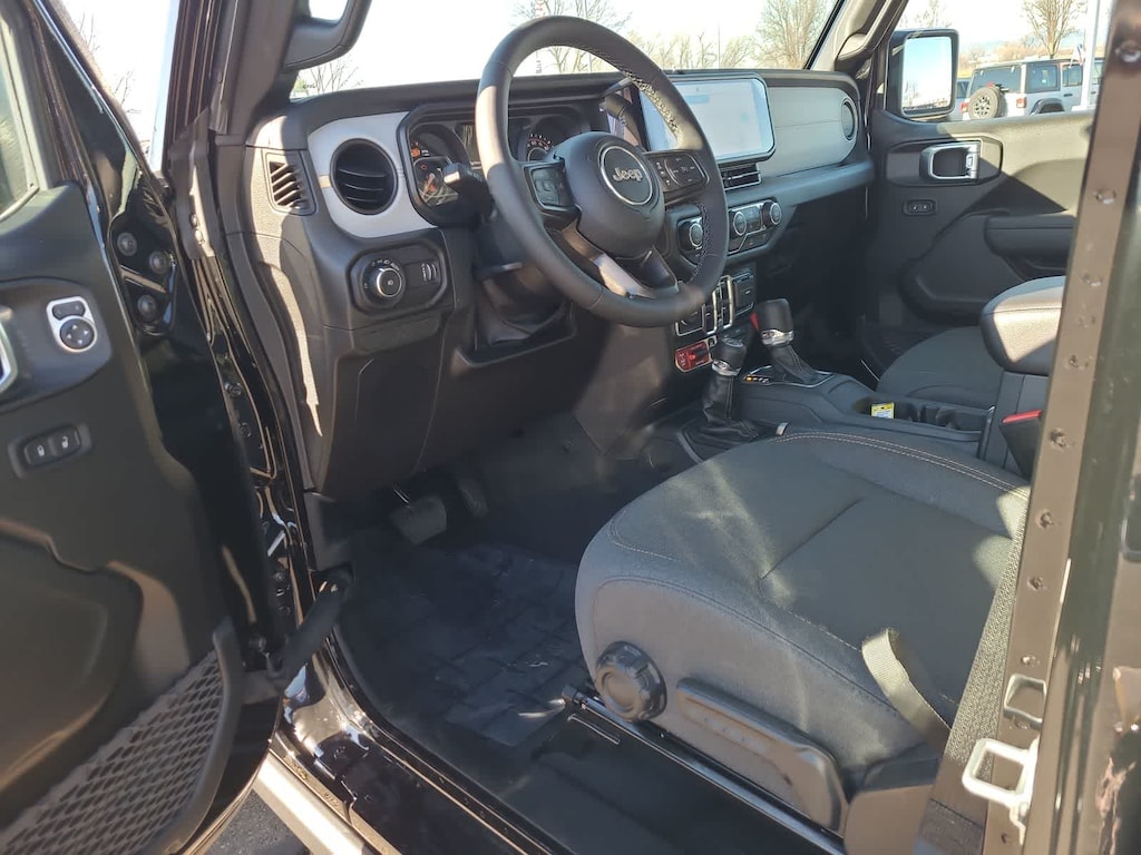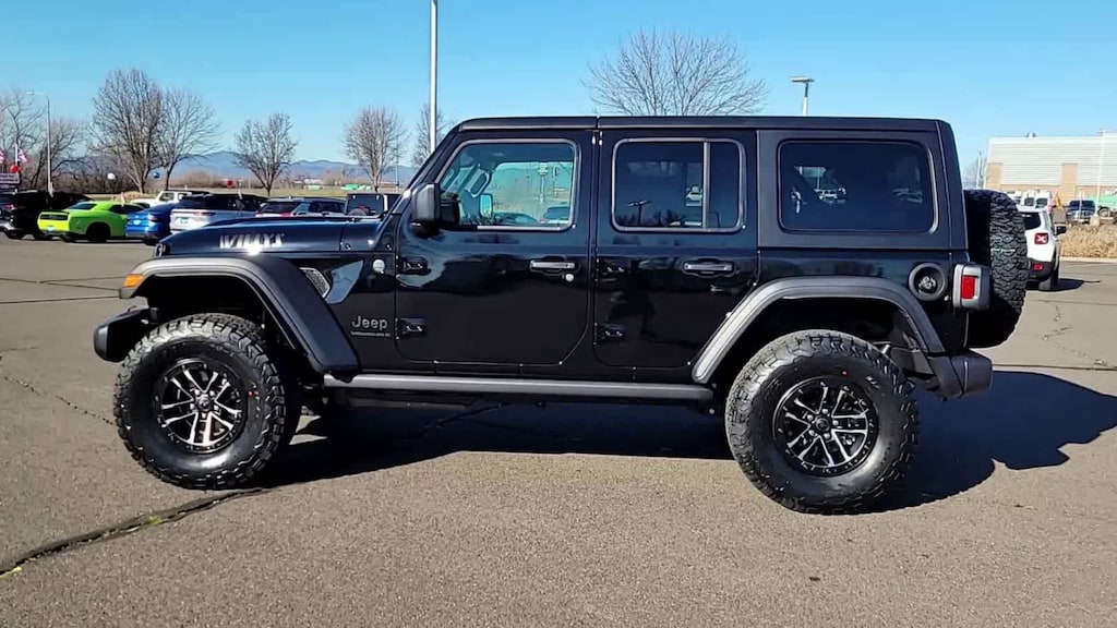 QUICK ORDER PACKAGE 24W WILLYS 3.6L V6 24V VVT UPG I Engine w/ESS, 8-Speed Automatic 850RE Transmission, 7 & 4 Pin Wiring Harness, Conventional Differential Front Axle, 4-Wheel Drive Swing Gate Decal, Black Grille w/Gloss Black Rings, Injection Molded Black Rear Bumper, Dana M210 Wide HD Tube Front Axle, Daytime Running Lamps LED Accents, Front LED Fog Lamps, LED Premium Reflector Headlamps, E-Locker Rear Axle, Corning Gorilla Glass, Security Alarm, Class II Receiver Hitch, Mold In Color Bumper w/Gloss Black, Advanced Brake Assist, Automatic Headlamps, Off-Road Plus Mode, Willys Hood Decal, Full Speed Forward Collision Warning Plus, Rock Protection Sill Rails, Power Heated Mirrors, Enhanced Adaptive Cruise Control, Auxiliary Switches, Dana M220 Wide Rear Axle, Molded in Color Rubicon, 8-SPEED AUTOMATIC 850RE TRANSMISSION Adaptive Cruise Control w/Stop, Anti-Lock 4-Wheel Disc Brakes, Integrated Radar Camera Module (IRCM), Dana M200 Rear Axle, Selec-Speed Control, XTREME 35 TIRE PACKAGE LT315/70R17C 113/110S Tires, Wheel Flare Extensions, MOPAR Tire Relocation Kit, Anti-Lock 4-Wheel Disc Perf Brakes, 17 x 8 Machined Wheels w/Black Pockets, 4.56 Rear Axle Ratio, Injection Molded Black Rear Bumper, 35 Tire Suspension, MOPAR Hinge-Gate Reinforcement, Delete 4-Wheel Drive Swing Gate Decal, MOPAR Jack Spacer, Molded in Color Rubicon Highline Flare, 6,250 lbs GVWR, BLACK 3-PIECE HARD TOP Freedom Panel Storage Bag, Rear Window Defroster, Rear Window Wiper/Washer, CONVENIENCE GROUP Emergency/Assistance Call, 2-Door Passive Entry, Front Door Locks, Cluster 7.0 TFT Color Display, Universal Garage Door Opener, Heated Front Seats, Air Conditioning w/Auto Temp Control, Heated Steering Wheel, Air Filtering, ALPINE PREMIUM AUDIO SYSTEM, 3.6L V6 24V VVT UPG I ENGINE W/ESS Engine Oil Cooler (STD). Jeep Willys with Black Clearcoat exterior and Black interior features a V6 Cylinder Engine with 285 HP at 6400 RPM*.