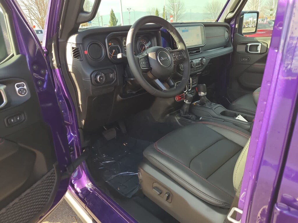 QUICK ORDER PACKAGE 24Y RUBICON X 3.6L V6 24V VVT UPG I Engine w/ESS, 8-Speed Automatic 850RE Transmission, Blind Spot & Cross Path Detection, Rear View Auto Dim Mirror, Heated Front Seats, Integrated Voice Command w/Bluetooth®, Connected Travel & Traffic Services, Heated Steering Wheel, Acoustic Front Seat Area Carpet, Steel Front Bumper, Integrated Off-Road Camera, HD Radio, Freedom Panel Storage Bag, Rear Window Defroster, Rear Window Wiper/Washer, Auto High Beam Headlamp Control, Universal Garage Door Opener, Acoustic Laminated Front Door Glass, ParkSense Rear Park Assist System, Trailer Tow Prep Package, Steel Rear Bumper, 8-SPEED AUTOMATIC 850RE TRANSMISSION LT315/70R17C 113/110S Tires, Remote Start System, Wheel Flare Extensions, 4:1 Rock-Trac HD Full Time 4WD System, MOPAR Tire Relocation Kit, Anti-Lock 4-Wheel Disc Perf Brakes, 17 x 8 Machined Wheels w/Black Pockets, 4.56 Rear Axle Ratio, 35 Tire Suspension, MOPAR Hinge-Gate Reinforcement, MOPAR Jack Spacer, Adaptive Cruise Control w/Stop, Selec-Speed Control, 3.6L V6 24V VVT UPG I ENGINE W/ESS Engine Oil Cooler (STD). Jeep Rubicon X with Reign exterior and Black interior features a V6 Cylinder Engine with 285 HP at 6400 RPM*.