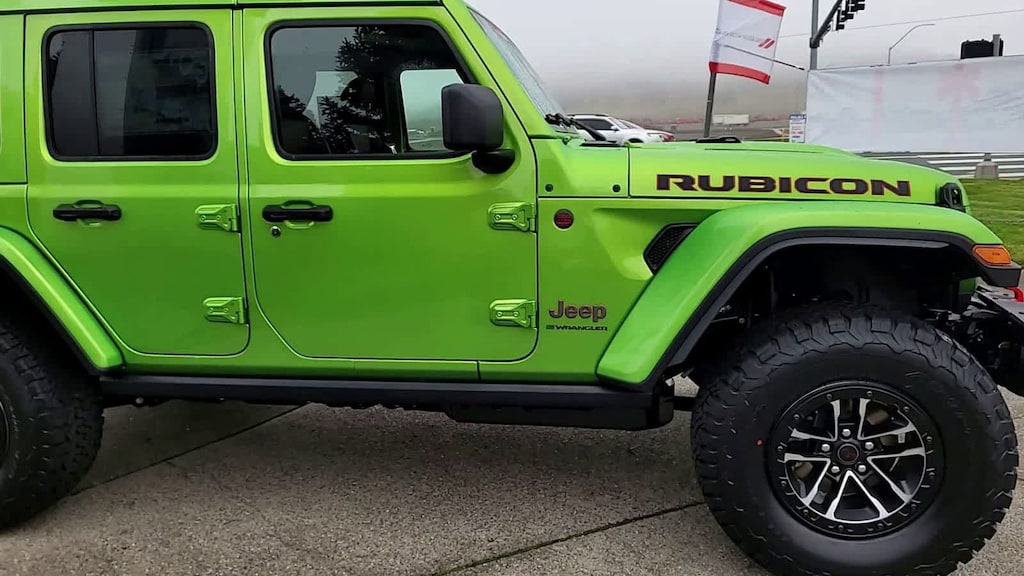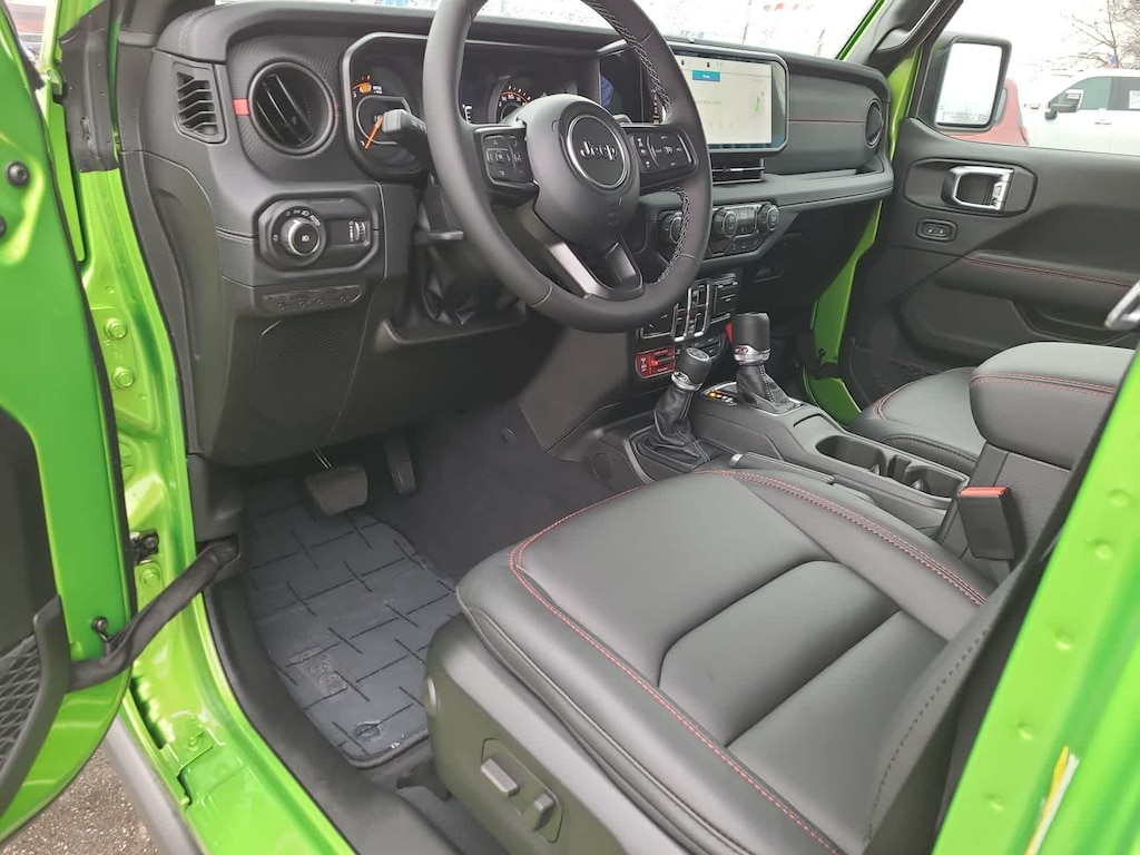 QUICK ORDER PACKAGE 24Y RUBICON X 3.6L V6 24V VVT UPG I Engine w/ESS, 8-Speed Automatic 850RE Transmission, Blind Spot & Cross Path Detection, Rear View Auto Dim Mirror, Heated Front Seats, Integrated Voice Command w/Bluetooth®, Connected Travel & Traffic Services, Heated Steering Wheel, Acoustic Front Seat Area Carpet, Steel Front Bumper, Integrated Off-Road Camera, HD Radio, Freedom Panel Storage Bag, Rear Window Defroster, Rear Window Wiper/Washer, Auto High Beam Headlamp Control, Universal Garage Door Opener, Acoustic Laminated Front Door Glass, ParkSense Rear Park Assist System, Trailer Tow Prep Package, Steel Rear Bumper, 8-SPEED AUTOMATIC 850RE TRANSMISSION LT315/70R17C 113/110S Tires, Remote Start System, Wheel Flare Extensions, 4:1 Rock-Trac HD Full Time 4WD System, MOPAR Tire Relocation Kit, Anti-Lock 4-Wheel Disc Perf Brakes, 17 x 8 Machined Wheels w/Black Pockets, 4.56 Rear Axle Ratio, 35 Tire Suspension, MOPAR Hinge-Gate Reinforcement, MOPAR Jack Spacer, Adaptive Cruise Control w/Stop, Selec-Speed Control, 3.6L V6 24V VVT UPG I ENGINE W/ESS Engine Oil Cooler (STD). Jeep Rubicon X with Mojito Clearcoat exterior and Black interior features a V6 Cylinder Engine with 285 HP at 6400 RPM*.