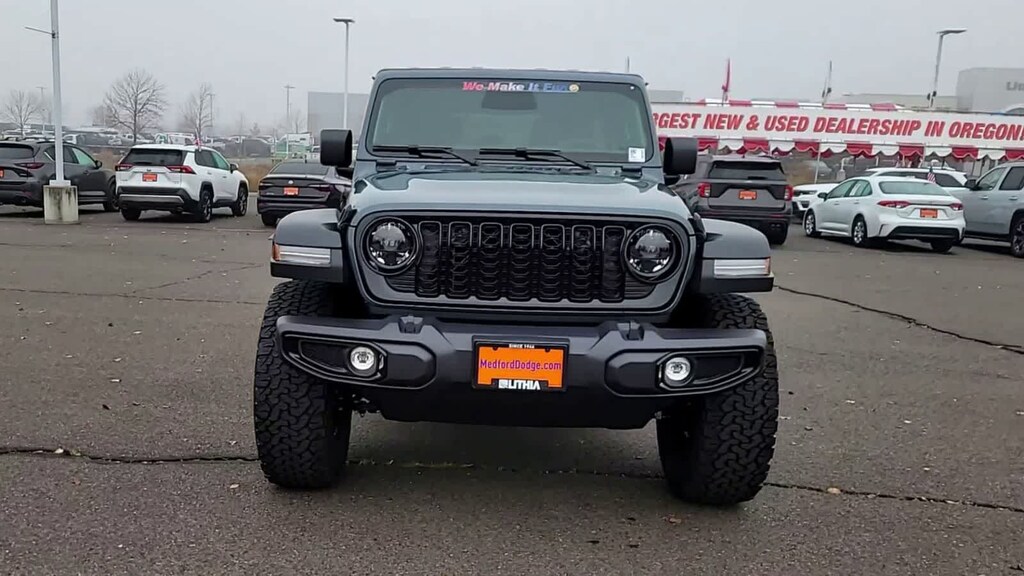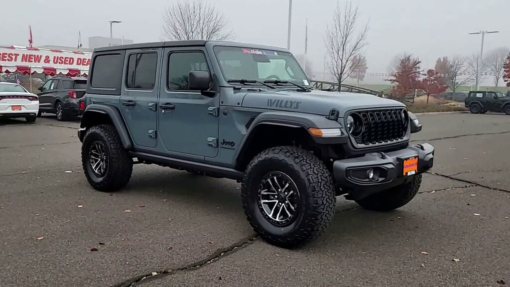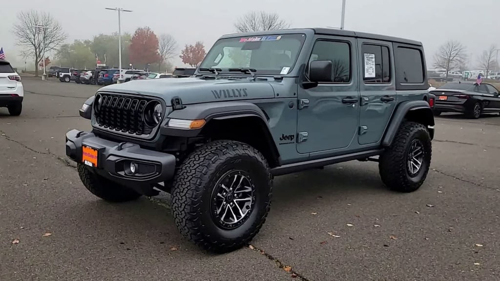 QUICK ORDER PACKAGE 24W WILLYS 3.6L V6 24V VVT UPG I Engine w/ESS, 8-Speed Automatic 850RE Transmission, 7 & 4 Pin Wiring Harness, Conventional Differential Front Axle, 4-Wheel Drive Swing Gate Decal, Black Grille, Injection Molded Black Rear Bumper, Dana M210 Wide HD Tube Front Axle, Daytime Running Lamps LED Accents, Front LED Fog Lamps, LED Premium Reflector Headlamps, E-Locker Rear Axle, Corning Gorilla Glass, Security Alarm, Class II Receiver Hitch, Mold In Color Bumper w/Gloss Black, Advanced Brake Assist, Automatic Headlamps, Off-Road Plus Mode, Willys Hood Decal, Full Speed Forward Collision Warning Plus, Rock Protection Sill Rails, Power Heated Mirrors, Enhanced Adaptive Cruise Control, Auxiliary Switches, Dana M220 Wide Rear Axle, Molded in Color Rubicon Highline Flare, Premium, XTREME 35 TIRE PACKAGE LT315/70R17C 113/110S Tires, Wheel Flare Extensions, MOPAR Tire Relocation Kit, Anti-Lock 4-Wheel Disc Perf Brakes, 17 x 8 Machined Wheels w/Black Pockets, 4.56 Rear Axle Ratio, Injection Molded Black Rear Bumper, Delete 4-Wheel Drive Swing Gate Decal, 35 Tire Suspension, MOPAR Hinge-Gate Reinforcement, MOPAR Jack Spacer, Molded in Color Rubicon Highline Flare, 6,250 lbs GVWR, 8-SPEED AUTOMATIC 850RE TRANSMISSION Adaptive Cruise Control w/Stop, Anti-Lock 4-Wheel Disc Brakes, Integrated Radar Camera Module (IRCM), Dana M200 Rear Axle, Selec-Speed Control, CONVENIENCE GROUP Emergency/Assistance Call, 2-Door Passive Entry, Front Door Locks, Cluster 7.0 TFT Color Display, Universal Garage Door Opener, Heated Front Seats, Air Conditioning w/Auto Temp Control, Heated Steering Wheel, Air Filtering, BLACK 3-PIECE HARD TOP Freedom Panel Storage Bag, Rear Window Defroster, Rear Window Wiper/Washer, 3.6L V6 24V VVT UPG I ENGINE W/ESS Engine Oil Cooler (STD). Jeep Willys with Anvil Clearcoat exterior and Black interior features a V6 Cylinder Engine with 285 HP at 6400 RPM*.