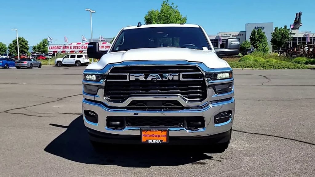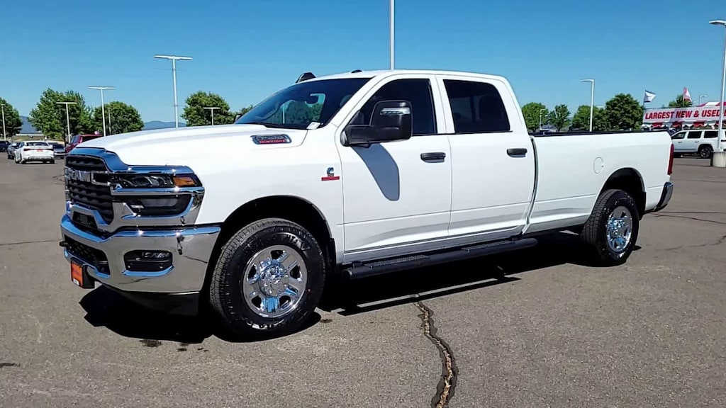 ENGINE: 6.7L I6 CUMMINS HO TURBO DIESEL Selective Catalytic Reduction (Urea), Dual 730 Amp Maintenance Free Batteries, Cummins Turbo Diesel Badge, Heavy Duty Engine Cooling, Current Generation Engine Controller, Diesel Exhaust Brake, Supplemental Heater, 3.42 Axle Ratio, Front Bumper Sight Shields, Capless Fuel Fill w/o Discriminator, GVWR: 12,000 lb, TRADESMAN LEVEL 2 EQUIPMENT GROUP Convenience Group, For Details Visit DriveUconnect.com, For More Info, Call 800-643-2112, Emergency Vehicle Alert System (EVAS), 12 Touchscreen Display, Mirror Running Lights, Exterior 115V AC Outlet, Alexa Built-In, Power-Adjustable Convex Aux Mirrors, Disassociated Touchscreen Display, Matte Black Mesh w/Chrome Grille, 115V Auxiliary Front Power Outlet, Center Hub, Rear View Auto Dim Mirror, Rear Power Sliding Window, Tinted Acoustic Windshield Glass, GPS Navigation, Bright Rear Bumper, Exterior Mirrors w/Heating Element, MOPAR Black Tubular Side Steps, Chrome Grille Surround, SiriusXM w/360L, Connected Travel & Traffic Services, Carpet Floor Covering, Off-Road Information Pages, Trailer Tow Pages, 400W Inverter, HD Radio, Power Heat Fold Telescopic, TOWING TECHNOLOGY GROUP CTR Stop Lamp w/Cargo View Camera, Forward & Reverse Utility Lights, Surround View Camera System, Blind Spot & Cross Path Detection, LED Tail Lamps, Red Tail Lamp Bezels, Power Heated Fold Telescopic Mirrors, Exterior Mirrors w/Supplemental Signals, Exterior Mirrors Courtesy Lamps, Trailer Tire Pressure Monitoring System, Auto Power-Folding Mirrors, Exterior Mirrors w/Heating Element, Mirror Running Lights, Power Adjust Mirrors, Power Telescoping Mirrors, Trailer Reverse Guidance, Power-Adjustable Convex Aux Mirrors, BED CONVENIENCE GROUP MOPAR Spray In Bedliner, LED Bed Lighting, TRANSMISSION: 8-SPEED TORQUEFLITE HD AUTOMATIC, BLACK, CLOTH 40/20/40 BENCH SEAT. Ram Tradesman with Bright White Clearcoat exterior and Black interior features a Straight 6 Cylinder Engine with 430 HP at 2800 RPM*.