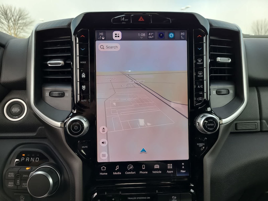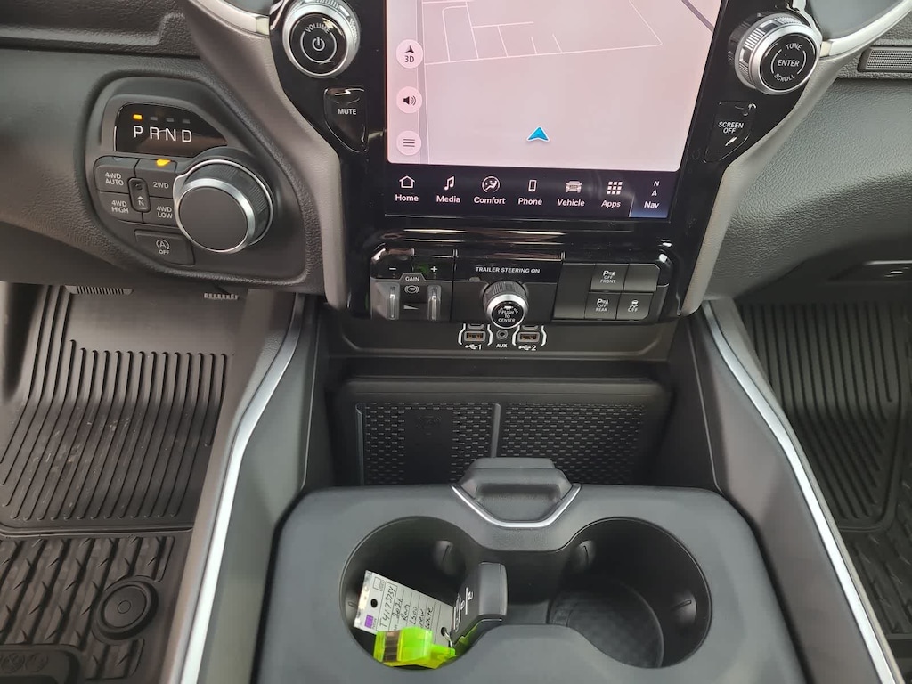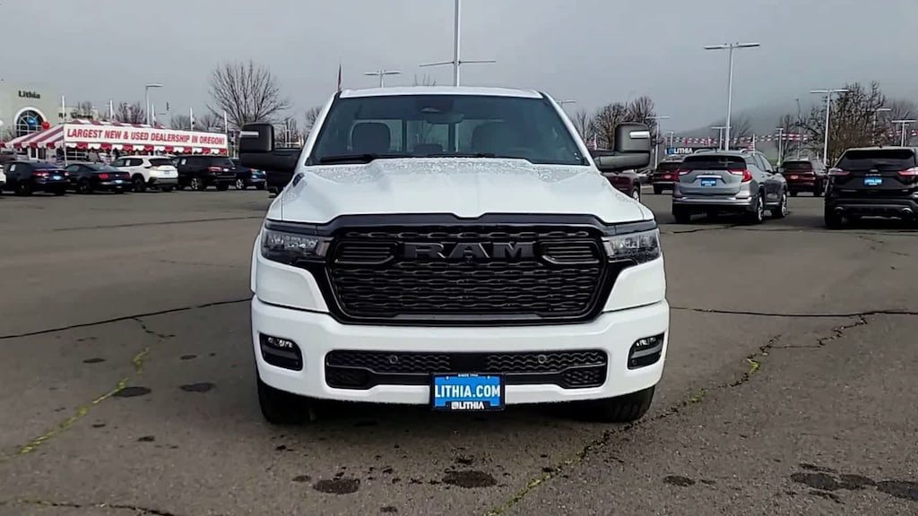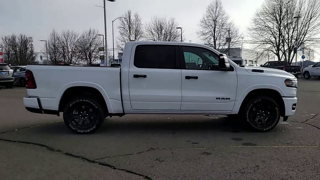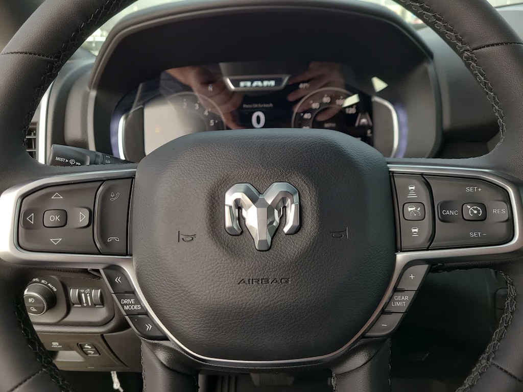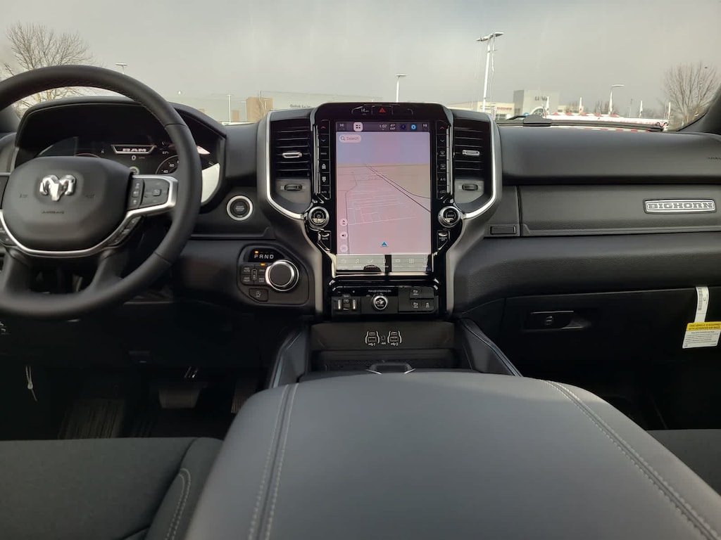 BIG HORN LEVEL 2 EQUIPMENT GROUP SiriusXM Radio Service, Power Adjustable Pedals, Leather Wrapped Steering Wheel, 12 Touchscreen Display, Glove Box Lamp, Auto Power-Folding Mirrors, 115V Auxiliary Rear Power Outlet, Media Hub w/2 Charge Only USBs, Heated Front Seats, Security Alarm, Black Premium Power Mirrors, Premium Overhead Console, 9 Amplified Speakers w/Subwoofer, Disassociated Touchscreen Display, Body Color Fender Flares, Remote Tailgate Release, 115V Auxiliary Power Outlet, LED Dome Lamp w/On/Off Switch, Universal Garage Door Opener, 2nd Row In Floor Storage Bins, Sun Visors w/Illuminated Vanity Mirrors, LED Footwell Lighting, Rear Window Defroster, Rear View Auto Dim Mirror, Rear Power Sliding Window, GPS Navigation, Overhead LED Lamps, Wheels: 20 x 9 Aluminum Chrome Clad, ENGINE: 3.0L I6 HURRICANE SO TWIN TURBO ESS Aux Battery, 700 Amp Maintenance Free Battery, Active Noise Control System, GVWR: 7,100 lbs, 3.55 Rear Axle Ratio, Dual Rear Exhaust w/Bright Tips, Start-Stop Dual Battery System, 230 Amp Alternator, NIGHT EDITION Tires: 275/55R20 OWL All Season, Bridgestone Brand Tires, Accent Color Premium Power Mirrors, Exterior Mirrors w/Supplemental Signals, Black Headlamp Bezels, Exterior Mirrors Courtesy Lamps, Grille Black Surround Black Mesh, Auto Power-Folding Mirrors, Wheels: 20 x 9.0 Aluminum Painted Clad, Auto Dim Exterior Driver Mirror, Black Exterior Truck Badging, Anti-Spin Differential Rear Axle, Accent Color Door Handles, Accent Color Tailgate Handle, Black Interior Accents, Dual Exhaust w/Black Tips, Body Color Front Bumper, Body Color Rear Bumper w/Step Pads, Black Tail Lamp Bezels, RAM Grille Badge - Black, Black Painted Exterior Mirrors Caps, MOPAR FRONT & REAR RUBBER FLOOR MATS, TRANSMISSION: 8-SPEED AUTOMATIC (8HP75). Ram Big Horn with Bright White Clearcoat exterior and Black interior features a Straight 6 Cylinder Engine with 305 HP at 6400 RPM*.