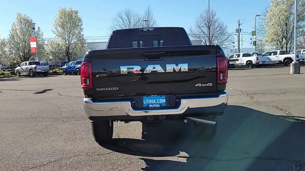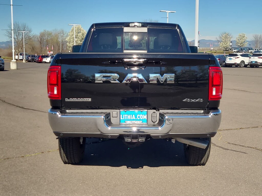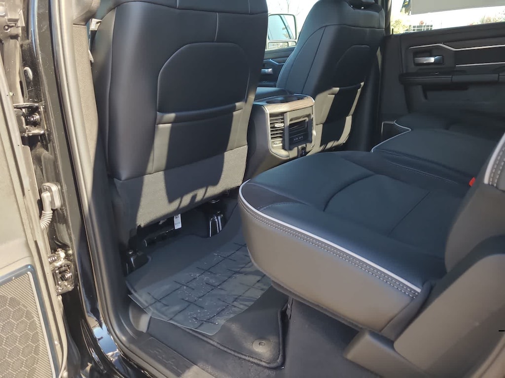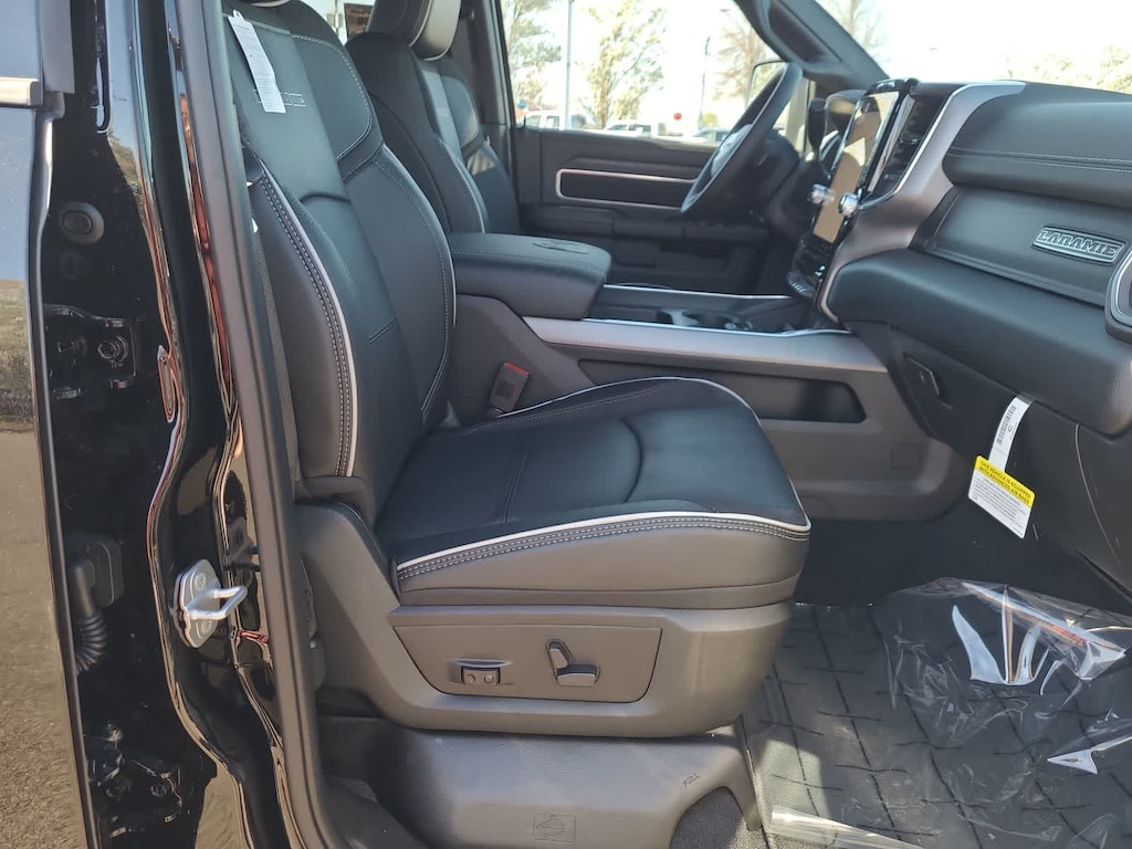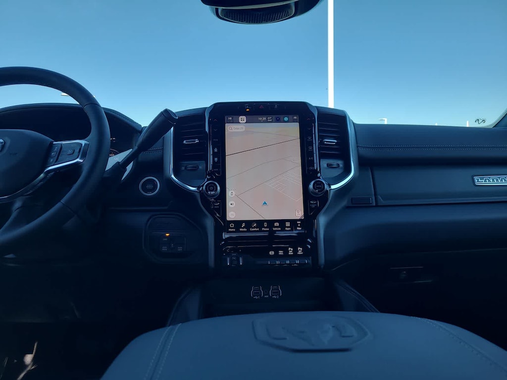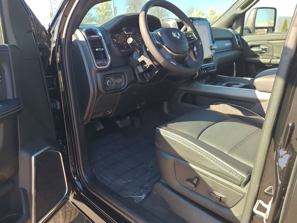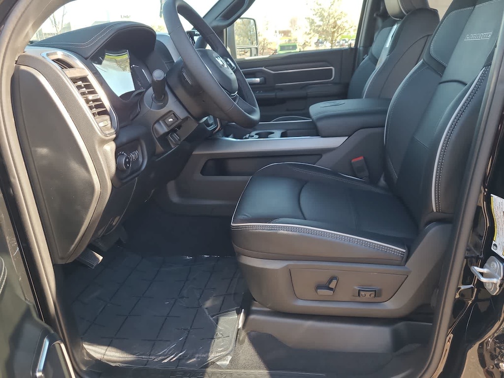 LARAMIE LEVEL 1 PLUS EQUIPMENT GROUP CTR Stop Lamp w/Cargo View Camera, Rain Sensitive Windshield Wipers, Power Adjustable Pedals w/Memory, LED Bed Lighting, Traffic Sign Recognition, Adaptive Steering System, Auto Dim Exterior Mirror, Anti-Spin Differential Rear Axle, Drowsy Driver Detection, MOPAR Deployable Bed Step, Foam Bottle Insert (Door Trim Panel), Active Lane Management System, Power Heated Fold Telescopic Mirrors w/Memory, MOPAR Spray In Bedliner, Remote Tailgate Release, Auto High Beam Headlamp Control, Exterior Mirrors w/Memory, 2nd Row In Floor Storage Bins, Auto Dim Exterior Passenger Mirror, Auto Adjust In Reverse Exterior Mirrors, TRANSMISSION: 8-SPEED TORQUEFLITE HD AUTOMATIC, BLACK, LEATHER TRIMMED BUCKET SEATS Bucket Seats, Dual Wireless Charging Pad, Ventilated Front Seats, Radio/Driver Seat/Mirrors/Pedals Memory, Full Length Upgraded Floor Console. Ram Laramie with Diamond Black Crystal Pearlcoat exterior and Black interior features a Straight 6 Cylinder Engine with 405 HP at 5600 RPM*.