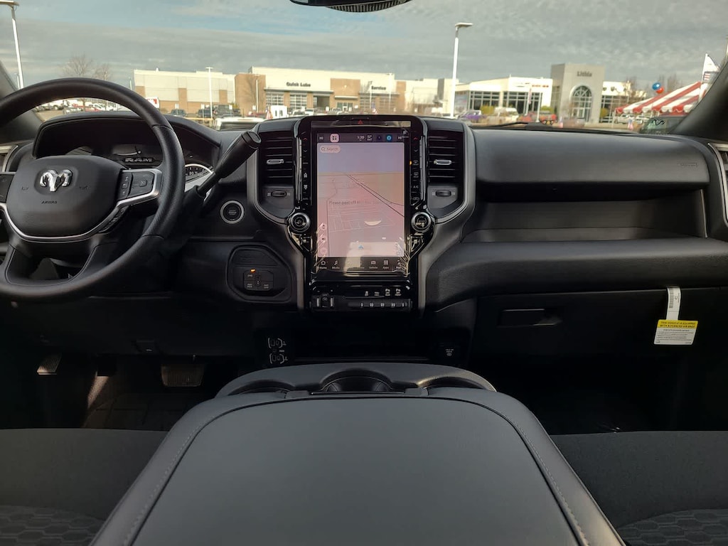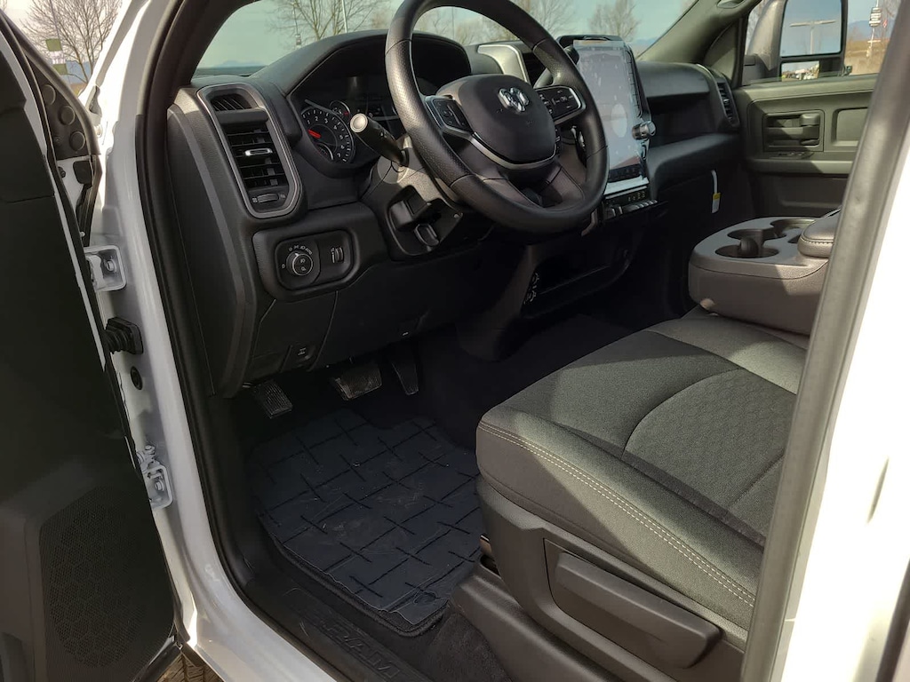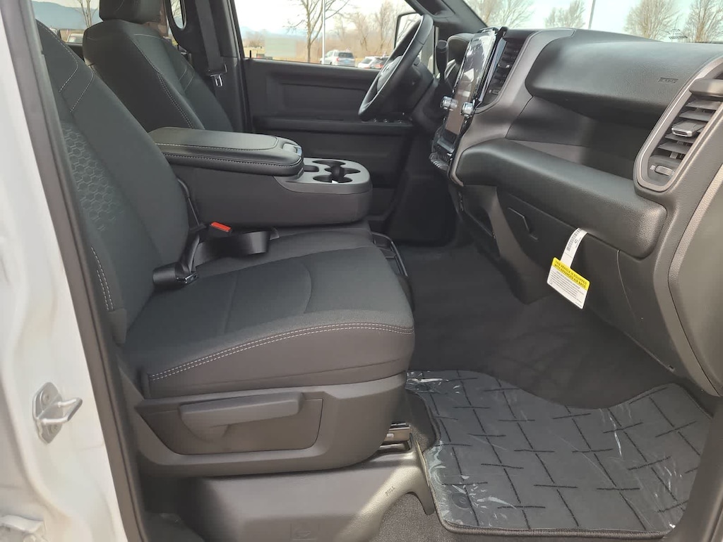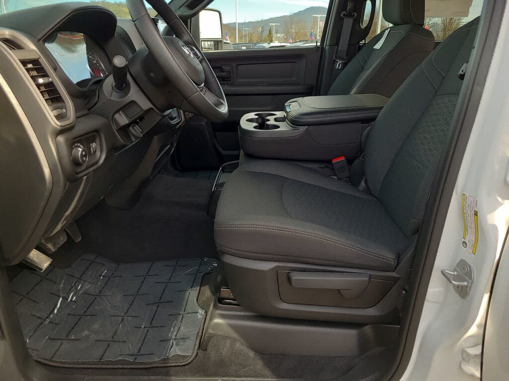 TRADESMAN LEVEL 2 EQUIPMENT GROUP Convenience Group, Emergency Vehicle Alert System (EVAS), 12 Touchscreen Display, Anti-Spin Differential Rear Axle, Mirror Running Lights, Exterior 115V AC Outlet, Alexa Built-In, Power-Adjustable Convex Aux Mirrors, Disassociated Touchscreen Display, Matte Black Mesh Grille w/Chrome, 115V Auxiliary Front Power Outlet, Center Hub, Tires: LT275/70R18E BSW AS, Rear View Auto Dim Mirror, Rear Power Sliding Window, Tinted Acoustic Windshield Glass, GPS Navigation, Bright Rear Bumper, Exterior Mirrors w/Heating Element, Chrome Grille Surround, MOPAR Black Tubular Side Steps, SiriusXM w/360L, Connected Travel & Traffic Services, Wheels: 18 x 8.0 Steel Chrome Clad, Carpet Floor Covering, Off-Road Info Pages, Trailer Tow Pages, 400W Inverter, HD Radio, Power, BED UTILITY GROUP MOPAR Spray In Bedliner, LED Bed Lighting, MOPAR Deployable Bed Step, TRANSMISSION: 8-SPEED AUTO (8HP75-LCV) (STD), ENGINE: 6.4L V8 HEMI HD (STD), BLACK, CLOTH 40/20/40 BENCH SEAT. Ram Tradesman with Bright White Clearcoat exterior and Black interior features a 8 Cylinder Engine with 405 HP at 5600 RPM*.