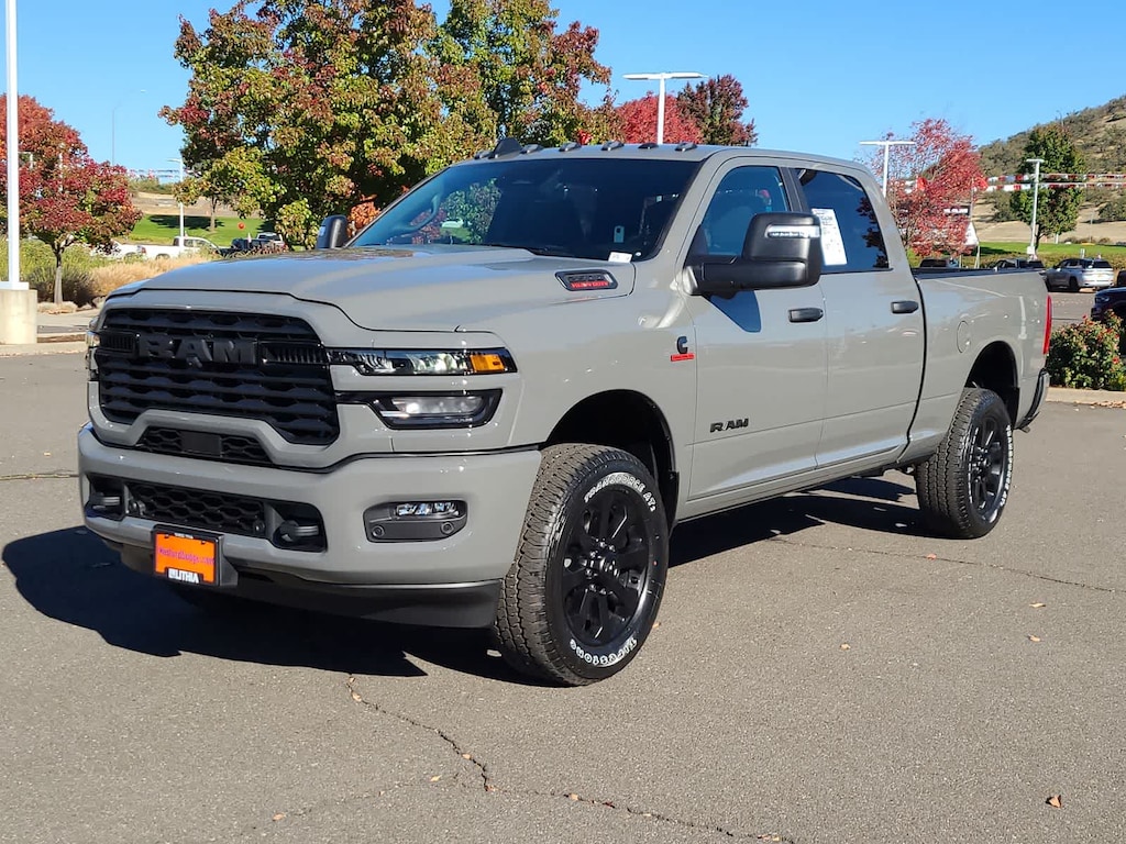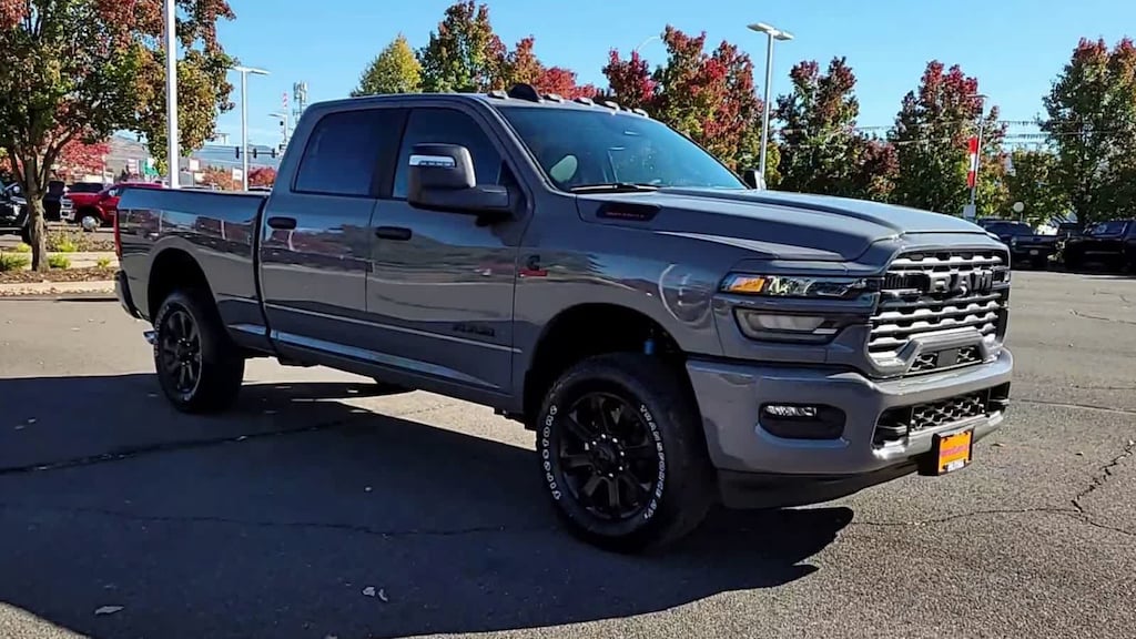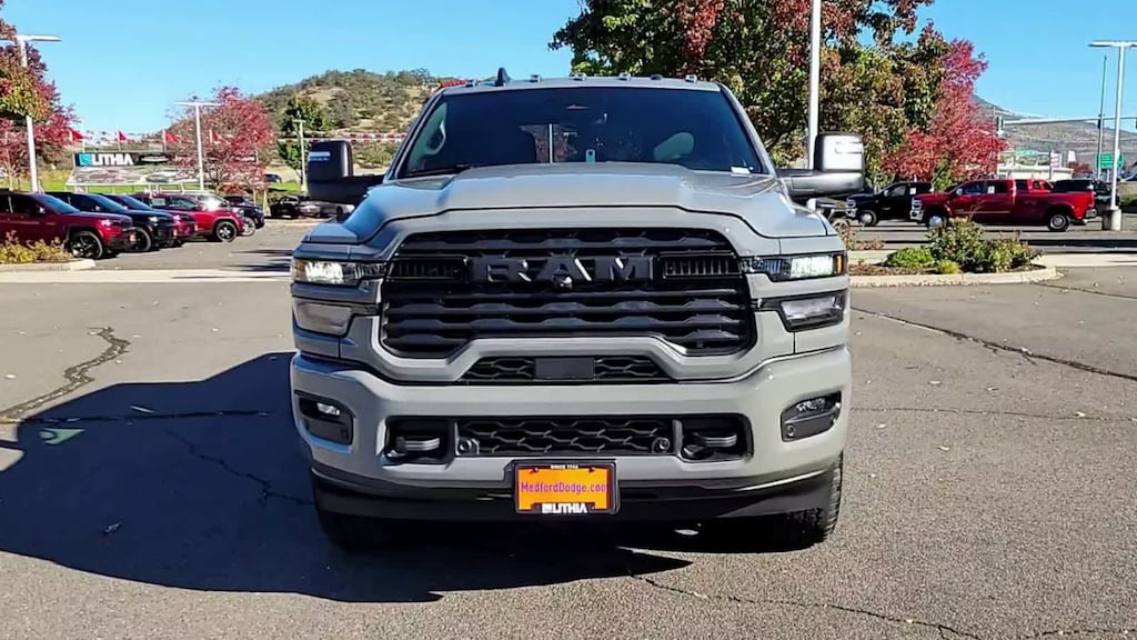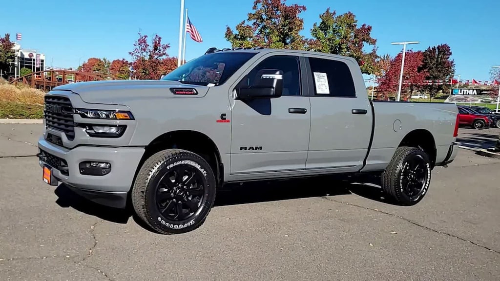 ENGINE: 6.7L I6 CUMMINS HO TURBO DIESEL Selective Catalytic Reduction (Urea), Dual 730 Amp Maintenance Free Batteries, Cummins Turbo Diesel Badge, Heavy Duty Engine Cooling, Diesel Exhaust Brake, Supplemental Heater, 3.42 Axle Ratio, Front Bumper Sight Shields, Capless Fuel Fill w/o Discriminator, GVWR: 11,040 lbs, BIG HORN LEVEL 1 PLUS EQUIPMENT GROUP Emergency Vehicle Alert System (EVAS), 12 Touchscreen Display, Glove Box Lamp, Auto Power-Folding Mirrors, Footwell Courtesy Lamp, Anti-Spin Differential Rear Axle, MOPAR Deployable Bed Step, Alexa Built-In, Forward & Reverse Utility Lights, Locking Lower Glove Box, Remote Start System, 9 Alpine Speakers w/Subwoofer, Disassociated Touchscreen Display, Dual Glove Boxes, 2nd Row In Floor Storage Bins, Rear View Auto Dim Mirror, Rear Dome w/On/Off Switch Lamp, LED Bed Lighting, GPS Navigation, SiriusXM w/360L, Connected Travel & Traffic Services, Foam Bottle Insert (Door Trim Panel), Big Horn IP Badge, Off-Road Info Pages, Trailer Tow Pages, HD Radio, Radio: Uconnect 5 Nav w/12.0 Display, Power Heated Folding Telescopic Mirrors, Steering Wheel Mounted, TOWING TECHNOLOGY GROUP CTR Stop Lamp w/Cargo View Camera, Surround View Camera System, Trailer Tire Pressure Monitoring System, Blind Spot & Cross Path Detection, LED Tail Lamps, Red Tail Lamp Bezels, Trailer Reverse Guidance, NIGHT EDITION Gloss Black Nostrils/Mic Black Grille, Tires: LT285/60R20E OWL On/Off Road, Black Exterior Truck Badging, Wheels: 20 x 8.0 Black Painted Aluminum, Body Color Grille-Surround, Black Interior Accents, Black Wheel Center Hub, Painted Front Bumper, Painted Rear Bumper, HEATED SEATS & WHEEL GROUP Heated Steering Wheel, Heated Front Seats, BLACK, PREMIUM CLOTH BUCKET SEATS Bucket Seats, Power Adjust 8-Way Driver Seat, Folding Flat Load Floor Storage, Rear 60/40 Folding Seat, Front Seat Back Map Pockets, Power 2-Way Driver Lumbar Adjust, Full Length Upgraded Floor Console, TRANSMISSION: 8-SPEED TORQUEFLITE HD AUTOMATIC. Ram Big Horn with Ceramic Gray Clearcoat exterior and Black interior features a Straight 6 Cylinder Engine with 430 HP at 2800 RPM*.