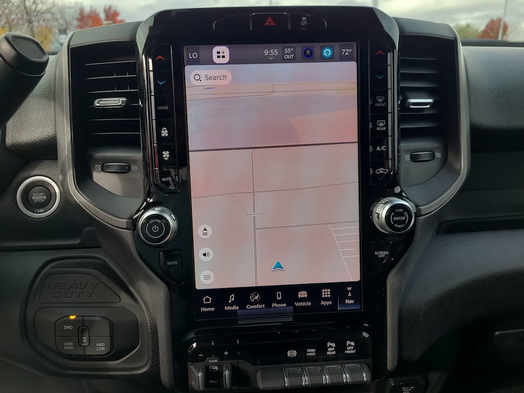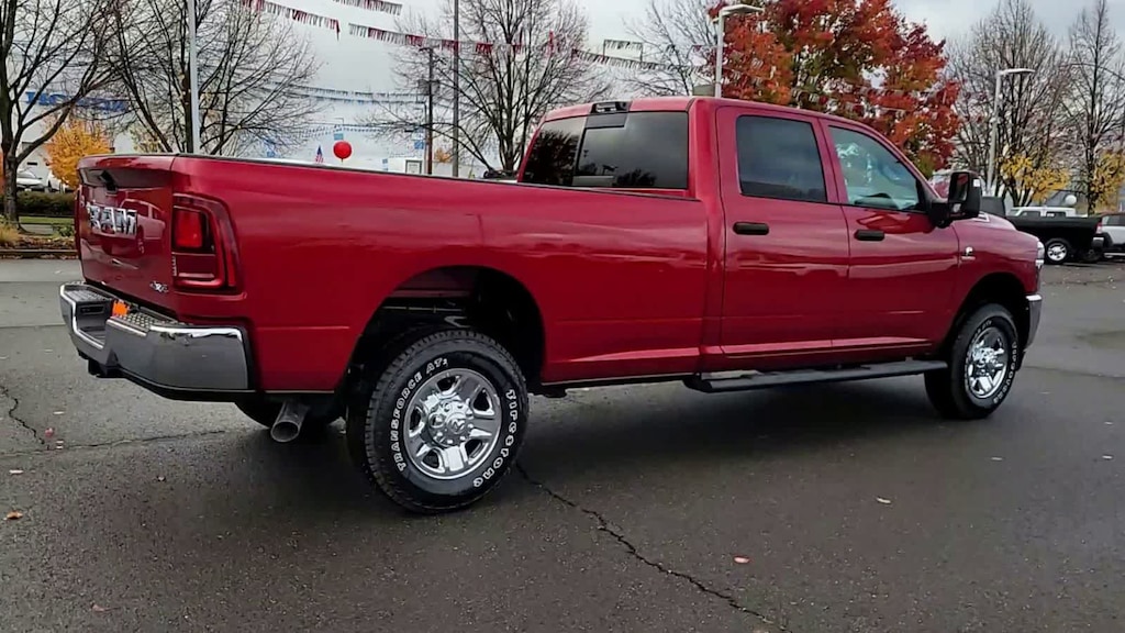 ENGINE: 6.7L I6 CUMMINS HO TURBO DIESEL Selective Catalytic Reduction (Urea), Dual 730 Amp Maintenance Free Batteries, Cummins Turbo Diesel Badge, Heavy Duty Engine Cooling, Diesel Exhaust Brake, Supplemental Heater, 3.42 Axle Ratio, Front Bumper Sight Shields, Capless Fuel Fill w/o Discriminator, GVWR: 11,040 lbs, TRADESMAN LEVEL 2 EQUIPMENT GROUP Convenience Group, Emergency Vehicle Alert System (EVAS), 12 Touchscreen Display, Anti-Spin Differential Rear Axle, Mirror Running Lights, Exterior 115V AC Outlet, Alexa Built-In, Power-Adjustable Convex Aux Mirrors, Disassociated Touchscreen Display, Matte Black Mesh Grille w/Chrome, 115V Auxiliary Front Power Outlet, Center Hub, Tires: LT275/70R18E BSW AS, Rear View Auto Dim Mirror, Rear Power Sliding Window, Tinted Acoustic Windshield Glass, GPS Navigation, Bright Rear Bumper, Exterior Mirrors w/Heating Element, Chrome Grille Surround, MOPAR Black Tubular Side Steps, SiriusXM w/360L, Connected Travel & Traffic Services, Wheels: 18 x 8.0 Steel Chrome Clad, Carpet Floor Covering, Off-Road Info Pages, Trailer Tow Pages, 400W Inverter, HD Radio, Power, TOWING TECHNOLOGY GROUP CTR Stop Lamp w/Cargo View Camera, Forward & Reverse Utility Lights, Surround View Camera System, Blind Spot & Cross Path Detection, LED Tail Lamps, Red Tail Lamp Bezels, Power Heated Folding Telescopic Mirrors, Exterior Mirrors w/Supplemental Signals, Exterior Mirrors Courtesy Lamps, Trailer Tire Pressure Monitoring System, Auto Power-Folding Mirrors, Exterior Mirrors w/Heating Element, Mirror Running Lights, Power Adjust Mirrors, Power Telescoping Mirrors, Trailer Reverse Guidance, Power-Adjustable Convex Aux Mirrors, BED UTILITY GROUP MOPAR Spray In Bedliner, LED Bed Lighting, MOPAR Deployable Bed Step, TRANSMISSION: 8-SPEED TORQUEFLITE HD AUTOMATIC, BLACK, CLOTH 40/20/40 BENCH SEAT. Ram Tradesman with Molten Red Pearlcoat exterior and Black interior features a Straight 6 Cylinder Engine with 430 HP at 2800 RPM*.