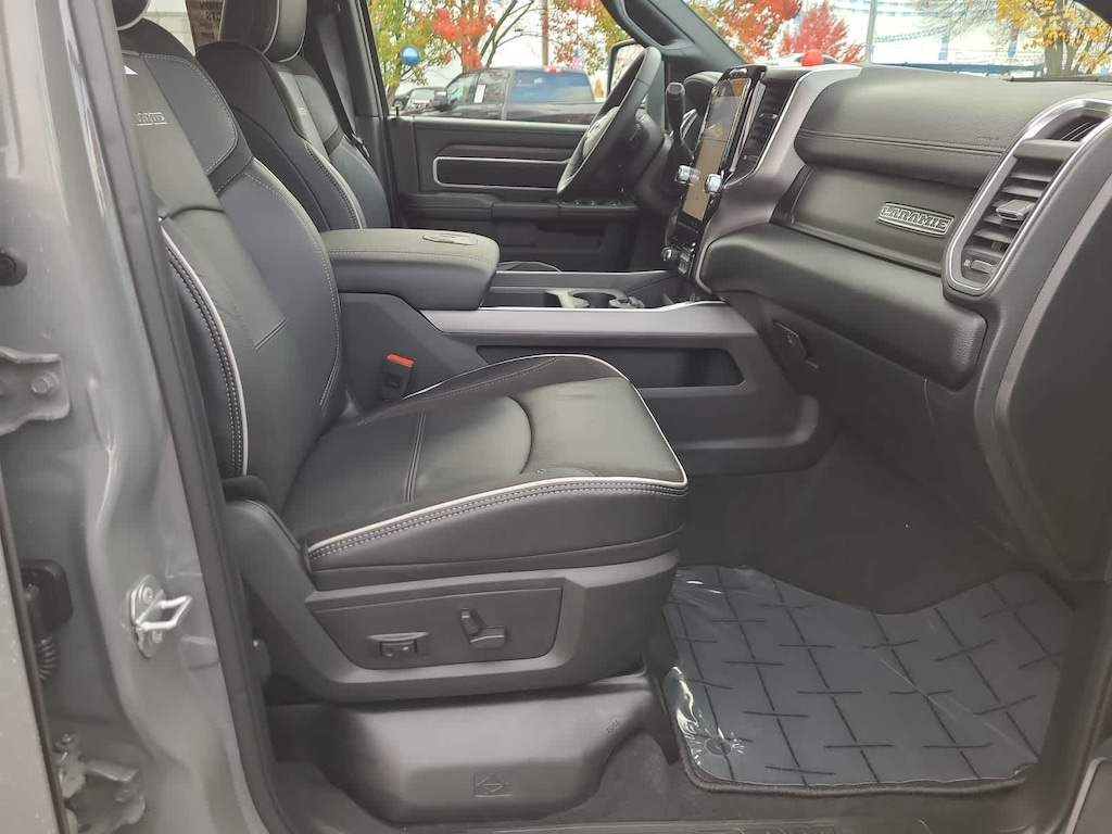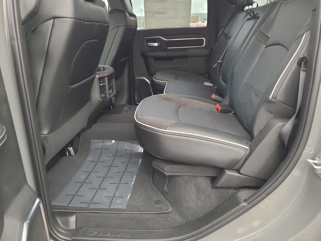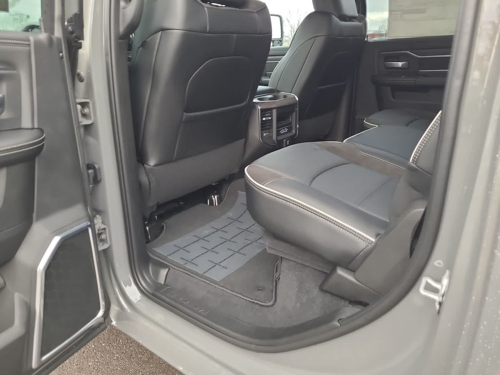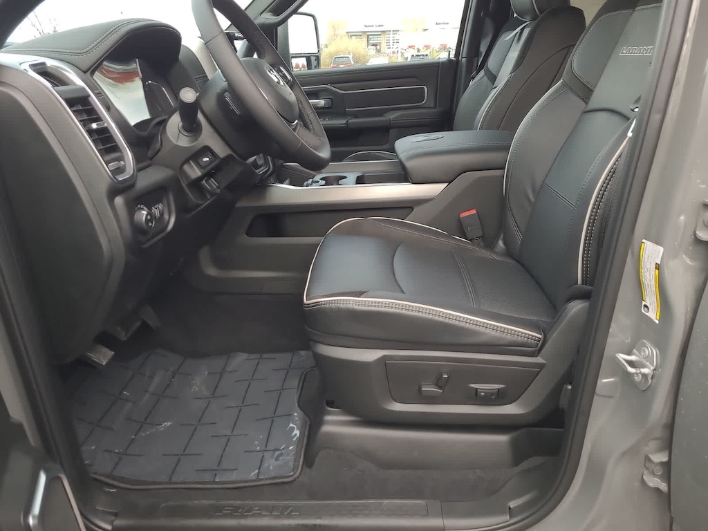 ENGINE: 6.7L I6 CUMMINS HO TURBO DIESEL Selective Catalytic Reduction (Urea), Dual 730 Amp Maintenance Free Batteries, Cummins Turbo Diesel Badge, Heavy Duty Engine Cooling, Diesel Exhaust Brake, Supplemental Heater, 3.42 Axle Ratio, Front Bumper Sight Shields, Capless Fuel Fill w/o Discriminator, GVWR: 11,040 lbs, NIGHT EDITION Tires: LT285/60R20E OWL On/Off Road, Black Exterior Truck Badging, Wheels: 20 x 8.0 Black Painted Aluminum, Gloss Black Grille Billets/Accents, Body Color Grille-Surround, Sport Performance Hood, Black Exterior Mirrors, LARAMIE LEVEL 1 PLUS EQUIPMENT GROUP CTR Stop Lamp w/Cargo View Camera, Rain Sensitive Windshield Wipers, Power Adjustable Pedals w/Memory, LED Bed Lighting, Traffic Sign Recognition, Adaptive Steering System, Auto Dim Exterior Mirror, Anti-Spin Differential Rear Axle, Heated Second Row Seats, Drowsy Driver Detection, MOPAR Deployable Bed Step, Foam Bottle Insert (Door Trim Panel), Active Lane Management System, Power Heated Fold Telescopic Mirrors w/Memory, MOPAR Spray In Bedliner, Remote Tailgate Release, Auto High Beam Headlamp Control, Exterior Mirrors w/Memory, 2nd Row In Floor Storage Bins, Auto Dim Exterior Passenger Mirror, Auto Adjust In Reverse Exterior Mirrors, TOWING TECHNOLOGY GROUP Surround View Camera System, Trailer Tire Pressure Monitoring System, Trailer Reverse Guidance, POWER SUNROOF, TRANSMISSION: 8-SPEED TORQUEFLITE HD AUTOMATIC, BLACK, LEATHER TRIMMED BUCKET SEATS Bucket Seats, Dual Wireless Charging Pad, Ventilated Front Seats, Radio/Driver Seat/Mirrors/Pedals Memory, Full Length Upgraded Floor Console, TOW TECHNOLOGY PLUS GROUP Trailer Reverse Steering Control, Digital 3.0 Rear View Auto Dimming Mirror, Auxiliary Switches Prep. Ram Laramie with Ceramic Gray Clearcoat exterior and Black interior features a Straight 6 Cylinder Engine with 430 HP at 2800 RPM*.