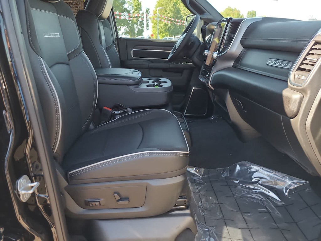 TOWING TECHNOLOGY GROUP Surround View Camera System, Trailer Tire Pressure Monitoring System, Trailer Reverse Guidance, LARAMIE LEVEL 1 EQUIPMENT GROUP Rain Sensitive Windshield Wipers, Power Adjustable Pedals w/Memory, Power Heated Fold Telescope Mirrors w/Memory, Remote Tailgate Release, Auto Dim Exterior Mirror, Anti-Spin Differential Rear Axle, Auto High Beam Headlamp Control, Exterior Mirrors w/Memory, Foam Bottle Insert (Door Trim Panel), Auto Dim Exterior Passenger Mirror, Auto Adjust In Reverse Exterior Mirrors, TRANSMISSION: 8-SPEED TORQUEFLITE HD AUTOMATIC (STD), ENGINE: 6.7L I6 CUMMINS HO TURBO DIESEL (STD). Ram Laramie with Diamond Black Crystal Pearlcoat exterior and Black interior features a Straight 6 Cylinder Engine with 430 HP at 2800 RPM*.