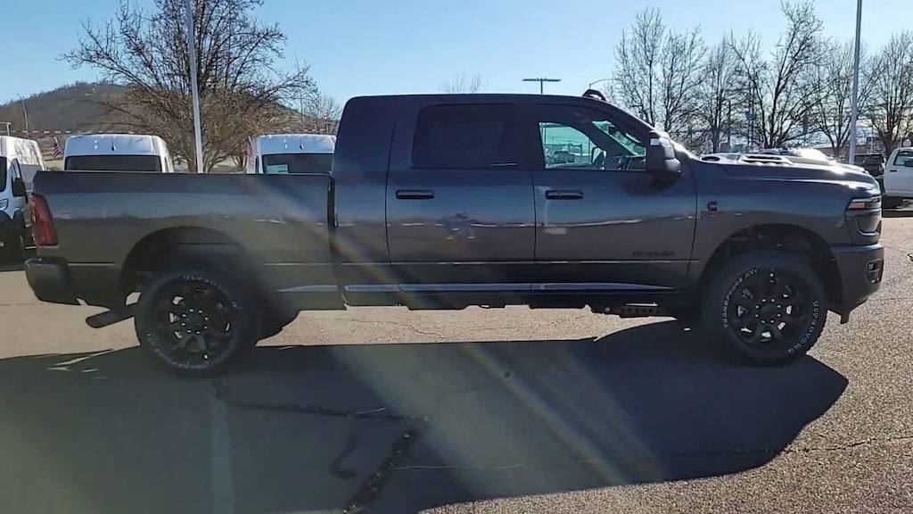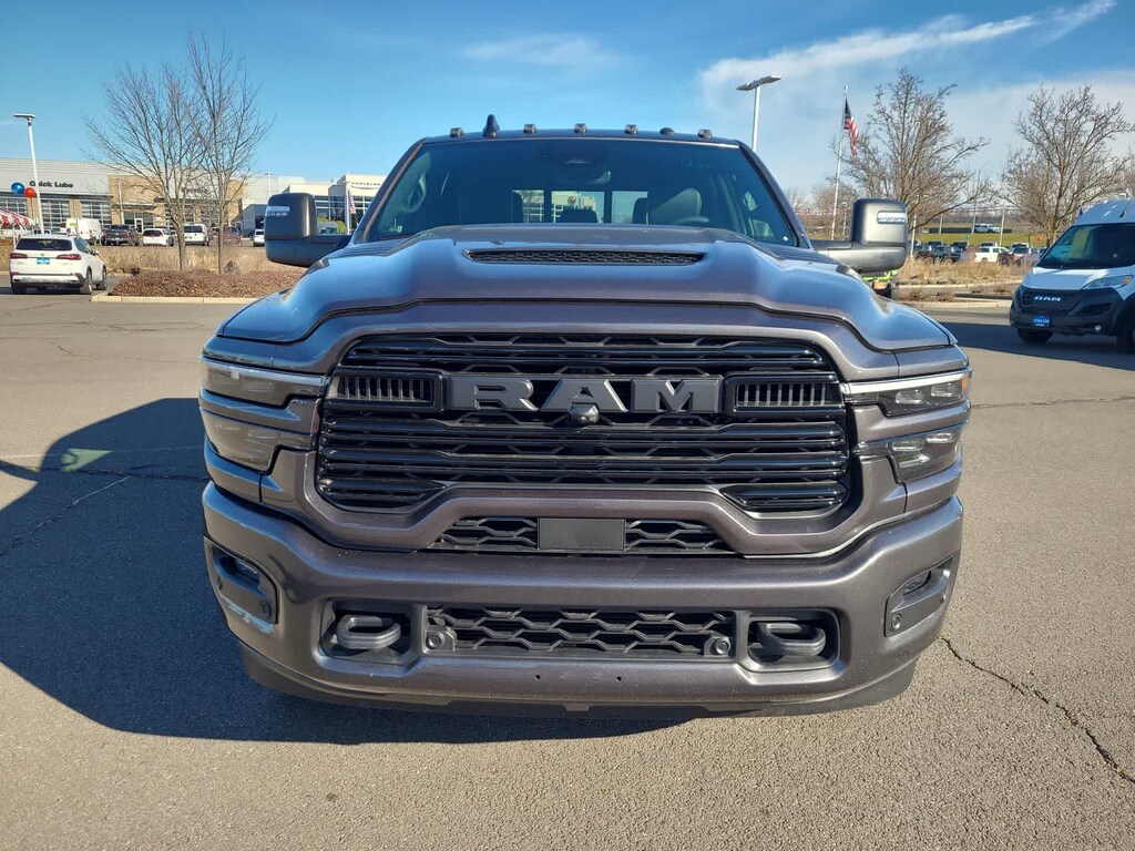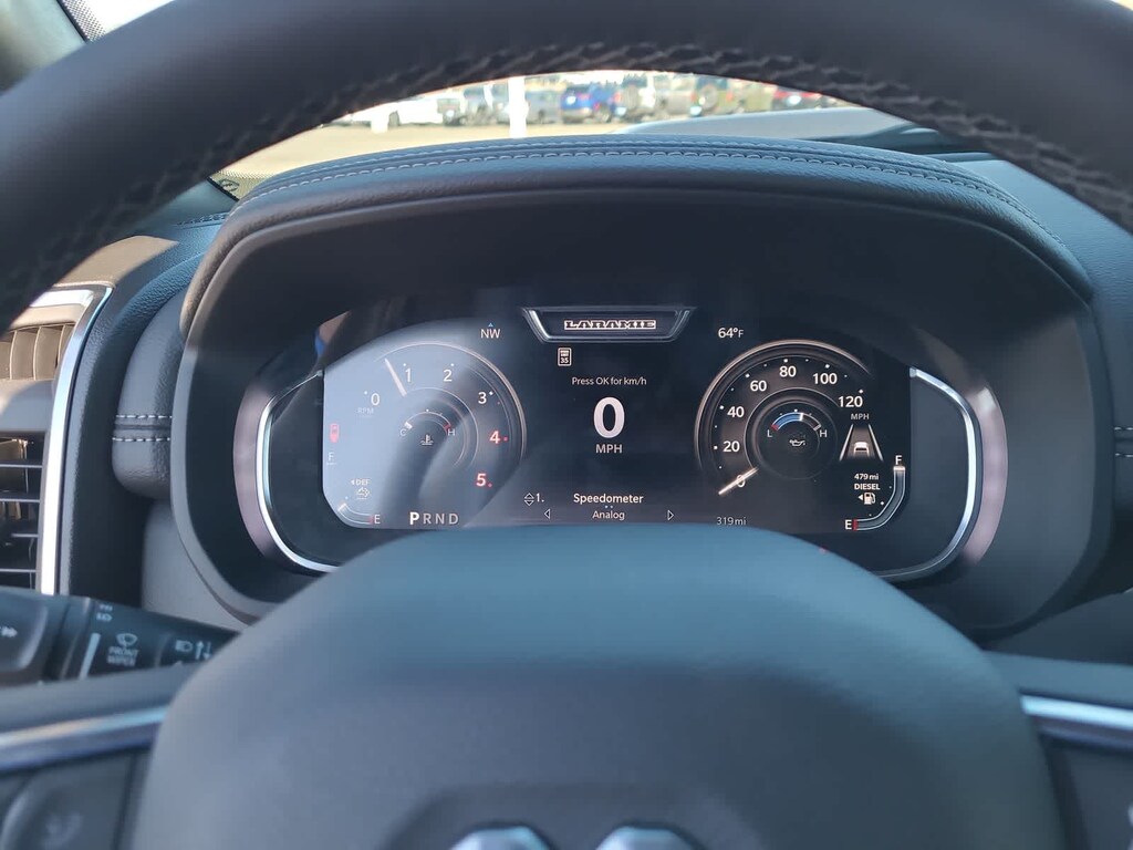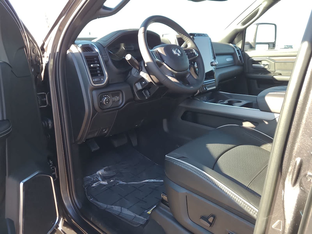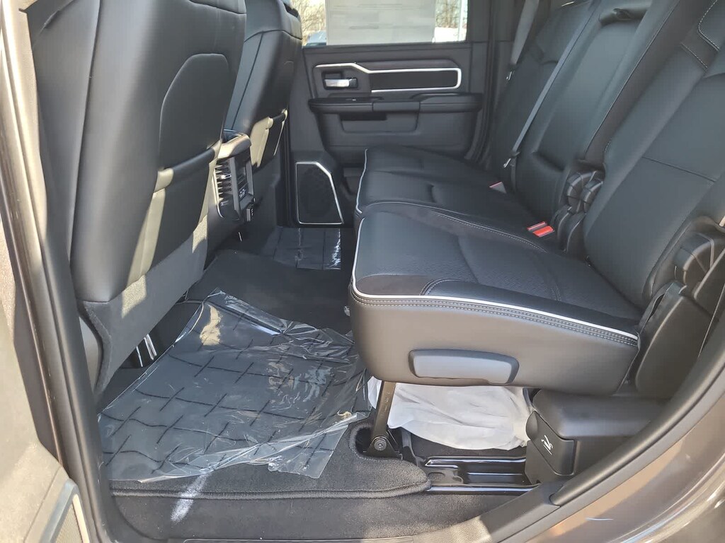 TOWING TECHNOLOGY GROUP Center Stop Lamp w/Cargo View Camera, Surround View Camera System, Trailer Tire Pressure Monitoring System, Trailer Reverse Guidance, LARAMIE LEVEL 1 PLUS EQUIPMENT GROUP Center Stop Lamp w/Cargo View Camera, Rain Sensitive Windshield Wipers, Power Adjustable Pedals w/Memory, LED Bed Lighting, Traffic Sign Recognition, Adaptive Steering System, Auto Dim Exterior Mirror, Drowsy Driver Detection, MOPAR Deployable Bed Step, Foam Bottle Insert (Door Trim Panel), Active Lane Management System, Power Heated Folding Telescopic Mirrors w/Memory, MOPAR Spray In Bedliner, Remote Tailgate Release, Auto High Beam Headlamp Control, Exterior Mirrors w/Memory, Auto Dim Exterior Passenger Mirror, Auto Adjust In Reverse Exterior Mirrors, POWER SUNROOF, TRANSMISSION: 8-SPEED TORQUEFLITE HD AUTOMATIC (STD), ENGINE: 6.7L I6 CUMMINS HO TURBO DIESEL (STD), BLACK, LEATHER TRIMMED BUCKET SEATS Bucket Seats, Dual Wireless Charging Pad, Ventilated Front Seats, Radio/Driver Seat/Mirrors/Pedals Memory, Full Length Upgraded Floor Console. Ram Laramie with Granite Crystal Metallic Clearcoat exterior and Black interior features a Straight 6 Cylinder Engine with 430 HP at 2800 RPM*.