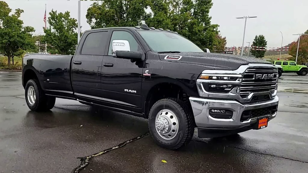 ENGINE: 6.7L I6 CUMMINS HO TURBO DIESEL Selective Catalytic Reduction (Urea), Dual 730 Amp Maintenance Free Batteries, Cummins Turbo Diesel Badge, Heavy Duty Engine Cooling, Current Generation Engine Controller, Diesel Exhaust Brake, Supplemental Heater, 3.42 Axle Ratio, Front Bumper Sight Shields, Capless Fuel Fill w/o Discriminator, LARAMIE LEVEL 2 PLUS EQUIPMENT GROUP Power Adjustable Pedals w/Memory, For Details Visit DriveUconnect.com, For More Info, Call 800-643-2112, Power Deployable Running Boards, Drowsy Driver Detection, MOPAR Deployable Bed Step, Active Lane Management System, Remote Tailgate Release, 17 Speaker harman/kardon® Premium Sound, 2nd Row In Floor Storage Bins, CTR Stop Lamp w/Cargo View Camera, Rain Sensitive Windshield Wipers, LED Bed Lighting, Traffic Sign Recognition, Adaptive Steering System, Auto Dimming Exterior Mirrors, Foam Bottle Insert (Door Trim Panel), 14.4 Touchscreen Display, Power Heat Fold Memory Telescopic Mirrors, Radio: Uconnect 5 Nav w/14.4 Display, MOPAR Spray In Bedliner, Auto High Beam Headlamp Control, Exterior Mirrors w/Memory, Auto Dimming Exterior Passenger Mirror, Auto, TOWING TECHNOLOGY GROUP CTR Stop Lamp w/Cargo View Camera, Surround View Camera System, Trailer Tire Pressure Monitoring System, Trailer Reverse Guidance, DUAL REAR WHEELS Clearance Lamps, Tires: LT235/80R17E BSW All Season, 17 Steel Spare Wheel, Box & Rear Fender Clearance Lamps, Center Hub, 6000# Front Axle w/Hub Ext, Wheels: 17 x 6.0 Polished Aluminum, Nexen Brand Tires, GVWR: 14,000 lb, TOW TECHNOLOGY PLUS GROUP Trailer Reverse Steering Control, Digital 3.0 Rear View Auto Dimming Mirror, Auxiliary Switches Prep, POWER SUNROOF, MOPAR FRONT & REAR RUBBER FLOOR MATS, TRANSMISSION: 8-SPEED TORQUEFLITE HD AUTOMATIC, BLACK, LEATHER TRIMMED BUCKET SEATS Bucket Seats, Dual Wireless Charging Pad, Full Length Upgraded Floor Console. Ram Laramie with Diamond Black Crystal Pearlcoat exterior and Black interior features a Straight 6 Cylinder Engine with 430 HP at 2800 RPM*.