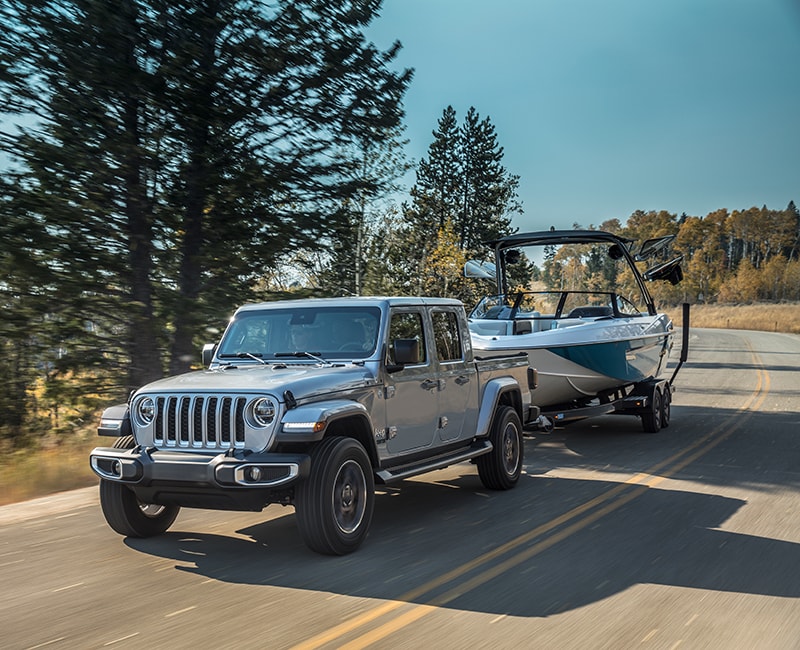Powered by a standard 3.6-liter Pentastar® V6 engine that produces 285 horsepower and 260 pound-feet of torque, used Jeep® Gladiator trucks deliver ample performance for commuting, towing, and off-roading thanks to a standard Command-Trac® Part-Time four-wheel drive system. When properly equipped, the Gladiator offers a maximum towing capacity of up to 7,700 pounds or up to 1,725 pounds of payload capacity. Plus, the Gladiator features various trim options that deliver up to 11.6 inches of ground clearance and 33-inch all-terrain tires to help you hit the trails, with available Tru-Lok® electronic locking differentials and cabin rock rails for impressive capability.