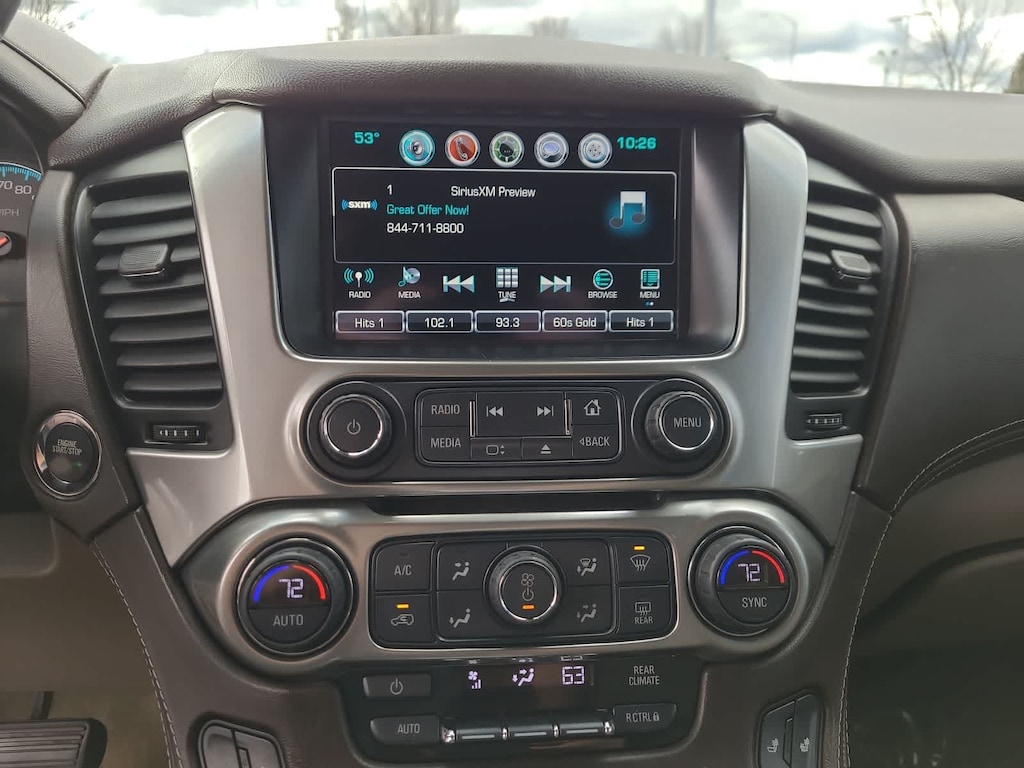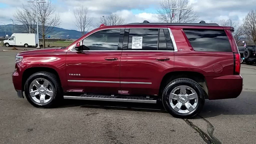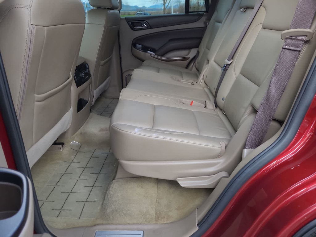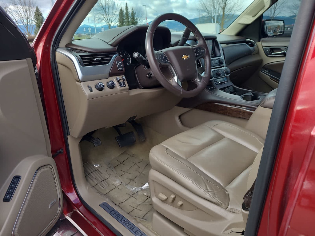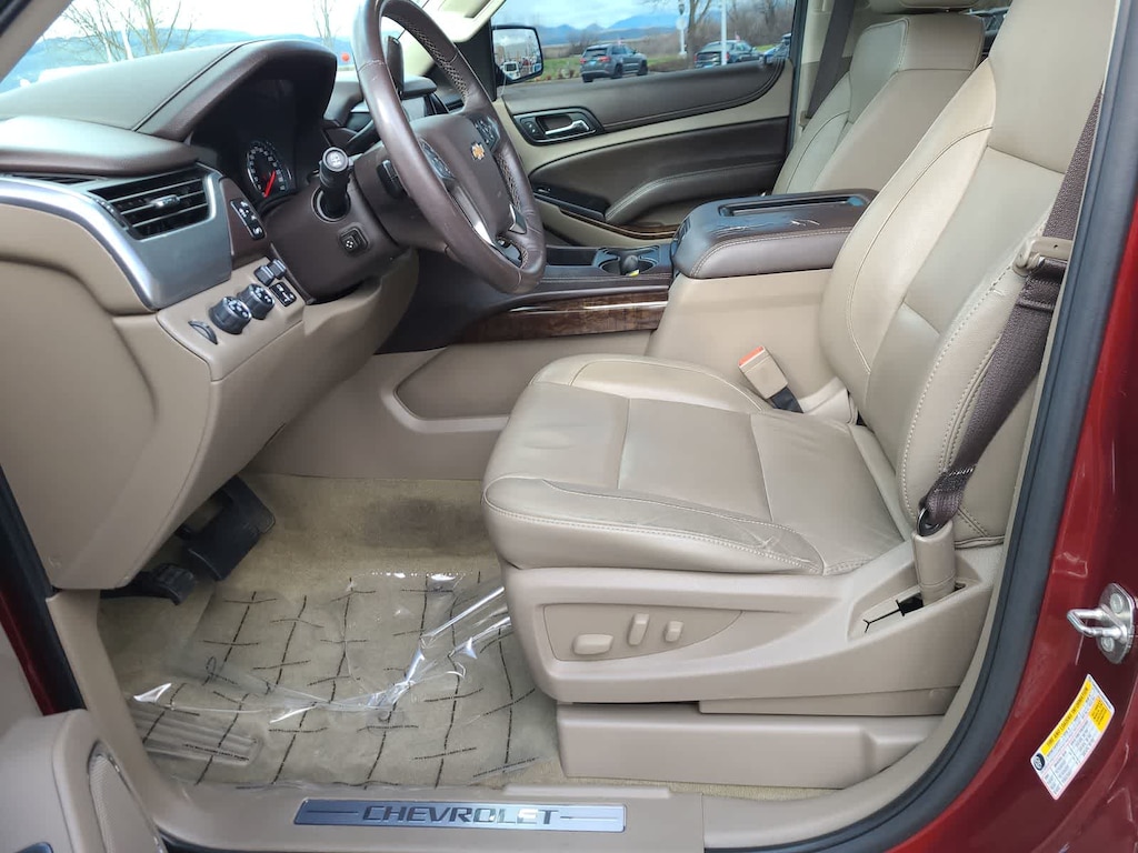 LT SIGNATURE PACKAGE includes (RD2) 20 x 9 chrome wheels, (QSS) P275/55R20 all-season, blackwall tires, (B85) bright bodyside moldings, (RZ9) grille insert, LPO, (VQZ) polished exhaust tip, LPO, (VQY) Chrome recovery hooks, LPO and (VXH) Chrome assist step kit, LPO. SUN, ENTERTAINMENT AND DESTINATIONS PACKAGE, (CF5) power sunroof, (U42) rear seat DVD entertainment system and (IO6) Chevrolet MyLink radio with navigation, ENTERTAINMENT SYSTEM, REAR SEAT, BLU-RAY/DVD with remote control, overhead display, Wi-Fi wireless projection capability, two 2-channel wireless digital headphones, auxiliary HDMI/MHL audio/video input and 2 USB ports, AUDIO SYSTEM, CHEVROLET MYLINK RADIO WITH NAVIGATION AND 8 DIAGONAL COLOR TOUCH-SCREEN AM/FM stereo with seek-and-scan and digital clock, includes Bluetooth® streaming audio for music and select phones; voice-activated technology for radio and phone; and Shop with the ability to browse, select and install apps to your vehicle. You can customize your content with audio, weather and more; featuring Apple CarPlay® and Android Auto® capability for compatible phone; 5 USB ports and 1 auxiliary jack, LPO, BLACK ROOF RACK CROSS RAILS (dealer-installed) (Included with (PDA) Texas Edition Package, (ST7) LT Midnight Edition and (WJP) Z71 Midnight Edition.), MIRRORS, OUTSIDE HEATED POWER-ADJUSTABLE, POWER-FOLDING AND DRIVER-SIDE AUTO-DIMMING with integrated turn signal indicators and ground illumination, ENGINE, 5.3L ECOTEC3 V8 WITH ACTIVE FUEL MANAGEMENT, DIRECT INJECTION AND VARIABLE VALVE TIMING includes aluminum block construction (355 hp [265 kW] @ 5600 rpm, 383 lb-ft of torque [518 N-m] @ 4100 rpm) (STD), TRANSMISSION, 6-SPEED AUTOMATIC, ELECTRONICALLY CONTROLLED with overdrive and tow/haul mode (STD), LUXURY PACKAGE includes additional 9 months of SiriusXM Radio, (AS8) power fold third row 60/40 split bench seats, (ATH) Passive Entry System, (ATT) second row power release 60/40 split folding bench seat, (BTM) keyless start, (DL3) outside heated power-adjustable, power-folding mirrors, (KA6) heated second row seats, (K4C) Wireless charging device, (N38) memory power tilt and telescopic steering column, (TC2) Hands free liftgate, (T3U) fog lamps, (UD5) front and rear parking assist, (UFG) Rear Cross-Traffic Alert, (UKC) Side Blind Zone Alert and (UVD) heated steering wheel and color key rear fascia trailer hitch closeout, STEERING WHEEL, HEATED, LEATHER-WRAPPED AND COLOR-KEYED with theft-deterrent locking feature. Chevrolet LT with Siren Red Tintcoat exterior and Cocoa/Dune interior features a 8 Cylinder Engine with 355 HP at 5600 RPM*.