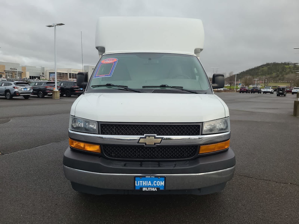 ENGINE, VORTEC 6.0L V8 (341 hp [254.3 kW] @ 5400 rpm, 373 lb-ft of torque [503.6 N-m] @ 4200 rpm) (Includes external oil cooler. POWER CONVENIENCE PACKAGE includes (A31) power windows and (AU3) power door locks, DRIVER CONVENIENCE PACKAGE includes Tilt-Wheel and (K34) cruise control, DIFFERENTIAL, HEAVY-DUTY LOCKING REAR, REMOTE KEYLESS ENTRY with 2 transmitters and remote panic button, AUDIO SYSTEM, AM/FM STEREO WITH CD/MP3 PLAYER USB port, seek-and-scan, digital clock, auto-tone control, Radio Data System (RDS), TheftLock, random select, auxiliary jack and 2 front door speakers, Bluetooth® FOR PHONE personal cell phone connectivity to vehicle audio system (subscription to OnStar services not required for operation). TRANSMISSION, 6-SPEED AUTOMATIC, HEAVY-DUTY electronically controlled with overdrive and tow/haul mode. Includes Cruise Grade Braking, Powertrain Grade Braking, and Tap-Up/Tap-Down Driver Shift Control, STEERING WHEEL CONTROLS, MOUNTED AUDIO CONTROLS. Chevrolet Express Commercial Cutaway with Summit White exterior and Medium Pewter interior features a 8 Cylinder Engine with 276 HP at 5200 RPM*. Serviced here
