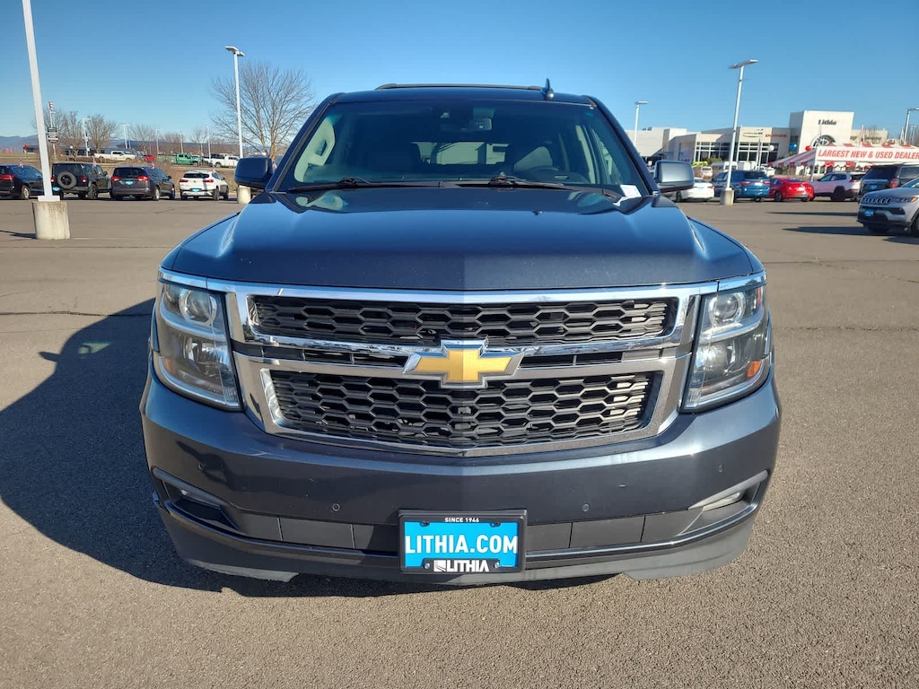 SUN, ENTERTAINMENT AND DESTINATIONS PACKAGE, (CF5) power sunroof, (U42) rear seat DVD entertainment system and (IO6) 8 diagonal color touch-screen Navigation with Chevrolet Infotainment, LUXURY PACKAGE includes additional 9 months of SiriusXM Radio, (AS8) power fold third row 60/40 split bench seats, (ATH) Passive Entry System, (ATT) second row power release 60/40 split folding bench seat, (BTM) Keyless Start, (DL3) outside heated power-adjustable, power-folding mirrors, (KA6) heated second row seats, (N38) memory power tilt and telescopic steering column, (TC2) hands free liftgate, (T3U) fog lamps, (UD5) Front and Rear Park Assist, (UFG) Rear Cross Traffic Alert, (UKC) Lane Change Alert with Side Blind Zone Alert and (UVD) heated steering wheel and color key rear fascia trailer hitch closeout, ENTERTAINMENT SYSTEM, REAR SEAT, BLU-RAY/DVD with remote control, overhead display, Wi-Fi wireless projection capability, two 2-channel wireless digital headphones, auxiliary HDMI/MHL audio/video input and 2 USB ports, AUDIO SYSTEM, 8 DIAGONAL COLOR TOUCH-SCREEN NAVIGATION WITH CHEVROLET INFOTAINMENT AM/FM stereo with seek-and-scan and digital clock, includes Bluetooth® streaming audio for music and select phones; voice-activated technology for radio and phone; and Shop with the ability to browse, select and install apps to your vehicle. You can customize your content with audio, weather and more; featuring Apple CarPlay® and Android Auto® capability for compatible phone; 5 USB ports and 1 auxiliary jack, MIRRORS, OUTSIDE HEATED POWER-ADJUSTABLE, POWER-FOLDING AND DRIVER-SIDE AUTO-DIMMING with integrated turn signal indicators and ground illumination, ENGINE, 5.3L ECOTEC3 V8 WITH ACTIVE FUEL MANAGEMENT, DIRECT INJECTION AND VARIABLE VALVE TIMING includes aluminum block construction (355 hp [265 kW] @ 5600 rpm, 383 lb-ft of torque [518 N-m] @ 4100 rpm) (STD), TRANSMISSION, 6-SPEED AUTOMATIC, ELECTRONICALLY CONTROLLED with overdrive and tow/haul mode (STD), STEERING WHEEL, HEATED, LEATHER-WRAPPED AND COLOR-KEYED with theft-deterrent locking feature. Chevrolet LT with SHADOW GRAY METALLIC exterior and JET BLACK interior features a 8 Cylinder Engine with 355 HP at 5600 RPM*.