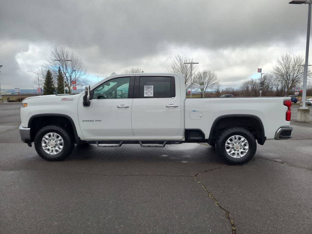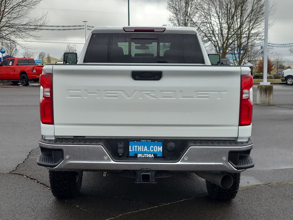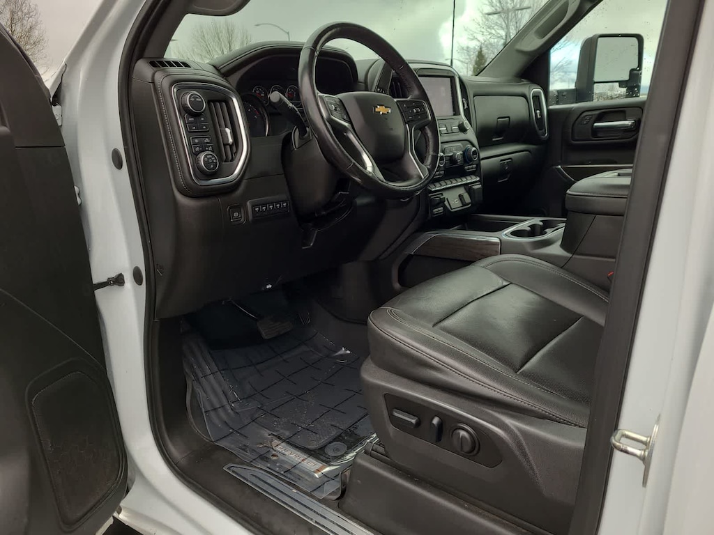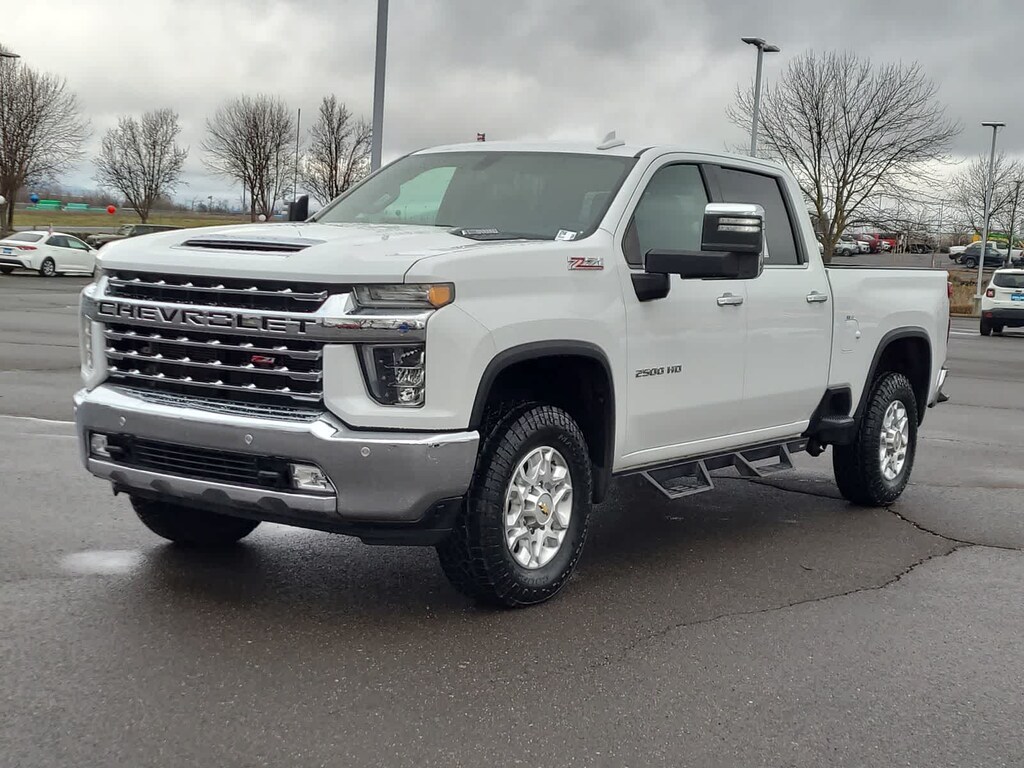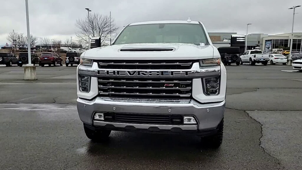 ENGINE, DURAMAX 6.6L TURBO-DIESEL V8 B20-Diesel compatible, (445 hp [332 kW] @ 2800 rpm, 910 lb-ft of torque [1220 Nm] @ 1600 rpm), LTZ CONVENIENCE PACKAGE includes (A50) bucket seats with (D07) center console, (KQV) heated and ventilated front seats, (A48) rear sliding power window, (UG1) Universal Home Remote, (QT6) power up/down tailgate, (UF2) bed LED cargo area lighting and (KA6) rear heated seats, SAFETY PACKAGE includes (UD5) Front and Rear Park Assist, (UKC) Lane Change Alert with Side Blind Zone Alert and (UFG) Rear Cross Traffic Alert, CHEVYTEC SPRAY-ON BEDLINER Black with Chevrolet logo (does not include spray-on liner on tailgate due to Black composite inner panel), FLOOR LINERS, WITH REMOVABLE CARPET INSERTS, FRONT, AUDIO SYSTEM, CHEVROLET INFOTAINMENT 3 PLUS SYSTEM 8 diagonal HD color touchscreen, AM/FM stereo, Bluetooth® audio streaming for 2 active devices, wireless Apple CarPlay® and Android Auto® capable, voice recognition, in-vehicle apps, cloud connected personalization for select infotainment and vehicle settings. Subscription required for enhanced and connected services after trial period. (STD) (Includes (PZ8) Hitch Guidance with Hitch View.), TRANSMISSION, ALLISON 10-SPEED AUTOMATIC. Chevrolet LTZ with Summit White exterior and Jet Black interior features a 8 Cylinder Engine with 401 HP at 5200 RPM*.