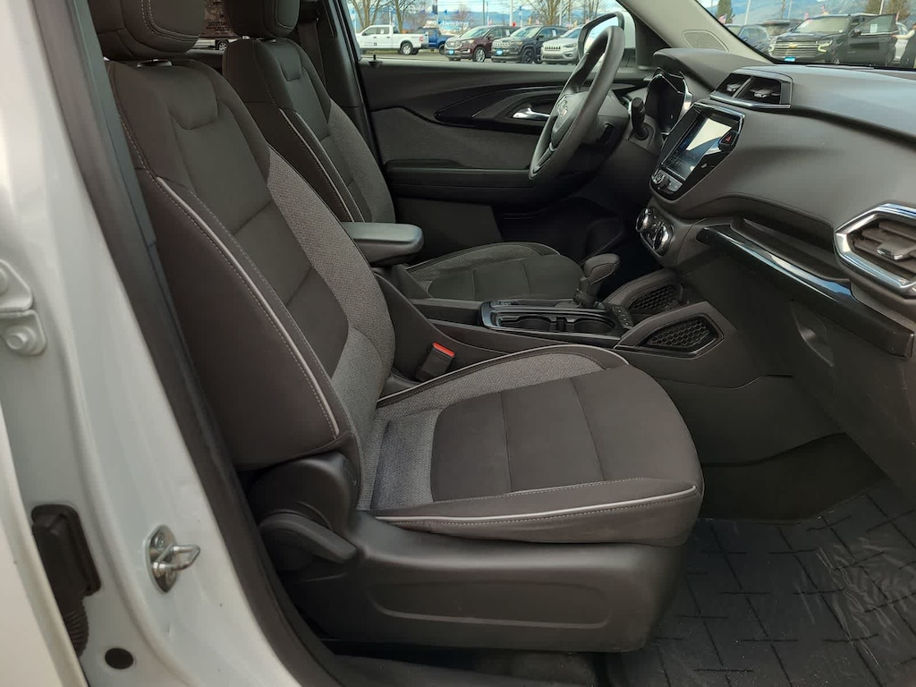 CONVENIENCE PACKAGE includes (C68) automatic climate control air conditioning, (UIJ) 8 diagonal color touchscreen display, (USS) one type-A and one type-C charging only USB ports, (KI6) 120-volt power outlet, (DD8) inside rearview auto-dimming mirror and (DMS) driver and front passenger illuminated vanity mirrors, covered, sliding visors, DRIVER CONFIDENCE PACKAGE includes (UKC) Lane Change Alert with Side Blind Zone Alert, (UFG) Rear Cross Traffic Alert and (UD7) Rear Park Assist (Vehicles built prior to January 10, 2022 include Rear Park Assist. Certain vehicles built on or after January 10, 2022, will be forced to include (00Y) Not Equipped with Rear Park Assist, which removes Rear Park Assist. See dealer for details or the window label for the features on a specific vehicle.), AUDIO SYSTEM, CHEVROLET INFOTAINMENT 3 SYSTEM 7 diagonal color touchscreen, AM/FM stereo. Additional features for compatible phones include: Bluetooth® audio streaming for 2 active devices, voice command pass-through to phone, Apple CarPlay® and Android Auto® capable. (8 screen when (ZL3) Convenience Package and (ZL5) Driver Confidence Package or (SOR) Confidence II Package are ordered.) (STD), ENGINE, ECOTEC 1.3L I3 TURBO DOHC SIDI WITH VARIABLE VALVE TIMING (VVT) (155 hp [115 kW] @ 5600 rpm, 174 lb-ft torque [236 N-m] @ 1600 rpm) (STD), TRANSMISSION, 9-SPEED AUTOMATIC (STD). Chevrolet LT with Summit White exterior and Jet Black interior features a 3 Cylinder Engine with 155 HP at 5600 RPM*.