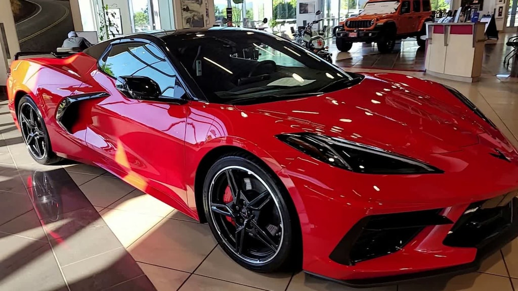 Z51 PERFORMANCE PACKAGE includes (J55) Z51 performance brakes, (FE3) Z51 performance suspension, (NPP) performance exhaust, (GM7) performance rear axle ratio, (G96) Electronic Limited Slip Differential (eLSD), (T0A) Z51 rear spoiler, front splitter, (XFQ) 245/35ZR19 front and 305/30ZR20 rear, blackwall, high performance tires and (V08) heavy-duty cooling system, CONVERTIBLE TOP, CARBON FLASH-PAINTED NACELLES AND ROOF, WHEELS, 19 X 8.5 (48.3 CM X 21.6 CM) FRONT AND 20 X 11 (50.8 CM X 27.9 CM) REAR 5-OPEN-SPOKE CARBON FLASH-PAINTED ALUMINUM WITH MACHINED EDGE, AUDIO SYSTEM, CHEVROLET INFOTAINMENT 3 PREMIUM SYSTEM with Google built-in compatibility (select service plan required, terms and limitations apply) including navigation capability, 8 diagonal HD color touchscreen, includes multi-touch display, AM/FM stereo, Bluetooth® streaming audio for music and most phones; featuring Wireless Apple CarPlay® and Wireless Android Auto® capability for compatible phones, advanced voice recognition, in-vehicle apps, personalized profiles for infotainment and vehicle settings (STD), ENGINE, 6.2L V8 DI, HIGH-OUTPUT Variable Valve Timing (VVT), Active Fuel Management (AFM) (490 hp [365.4 kW] @ 6450 rpm, 465 lb-ft of torque [627.8 N-m] @ 5150 rpm) (STD), TRANSMISSION, 8-SPEED DUAL CLUTCH, INCLUDES MANUAL AND AUTO MODES (STD). Chevrolet 1LT with Torch Red exterior and Jet Black interior features a 8 Cylinder Engine with 490 HP at 6450 RPM*. Comes with a Lithia 60 Day/3,000 Mile Limited Warranty