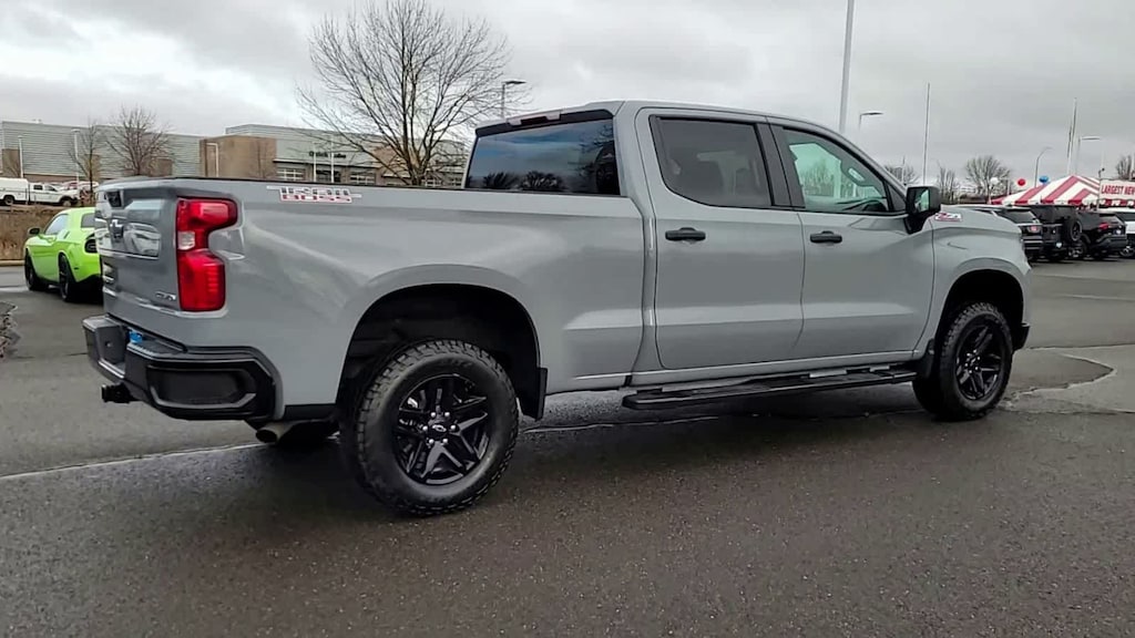 LPO, BLACK TUBULAR ASSIST STEPS, 6 RECTANGULAR (dealer-installed), CHEVYTEC SPRAY-ON BEDLINER, BLACK (does not include spray-on liner on tailgate due to Black composite inner panel), TAILGATE, MULTI-FLEX with six functional load/access features, NOTE: Auto release can be disabled if ball hitch is installed. See Owners manual for details, AUDIO SYSTEM, CHEVROLET INFOTAINMENT 3 SYSTEM 7 diagonal HD color touchscreen, AM/FM stereo, Bluetooth® audio streaming for 2 active devices, voice command pass-through to phone, Wireless Apple CarPlay® and Wireless Android Auto® compatibility (STD), ENGINE, TURBOMAX (310 hp [231 kW] @ 5600 rpm, 430 lb-ft of torque [583 Nm] @ 3000 rpm) (STD), TRANSMISSION, 8-SPEED AUTOMATIC, ELECTRONICALLY CONTROLLED with overdrive and tow/haul mode. Includes Cruise Grade Braking and Powertrain Grade Braking (STD). Chevrolet Custom Trail Boss with Slate Gray Metallic exterior and Jet Black interior features a 4 Cylinder Engine with 310 HP at 5600 RPM*.