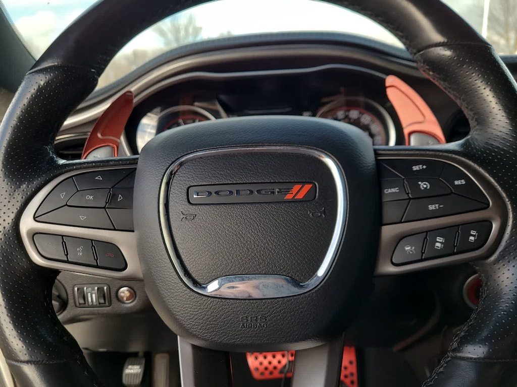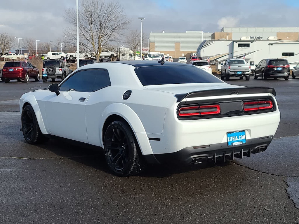 QUICK ORDER PACKAGE 24N R/T SCAT PACK WIDEBODY Engine: 6.4L V8 SRT HEMI MDS, Transmission: 8-Speed Automatic (8HP70), 3.09 Rear Axle Ratio, Leather Flat-Bottom Steering Wheel, Performance Shift Indicator, Brembo 6-Pot Fixed Front Caliper Brakes, Pirelli Brand Tires, Widebody Competition Suspension, Widebody Fender Flares, harman/kardon® AUDIO GROUP W/SUBWOOFER Trunk Mounted Subwoofer, 18 Speakers Premium Audio System, Surround Sound, harman/kardon® GreenEdge Amp, TRANSMISSION: 8-SPEED AUTOMATIC (8HP70) AutoStick Automatic Transmission, Remote Start System w/Smart Key, Tip Start, Steering Wheel Mounted Shift Control, Auto Leather Wrapped Shift Knob, TECHNOLOGY GROUP Rain Sensitive Windshield Wipers, Auto High Beam Headlamp Control, DRIVER CONVENIENCE GROUP Blind Spot & Cross Path Detection, High Intensity Discharge Headlamps, Power Multi-Function Foldaway Mirrors, POWER SUNROOF, WHEELS: 20 X 11 CARBON BLACK ALUMINUM, SRT PERFORMANCE SPOILER, RADIO: UCONNECT 4C NAV W/8.4 DISPLAY SiriusXM Traffic Plus, GPS Navigation, SiriusXM Travel Link, ENGINE: 6.4L V8 SRT HEMI MDS. Dodge R/T Scat Pack Widebody with White Knuckle Clearcoat exterior and Black interior features a 8 Cylinder Engine with 485 HP at 6100 RPM*.