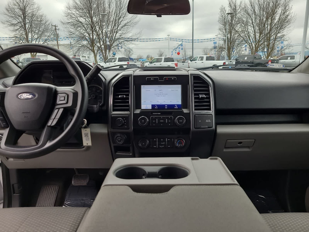 TRAILER TOW PACKAGE Towing capability up to 11,300 lbs, tailgate LED, Pro Trailer Backup Assist, Class IV Trailer Hitch Receiver, towing capability up to 6,000 lbs, on 3.3L V6 PFDI engine (99B) and 2.7L EcoBoost engine (99P) or up to 7,000 lbs, on 3.5L EcoBoost engine (994), 3.5L EcoBoost High Output engine (99G) and 5.0L V8 engine (995), smart trailer tow connector and 4-pin/7-pin wiring harness, Upgraded Front Stabilizer Bar, ENGINE: 2.7L V6 ECOBOOST auto start-stop technology, 3.55 Axle Ratio, GVWR: 6,600 lbs Payload Package, TOUGH BED SPRAY-IN BEDLINER, 8-WAY POWER DRIVERS SEAT W/POWER LUMBAR, REVERSE SENSING SYSTEM, BLACK PLATFORM RUNNING BOARDS, REAR WINDOW DEFROSTER, TRANSMISSION: ELECTRONIC 10-SPEED AUTOMATIC selectable drive modes: normal/tow-haul/snow-wet/EcoSelect/sport. Ford XLT with Oxford White exterior and Medium Earth Gray interior features a V6 Cylinder Engine with 290 HP at 6500 RPM*.