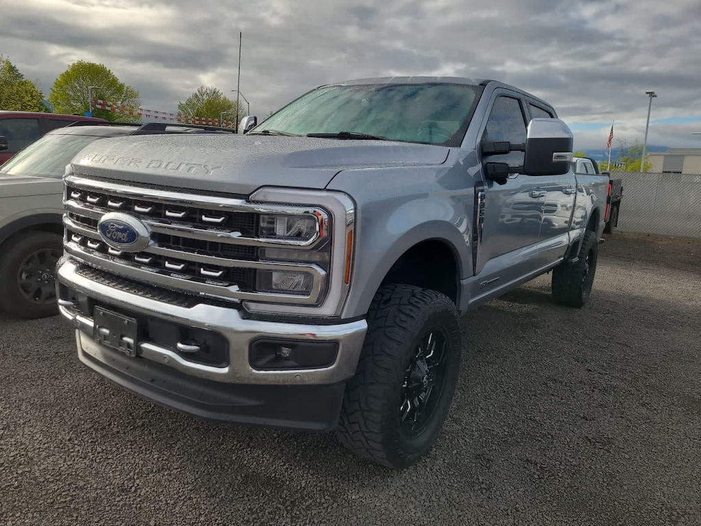 ENGINE: 6.7L 4V OHV POWER STROKE V8 TURBO DIESEL B20 manual push-button engine-exhaust braking, Operator Commanded Regeneration (OCR) and intelligent oil-life monitor, 34 Gallon Fuel Tank, GVWR: 12,000 lb Payload Package, 3.31 Axle Ratio, Dual 68 AH/65 AGM Batteries, LARIAT ULTIMATE PACKAGE Wireless Charging Pad, Front Sensing System, Tailgate Step & Handle, Intelligent Adaptive Cruise Control w/Stop-and-Go, lane centering and speed sign recognition, Radio: B&O Unleashed Sound System by Bang & Olufsen, HD Radio w/14 speakers including subwoofer, Pro Trailer Hitch Assist, Ford Co-Pilot 360 2.0, rear view camera, reverse brake assist and reverse sensing system, Lane-Keeping System, lane-keeping alert, lane-keeping aid and driver alert, Pre-Collision Assist, Automatic Emergency Braking (AEB), pedestrian detection, forward collision warning, dynamic brake support and intersection assist, Post-Collision Braking, Automatic High Beam, BLIS w/Cross-Traffic Alert, trailer coverage, Upfitter Switches (6), Located in overhead console, 4-Way Adjustable Headrests, CHROME PACKAGE 2 front chrome tow hooks, Unique Chrome Mirror Caps, Tires: LT275/65Rx20E BSW Automatic Transmission (4), Spare may not be the same as road tire, Wheels: 20 Chrome PVD Aluminum, Chrome Door Handles, 6 Angular Bright Anodized Step Bars, Chrome Exhaust Tip, TOUGH BED SPRAY-IN BEDLINER tailgate-guard, black box bed tie-down hooks and black bed attachment bolts, ELECTRONIC-LOCKING W/3.31 AXLE RATIO, MAX RECLINE SEATS 10-way power driver and 8-way power passenger and 4-way headrests, TRANSMISSION: TORQSHIFT 10-SPEED AUTOMATIC SelectShift and selectable drive modes: normal, eco, slippery roads, tow/haul and off-road (STD). Ford LARIAT with Iconic Silver exterior and Black Onyx interior features a 8 Cylinder Engine with 475 HP at 2600 RPM*.