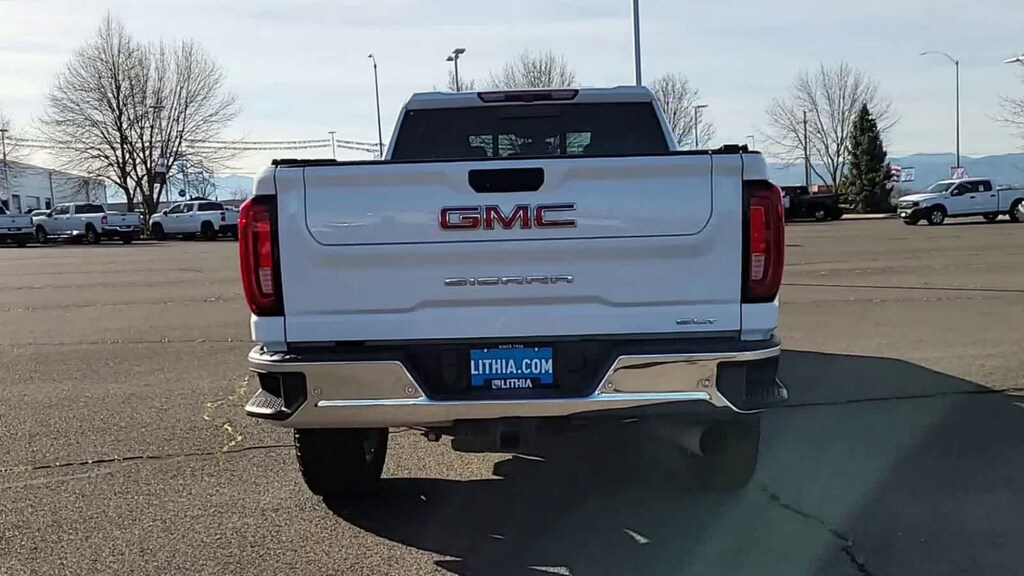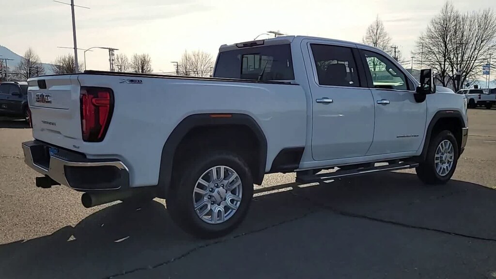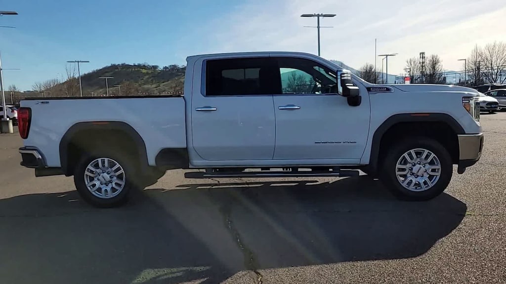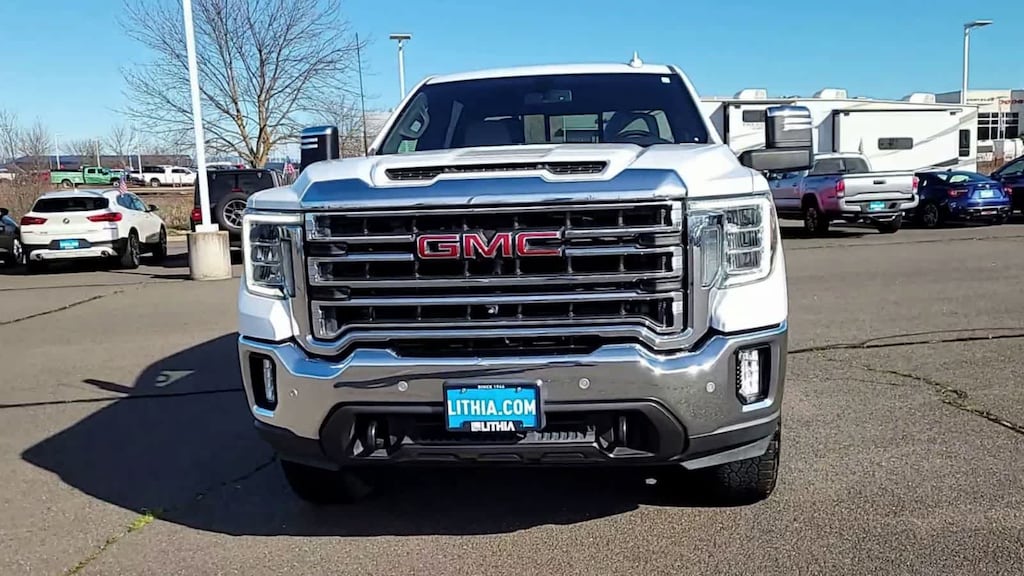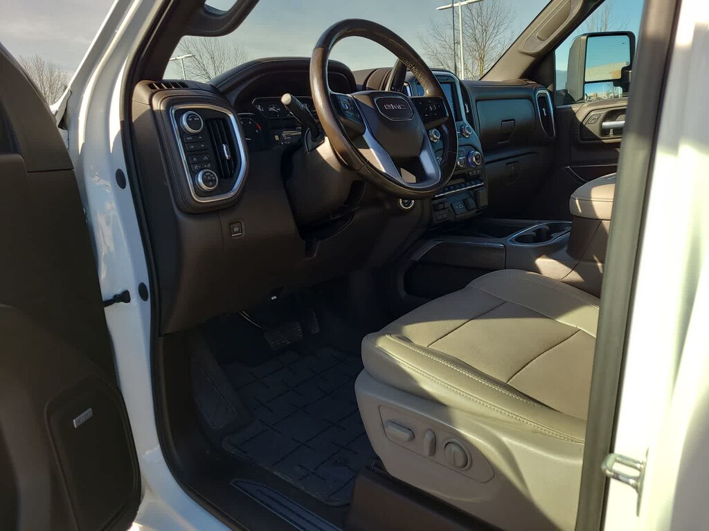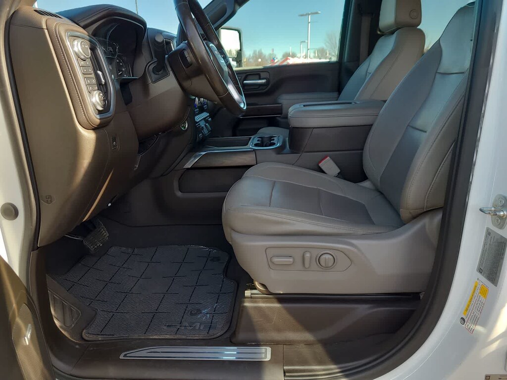 ENGINE, DURAMAX 6.6L TURBO-DIESEL V8, B20-DIESEL COMPATIBLE (445 hp [332 kW] @ 2800 rpm, 910 lb-ft of torque [1220 Nm] @ 1600 rpm) (Includes (K05) engine block heater.), SLT PREFERRED PACKAGE includes (UVN) Bed View Camera, (UVS) HD Surround Vision with Two Trailer View Camera Provisions (IOT) 8 diagonal Premium GMC Infotainment with navigation, (UQA) Bose Premium Audio System and (K4C) Wireless Charging, SLT CONVENIENCE PACKAGE includes (A50) bucket seats with (D07) center console, (KQV) ventilated front seats, (A48) rear sliding power window, (UG1) Universal Home Remote, (MCR) USB Ports (Inside Console with bucket seats), (MCZ) 2 USB ports with auxiliary input, (U01) Roof Marker Lamps; also includes (KA6) rear heated seats, DRIVER ALERT PACKAGE I includes (UD5) Front and Rear Park Assist, (UKC) Lane Change Alert with Side Blind Zone Alert and (UFG) Rear Cross Traffic Alert (Includes Perimeter Lighting. WHEELS, 20 (50.8 CM) MACHINED ALUMINUM WHEEL with bright Silver accents, ASSIST STEPS, CHROMED TUBULAR, 6 RECTANGULAR CAB LENGTH (factory installed), BED VIEW CAMERA camera in the CHMSL to show a view of the cargo bed, display located in infotainment screen, includes Two Trailer Camera Provisions, AUDIO SYSTEM, PREMIUM GMC INFOTAINMENT SYSTEM WITH NAVIGATION AND 8 DIAGONAL COLOR TOUCH-SCREEN includes multi-touch display, AM/FM stereo, Bluetooth® streaming audio for music and most phones; featuring wireless Android Auto® and Apple CarPlay® capability for compatible phones, advanced voice recognition, in-vehicle apps, personalized profiles for infotainment and vehicle settings. Includes greater memory. Includes (PZ8) Hitch Guidance with hitch view.), TRANSMISSION, ALLISON 10-SPEED AUTOMATIC. GMC SLT with Summit White exterior and Dark Walnut/Slate interior features a 8 Cylinder Engine with 401 HP at 5200 RPM*.