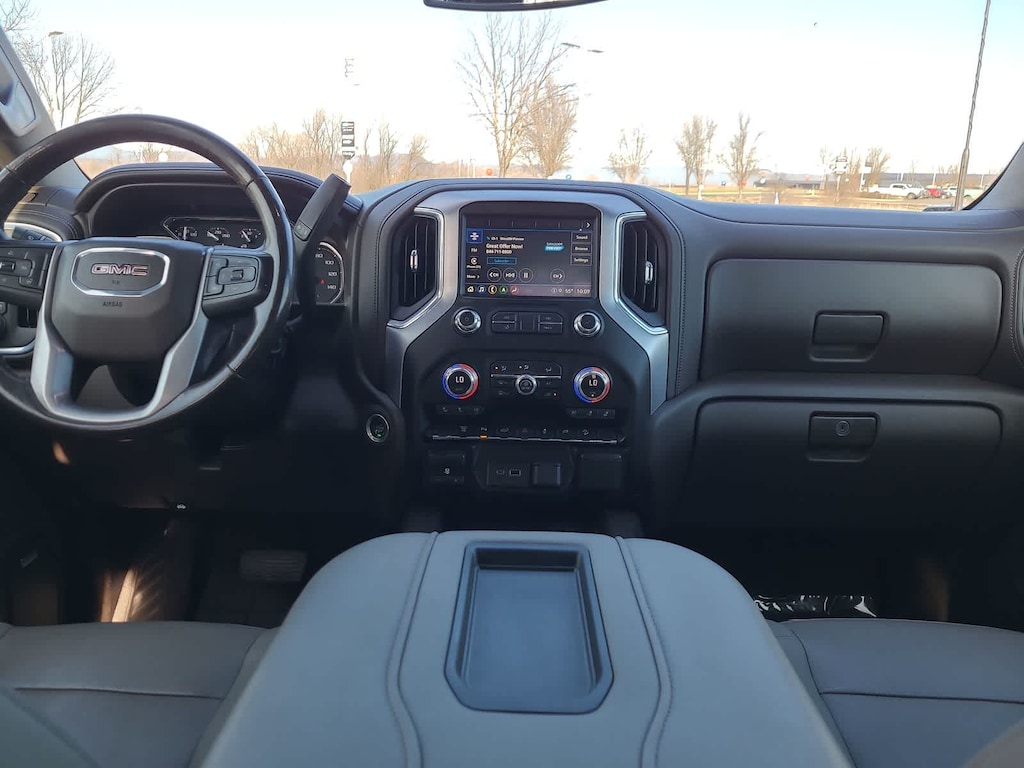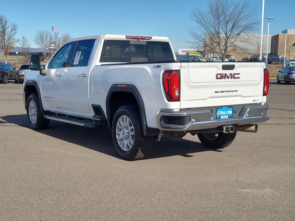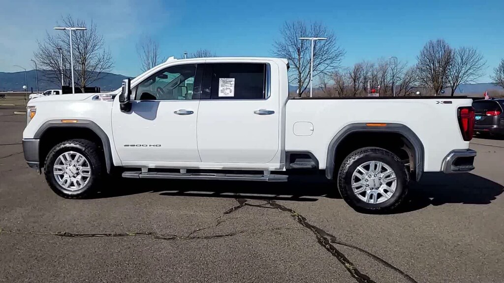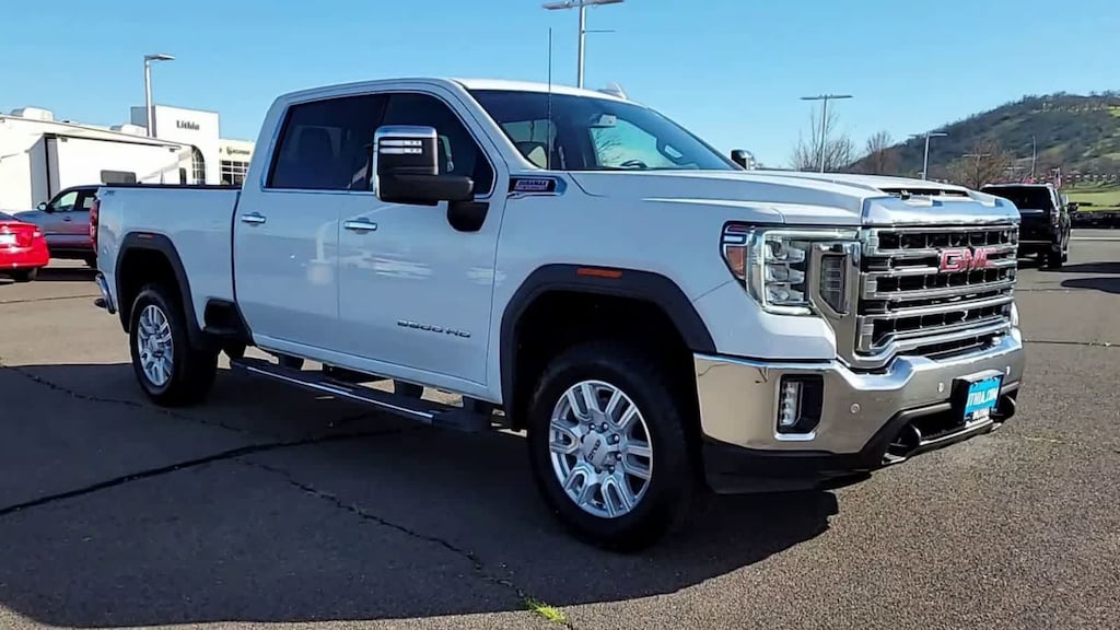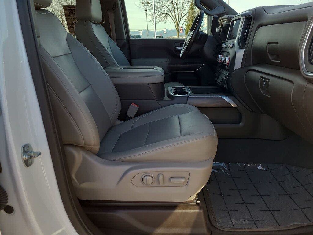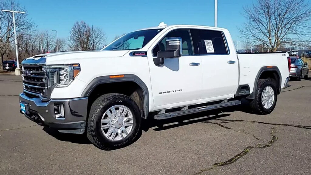 ENGINE, DURAMAX 6.6L TURBO-DIESEL V8, B20-DIESEL COMPATIBLE (445 hp [332 kW] @ 2800 rpm, 910 lb-ft of torque [1220 Nm] @ 1600 rpm) (Includes (K05) engine block heater.), SLT PREFERRED PACKAGE includes (UVN) Bed View Camera, (UVS) HD Surround Vision with Two Trailer View Camera Provisions (IOT) 8 diagonal Premium GMC Infotainment with navigation, (UQA) Bose Premium Audio System and (K4C) Wireless Charging, SLT CONVENIENCE PACKAGE includes (A50) bucket seats with (D07) center console, (KQV) ventilated front seats, (A48) rear sliding power window, (UG1) Universal Home Remote, (MCR) USB Ports (Inside Console with bucket seats), (MCZ) 2 USB ports with auxiliary input, (U01) Roof Marker Lamps; also includes (KA6) rear heated seats, DRIVER ALERT PACKAGE I includes (UD5) Front and Rear Park Assist, (UKC) Lane Change Alert with Side Blind Zone Alert and (UFG) Rear Cross Traffic Alert (Includes Perimeter Lighting. WHEELS, 20 (50.8 CM) MACHINED ALUMINUM WHEEL with bright Silver accents, ASSIST STEPS, CHROMED TUBULAR, 6 RECTANGULAR CAB LENGTH (factory installed), BED VIEW CAMERA camera in the CHMSL to show a view of the cargo bed, display located in infotainment screen, includes Two Trailer Camera Provisions, AUDIO SYSTEM, PREMIUM GMC INFOTAINMENT SYSTEM WITH NAVIGATION AND 8 DIAGONAL COLOR TOUCH-SCREEN includes multi-touch display, AM/FM stereo, Bluetooth® streaming audio for music and most phones; featuring wireless Android Auto® and Apple CarPlay® capability for compatible phones, advanced voice recognition, in-vehicle apps, personalized profiles for infotainment and vehicle settings. Includes greater memory. Includes (PZ8) Hitch Guidance with hitch view.), TRANSMISSION, ALLISON 10-SPEED AUTOMATIC. GMC SLT with Summit White exterior and Dark Walnut/Slate interior features a 8 Cylinder Engine with 401 HP at 5200 RPM*.