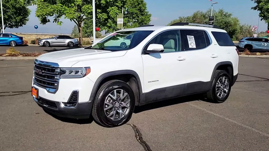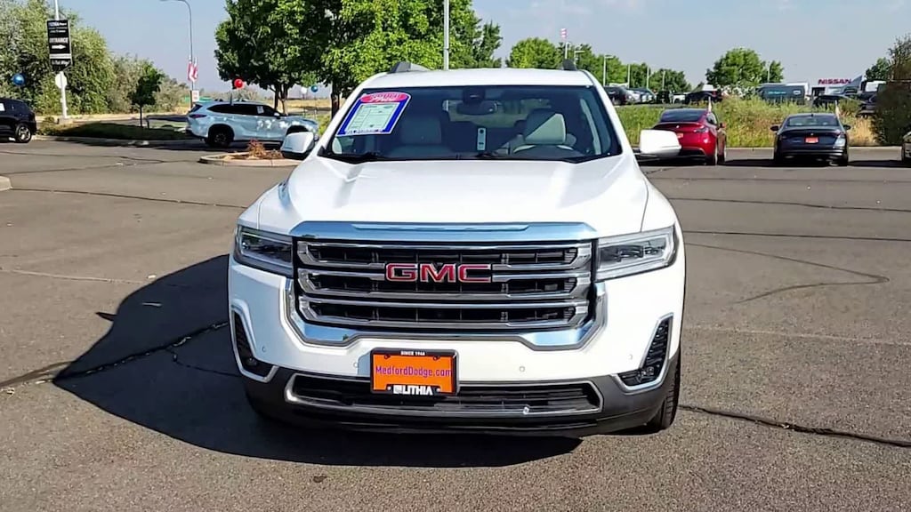AUDIO SYSTEM, 8 DIAGONAL GMC INFOTAINMENT SYSTEM WITH NAVIGATION includes multi-touch display, AM/FM/SiriusXM stereo, Bluetooth® streaming audio for music and most phones, Android Auto® and Apple CarPlay® capability for compatible phones, advanced voice recognition, in-vehicle apps, personalized profiles for infotainment and vehicle settings (STD), ENGINE, 2.0L TURBO, 4-CYLINDER, SIDI with Variable Valve Timing (VVT) (228 hp [171 kW] @ 5000 rpm, 258 lb-ft of torque [349.8 N-m]) @ 1500 - 4000 rpm (STD), TRANSMISSION, 9-SPEED AUTOMATIC, ELECTRONICALLY-CONTROLLED with 2.0L Turbo engine (STD). GMC SLT with Summit White exterior and Cocoa/Light Ash Gray interior features a 4 Cylinder Engine with 228 HP at 5000 RPM*.