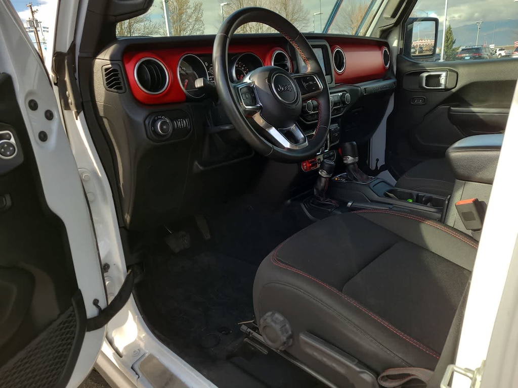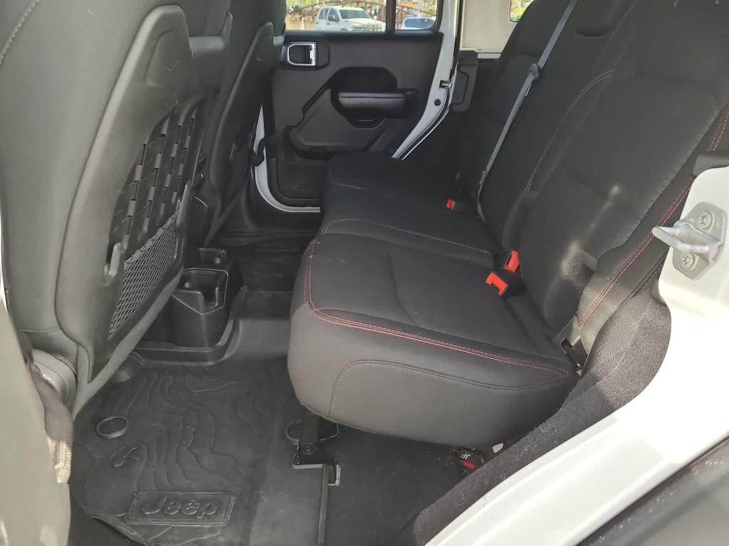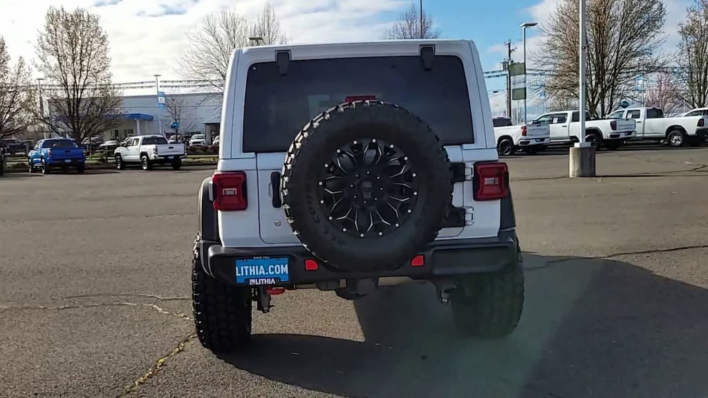 SKY 1-TOUCH POWER TOP Rear Window Defroster, Rear Window Wiper/Washer, Removable Rear Quarter Windows, Power Top Quarter Window Storage Bag, TRANSMISSION: 8-SPEED AUTOMATIC (850RE) TIP Start, Hill Descent Control, ENGINE: 2.0L I4 DOHC DI TURBO ETORQUE 600 Amp Maintenance Free Battery, 48V Belt Starter Generator, Delete Alternator, LED LIGHTING GROUP Daytime Running Lamps LED Accents, Front LED Fog Lamps, LED Reflector Headlamps, LED Taillamps, TRAILER TOW & HD ELECTRICAL GROUP Class II Receiver Hitch, 700 Amp Maintenance Free Battery, 7 & 4 Pin Wiring Harness, 240 Amp Alternator, Auxiliary Switches, REMOTE START SYSTEM. Jeep Rubicon with Bright White Clearcoat exterior and Black interior features a 4 Cylinder Engine with 270 HP at 5250 RPM*.