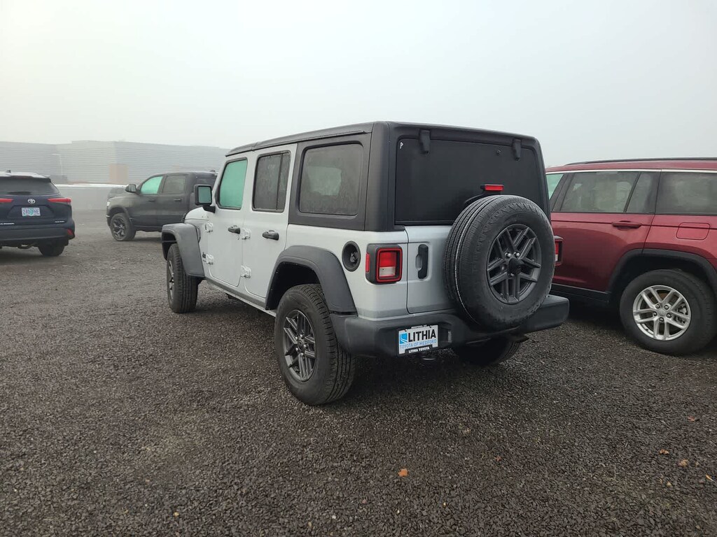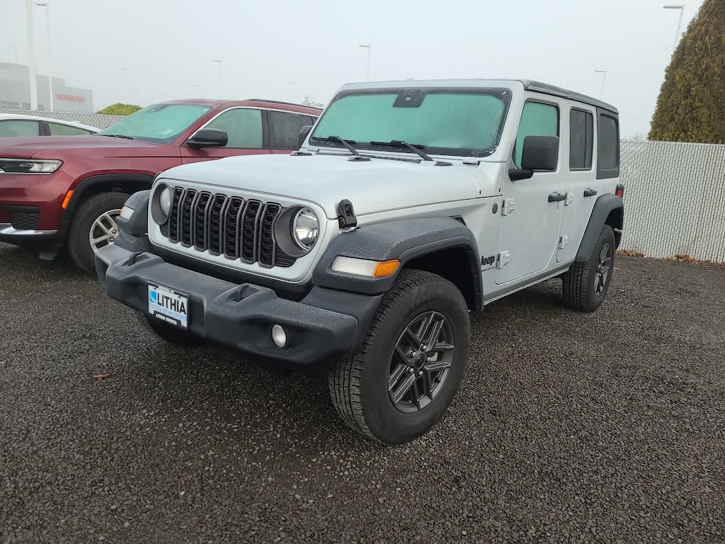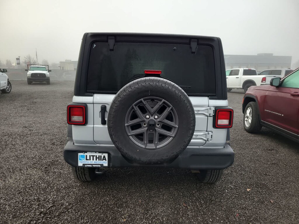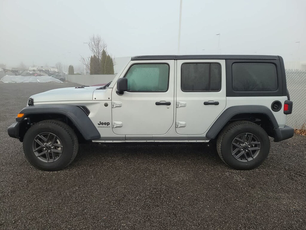 QUICK ORDER PACKAGE 22S SPORT S Engine: 2.0L I4 DOHC DI Turbo w/ESS, Transmission: 8-Speed Automatic (850RE), Advanced Brake Assist, Speed Sensitive Power Locks, Automatic Headlamps, Full Speed Forward Collision Warning Plus, Front 1-Touch Down Power Windows, Sport S, Power Heated Mirrors, Enhanced Adaptive Cruise Control, Corning Gorilla Glass, Premium Wrapped Steering Wheel, Security Alarm, Sun Visors w/Illuminated Vanity Mirrors, Remote Keyless Entry, TRANSMISSION: 8-SPEED AUTOMATIC (850RE) Adaptive Cruise Control w/Stop, Anti-Lock 4-Wheel Disc Brakes, Dana M200 Rear Axle, Selec-Speed Control, BLACK 3-PIECE HARD TOP Freedom Panel Storage Bag, Rear Window Defroster, Rear Window Wiper/Washer, No Soft Top, ENGINE: 2.0L I4 DOHC DI TURBO W/ESS. Jeep Sport S with Silver Zynith Clearcoat exterior and Black interior features a 4 Cylinder Engine with 270 HP at 5250 RPM*.