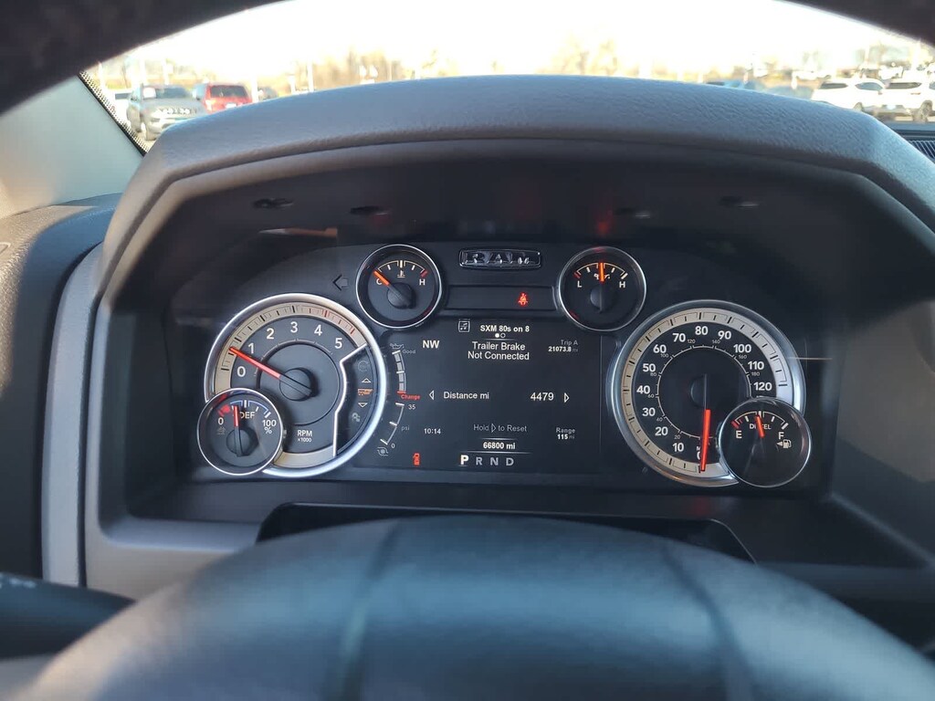 RADIO: UCONNECT 4C NAV W/8.4 DISPLAY Google Android Auto®, SiriusXM Traffic Plus, SiriusXM Satellite Radio, USB Host Flip, HD Radio, Media Hub (2 USB, AUX), For Details Visit DriveUconnect.com, Integrated Center Stack Radio, Integrated Voice Command w/Bluetooth®, 1-Year SiriusXM Guardian Trial, Air Conditioning ATC w/Dual Zone Control, GPS Navigation, SiriusXM Travel Link, GPS Antenna Input, 8.4 Touchscreen Display, Apple CarPlay®, LUXURY GROUP Rear View Auto Dim Mirror, Leather Wrapped Steering Wheel, Exterior Mirrors w/Supplemental Signals, Rear Dome w/On/Off Switch Lamp, LED Bed Lighting, Steering Wheel Mounted Audio Controls, Exterior Mirrors Courtesy Lamps, Glove Box Lamp, Auto Dim Exterior Mirrors, Universal Garage Door Opener, Heated Front Seats, Heated Steering Wheel, Power Folding Mirrors, Power Heated Fold-Away Mirrors, Sun Visors w/Illuminated Vanity Mirrors, Electroluminescent Instrument Cluster, Overhead Console w/Garage Door Opener, DIESEL GRAY/BLACK, PREMIUM CLOTH 40/20/40 BENCH SEAT Power Lumbar Adjust, 115V Auxiliary Power Outlet, Front Center Seat Cushion Storage, Rear 60/40 Split Folding Seat, Folding Flat Load Floor Storage, Power 10-Way Driver Seat, WHEELS: 18 X 8.0 POLISHED ALUMINUM (STD), PARKSENSE REAR PARK ASSIST SYSTEM, TRANSMISSION: 6-SPEED AUTOMATIC (68RFE) 3.42 Axle Ratio. Ram Big Horn with Brilliant Black Crystal Pearlcoat exterior and Diesel Gray/Black interior features a Straight 6 Cylinder Engine with 383 HP at 5600 RPM*.