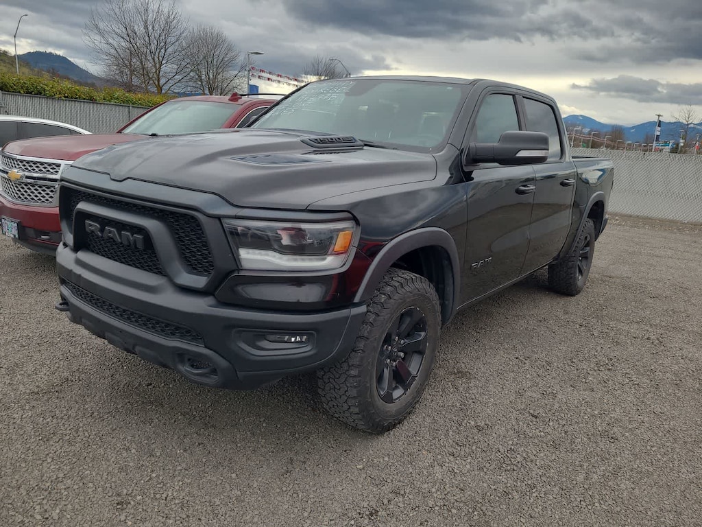 REBEL LEVEL 1 EQUIPMENT GROUP Radio: Uconnect 4 w/8.4 Display, Rear Window Defroster, Rear View Auto Dim Mirror, Power Adjustable Pedals, Rear Dome w/On/Off Switch Lamp, Universal Garage Door Opener, Heated Front Seats, Heated Steering Wheel, Foam Bottle Insert (Door Trim Panel), Single Disc Remote CD Player, Black Premium Power Mirrors, Sun Visors w/Illuminated Vanity Mirrors, ENGINE: 5.7L V8 HEMI MDS VVT Active Noise Control System, Heavy Duty Engine Cooling, Dual Exhaust w/Black Tips, GVWR: 7,100 lbs, Hemi Badge, 220 Amp Alternator, BLACK APPEARANCE PACKAGE Black Front Bumper w/Black Plate, Black Exterior Truck Badging, Black Outline Mustache Grille Texture 3, Monotone Paint, Black 4x4 Tailgate Badge, Wheels: 18 x 8.0 Gloss Black, Black Headlamp Bezels, Body Color Door Handles, RAM Grille Badge - Black, TRANSMISSION: 8-SPEED AUTOMATIC (8HP75). Ram Rebel with Diamond Black Crystal Pearlcoat exterior and Black interior features a 8 Cylinder Engine with 305 HP at 6400 RPM*.
