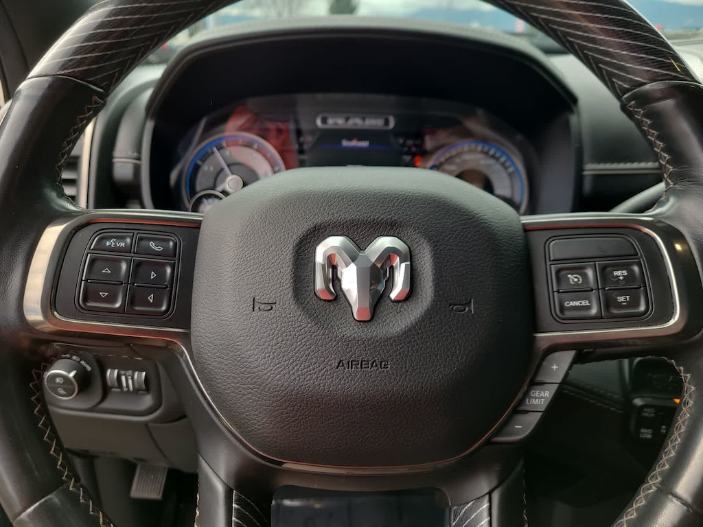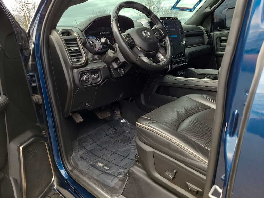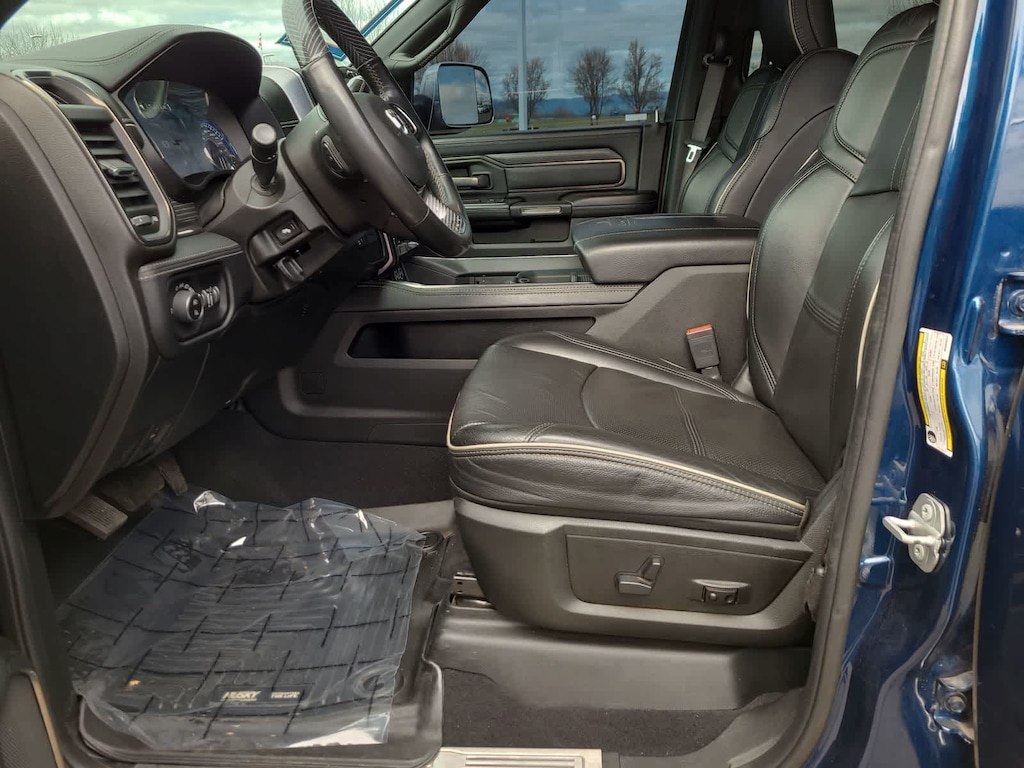 ENGINE: 6.7L I6 CUMMINS TURBO DIESEL Selective Catalytic Reduction (Urea), Dual 730 Amp Maintenance Free Batteries, Cummins Turbo Diesel Badge, Heavy Duty Engine Cooling, Diesel Exhaust Brake, Supplemental Heater, Front Bumper Sight Shields, Capless Fuel Fill w/o Discriminator, 220 Amp Alternator, TRANSMISSION: 6-SPEED AUTOMATIC (68RFE) Leather Wrapped Shift Control. Ram Limited with Patriot Blue Pearlcoat exterior and Black interior features a Straight 6 Cylinder Engine with 370 HP at 2800 RPM*.