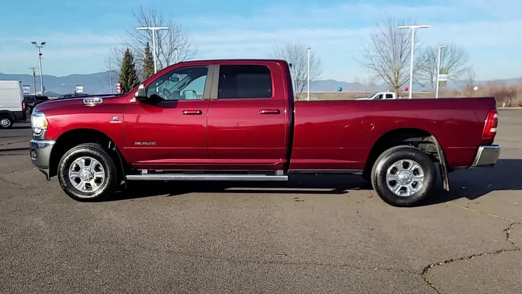 ENGINE: 6.7L I6 CUMMINS HO TURBO DIESEL Selective Catalytic Reduction (Urea), Dual 730 Amp Maintenance Free Batteries, Cummins Turbo Diesel Badge, Heavy Duty Engine Cooling, Current Generation Engine Controller, Diesel Exhaust Brake, Supplemental Heater, Capless Fuel Fill w/o Discriminator, GVWR: 12,300 lbs, LEVEL B EQUIPMENT GROUP Rear Window Defroster, LED Tail Lamps, Rear View Auto Dim Mirror, Power Adjustable Pedals, Leather Wrapped Steering Wheel, Rear Power Sliding Window, Rear Dome w/On/Off Switch Lamp, Front Fog Lamps, Glove Box Lamp, Footwell Courtesy Lamp, Media Hub w/2 Charge Only USBs, Foam Bottle Insert (Door Trim Panel), Exterior 115V AC Outlet, Wheels: 18 x 8.0 Polished Aluminum, Dampened Tailgate, Security Alarm, Big Horn IP Badge, Locking Lower Glove Box, Remote Start System, Power Adjustable Folding Heated Black Tow Mirrors, Steering Wheel Mounted Audio Controls, Air Conditioning ATC w/Dual Zone Control, Dual Glove Boxes, 115V Auxiliary Front Power Outlet, 400W Inverter, Cluster 7.0 TFT Color Display, Universal Garage Door Opener, Power-Folding Mirrors, 2nd Row In Floor, SAFETY GROUP B Auto High Beam Headlamp Control, Rain Sensitive Windshield Wipers, Adaptive Cruise Control w/Stop, Digital Rearview Mirror, Adaptive Steering System, Full Speed Forward Collision Warning Plus, Lane Keep Assist, RADIO: UCONNECT 4C NAV W/8.4 DISPLAY Google Android Auto®, Off-Road Information Pages, SiriusXM Traffic Plus, SiriusXM Satellite Radio, SiriusXM Radio Service, For More Info, Call 800-643-2112, Disassociated Touchscreen Display, HD Radio, Integrated Center Stack Radio, For Details Visit DriveUconnect.com, 1-Year SiriusXM Guardian Trial, Air Conditioning ATC w/Dual Zone Control, GPS Navigation, SiriusXM Travel Link, 4G LTE Wi-Fi Hot Spot, 8.4 Touchscreen Display, Apple CarPlay®, 9 ALPINE SPEAKERS W/SUBWOOFER, TRANSMISSION: 6-SPEED AUTOMATIC AISIN AS69RC HD 12.0 Single Rear Wheel Axle, Transmission Oil Cooler, Chrome Accent Shift Control.