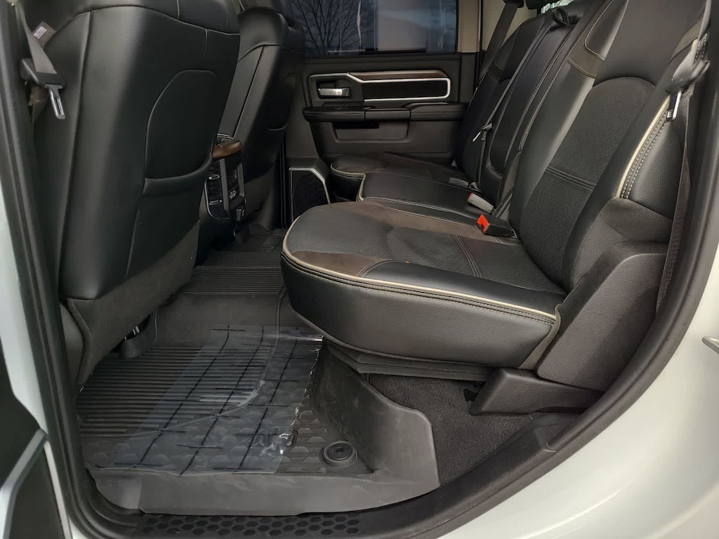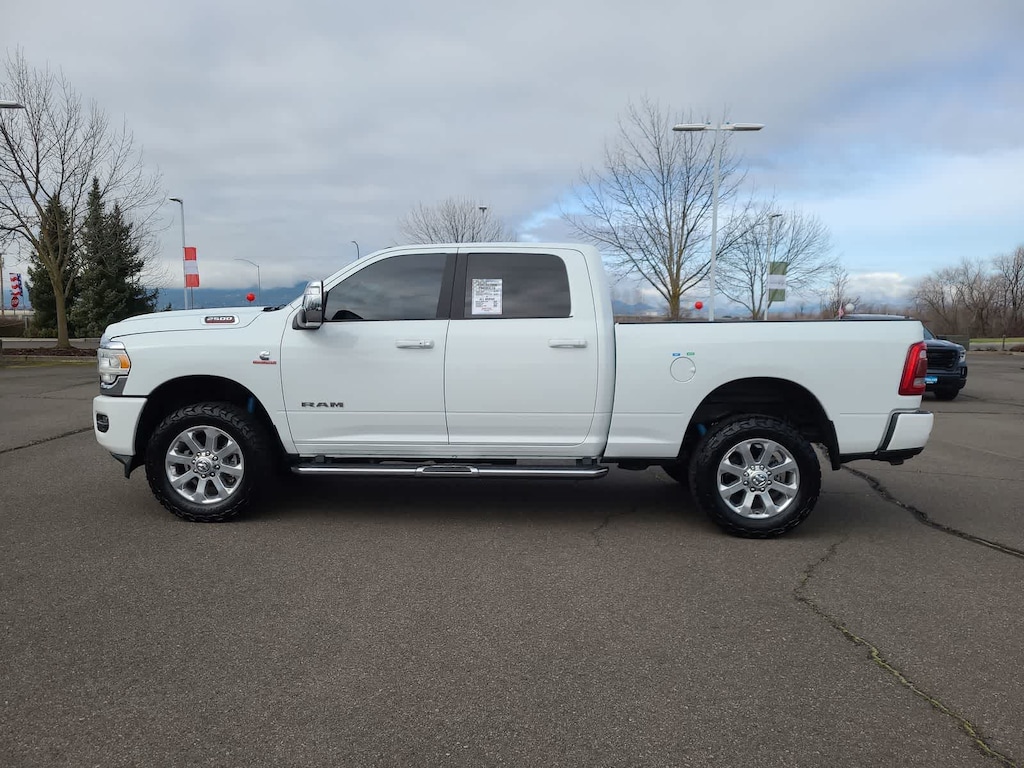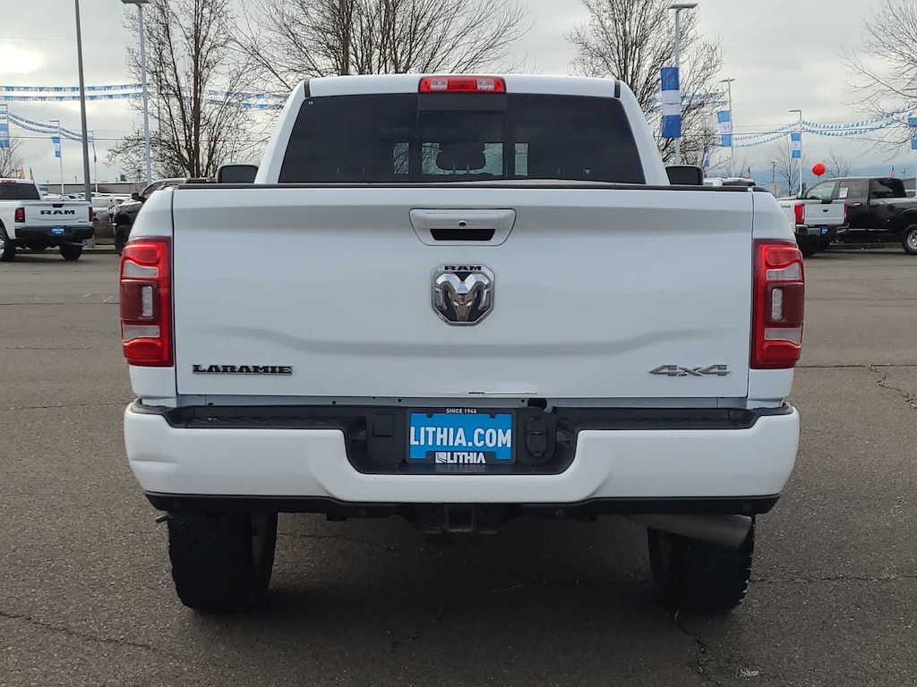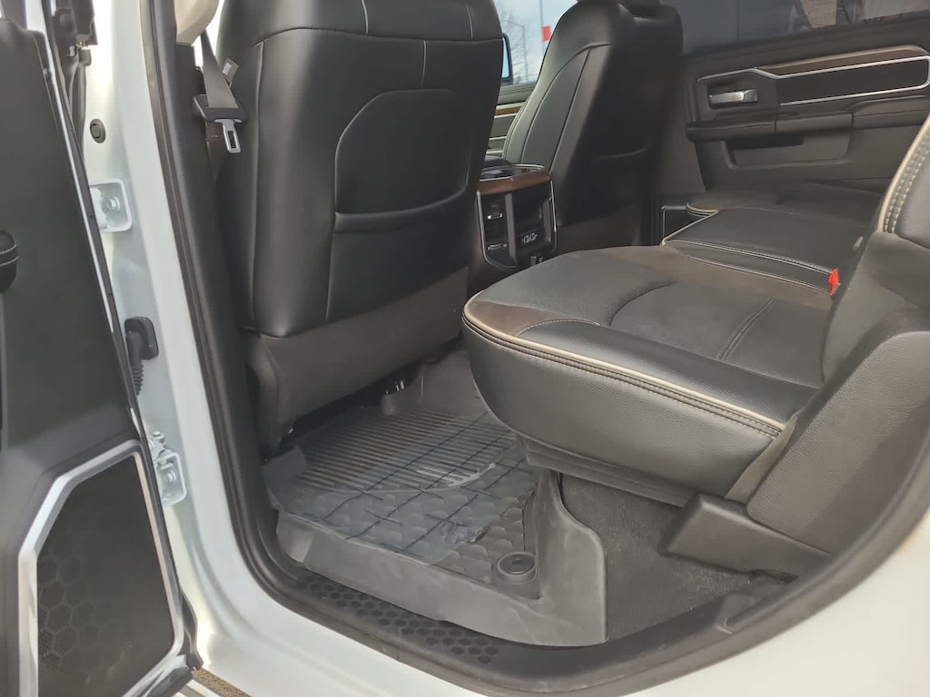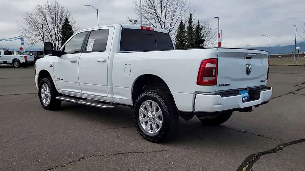ENGINE: 6.7L I6 CUMMINS TURBO DIESEL Selective Catalytic Reduction (Urea), Dual 730 Amp Maintenance Free Batteries, Cummins Turbo Diesel Badge, Heavy Duty Engine Cooling, Supplemental Heater, 220 Amp Alternator, Tow Hooks, Diesel Exhaust Brake, Front Bumper Sight Shields, Capless Fuel Fill w/o Discriminator, LARAMIE LEVEL 1 EQUIPMENT GROUP Blind Spot & Cross Path Detection, Power Adjustable Pedals w/Memory, For Details, Visit DriveUconnect.com, For More Info, Call 800-643-2112, 12 Touchscreen Display, Auto Power-Folding Mirrors, Front LED Fog Lamps, Mirror Running Lights, Alexa Built-In, Power Adjustable Convex Aux Mirrors, Forward & Reverse Utility Lights, Disassociated Touchscreen Display, Remote Tailgate Release, 2nd Row In Floor Storage Bins, Rear Window Defroster, Rain Sensitive Windshield Wipers, Rear Power Sliding Window, GPS Navigation, Auto Dim Exterior Mirror, SiriusXM w/360L, Connected Travel & Traffic Services, LED Reflector Headlamps, Foam Bottle Insert (Door Trim Panel), Off-Road Information Pages, Selectable Tire Fill Alert, Trailer Tow Pages, HD Radio, Radio: Uconnect 5 Nav, WHEELS: 20 X 8.0 POLISHED ALUMINUM Tires: LT285/60R20E OWL On/Off Road, Center Hub, CHROME FLAT CAB-LENGTH SIDE STEPS, BLACK, LEATHER TRIMMED BUCKET SEATS Bucket Seats, High Back Seats, Folding Flat Load Floor Storage, Full Length Upgraded Floor Console, ANTI-SPIN DIFFERENTIAL REAR AXLE, TRANSMISSION: 6-SPEED AUTOMATIC (68RFE). Ram Laramie with Bright White Clearcoat exterior and Black interior features a Straight 6 Cylinder Engine with 370 HP at 2800 RPM*.