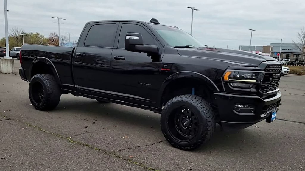 ENGINE: 6.7L I6 CUMMINS TURBO DIESEL Selective Catalytic Reduction (Urea), Dual 730 Amp Maintenance Free Batteries, Cummins Turbo Diesel Badge, Heavy Duty Engine Cooling, Diesel Exhaust Brake, Supplemental Heater, Front Bumper Sight Shields, Capless Fuel Fill w/o Discriminator, 220 Amp Alternator (STD), LIMITED LEVEL 1 EQUIPMENT GROUP CTR Stop Lamp w/Cargo View Camera, Surround View Camera System, For Details, Visit DriveUconnect.com, For More Info, Call 800-643-2112, LED Bed Lighting, Power Deployable Running Boards, 12 Touchscreen Display, RamBox Cargo Management System, Adaptive Steering System, Trailer Reverse Guidance, Selectable Tire Fill Alert, Trailer Tow Pages, Ramcharger Wireless Charging Pad, Radio: Uconnect 5 Nav w/12.0 Display, 4 Adjustable Cargo Tie-Down Hooks, Full Speed Forward Collision Warning Plus, MOPAR Spray In Bedliner, 17 Speaker harman/kardon® Premium Sound, Truck Bed Cargo Divider, Adaptive Cruise Control w/Stop, Digital Rearview Mirror, Lane Keep Assist, NIGHT EDITION Black Exterior Truck Badging, Black Ram Head Tailgate Badge, Body Color Grille Surround, Black Headlamp Bezels, Sport Performance Hood, Black Grille Limited, Wheels: 20 x 8.0 Cast Aluminum Black, Black Wheel Center Hub, Black Tail Lamp Bezels, ANTI-SPIN DIFFERENTIAL REAR AXLE, TRANSMISSION: 6-SPEED AUTOMATIC (68RFE) Leather Wrapped Shift Control (STD). Ram Limited with Diamond Black Crystal Pearlcoat exterior and Black interior features a Straight 6 Cylinder Engine with 370 HP at 2800 RPM*. Comes with a Lithia 60 Day/3,000 Mile Limited Warranty Clean