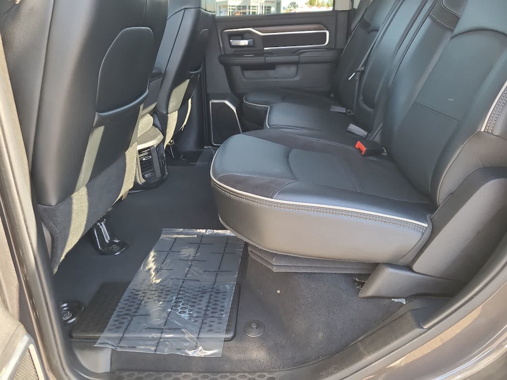 ENGINE: 6.7L I6 CUMMINS TURBO DIESEL Selective Catalytic Reduction (Urea), Dual 730 Amp Maintenance Free Batteries, Cummins Turbo Diesel Badge, Heavy Duty Engine Cooling, Supplemental Heater, 220 Amp Alternator, Tow Hooks, Diesel Exhaust Brake, Front Bumper Sight Shields, Capless Fuel Fill w/o Discriminator, SAFETY GROUP Auto High Beam Headlamp Control, Blind Spot & Cross Path Detection, Rain Sensitive Windshield Wipers, Adaptive Cruise Control w/Stop, Adaptive Steering System, Full Speed Forward Collision Warning Plus, Lane Keep Assist, LARAMIE LEVEL 1 EQUIPMENT GROUP Blind Spot & Cross Path Detection, LED Tail Lamps, Power Adjustable Pedals w/Memory, For Details, Visit DriveUconnect.com, For More Info, Call 800-643-2112, 12 Touchscreen Display, Auto Power-Folding Mirrors, Front LED Fog Lamps, Mirror Running Lights, Alexa Built-In, Power Adjustable Convex Aux Mirrors, Forward & Reverse Utility Lights, Disassociated Touchscreen Display, Remote Tailgate Release, Center Hub, 2nd Row In Floor Storage Bins, Rear Window Defroster, Rain Sensitive Windshield Wipers, Rear Power Sliding Window, GPS Navigation, Auto Dim Exterior Mirror, SiriusXM w/360L, Connected Travel & Traffic Services, LED Reflector Headlamps, Foam Bottle Insert (Door Trim Panel), Off-Road Information Pages, Selectable Tire Fill Alert, Trailer Tow Pages, HD, TRANSMISSION: 6-SPEED AUTOMATIC (68RFE). Ram Laramie with Granite Crystal Metallic Clearcoat exterior and Black interior features a Straight 6 Cylinder Engine with 410 HP at 5600 RPM*.