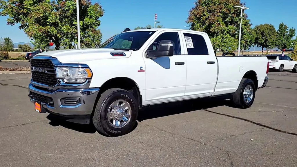 ENGINE: 6.7L I6 CUMMINS HO TURBO DIESEL Selective Catalytic Reduction (Urea), Dual 730 Amp Maintenance Free Batteries, Cummins Turbo Diesel Badge, Heavy Duty Engine Cooling, Current Generation Engine Controller, Diesel Exhaust Brake, Supplemental Heater, Capless Fuel Fill w/o Discriminator, GVWR: 12,300 lbs, RADIO: UCONNECT 5 NAV W/12.0 DISPLAY Google Android Auto®, Off-Road Information Pages, SiriusXM Radio Service, Selectable Tire Fill Alert, Trailer Tow Pages, Disassociated Touchscreen Display, HD Radio, For More Info, Call 800-643-2112, Connectivity - US/Canada, 12 Touchscreen Display, GPS Navigation, 4G LTE Wi-Fi Hot Spot, SiriusXM w/360L, All Radio Equipped Vehicles, Connected Travel & Traffic Services, All R1 High Radios, Alexa Built-In, Apple CarPlay®, SAFETY GROUP Auto High Beam Headlamp Control, Cluster 7.0 TFT Color Display, Rain Sensitive Windshield Wipers, Leather Wrapped Steering Wheel, Adaptive Cruise Control w/Stop, Steering Wheel Mounted Audio Controls, Adaptive Steering System, Full Speed Forward Collision Warning Plus, Lane Keep Assist, TOWING TECHNOLOGY GROUP CTR Stop Lamp w/Cargo View Camera, Surround View Camera System, Blind Spot & Cross Path Detection, LED Tail Lamps, Power Heated Fold Telescopic Mirrors, Exterior Mirrors w/Heating Element, Forward & Reverse Utility Lights, Mirror Running Lights, Exterior Mirrors w/Supplemental Signals, Power Adjust Mirrors, Exterior Mirrors Courtesy Lamps, Power Telescoping Mirrors, Auto Power-Folding Mirrors, Power-Adjustable Convex Aux Mirrors, Trailer Reverse Guidance, Chrome Nostrils/MIC Black Grille, CONVENIENCE GROUP Air Conditioning ATC w/Dual Zone Control, Tinted Acoustic Windshield Glass, Rear View Auto Dim Mirror, BLACK, CLOTH 40/20/40 BENCH SEAT, PARKSENSE REAR PARK ASSIST SYSTEM, TRADESMAN LEVEL 2 EQUIPMENT GROUP Rear Window Defroster, Power Heat Fold Telescopic Mirrors, Rear Power Sliding Window, Exterior Mirrors w/Supplemental Signals, Exterior Mirrors Courtesy Lamps, Exterior Mirrors w/Heating Element, Mirror Running Lights, Power Adjust Mirrors, Carpet Floor Covering, Front & Rear Floor Mats, Power-Adjustable Convex Aux Mirrors, TRANSMISSION: 6-SPEED AUTOMATIC AISIN AS69RC HD Urethane Shift Control, Transmission Oil Cooler. Ram Tradesman with Bright White Clearcoat exterior and Black interior features a Straight 6 Cylinder Engine with 410 HP at 5600 RPM*. Comes with a Lithia 60 Day/3,000 Mile Limited Warranty