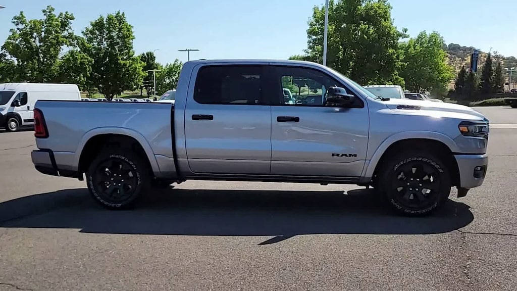 BIG HORN LEVEL 2 EQUIPMENT GROUP Google Android Auto®, Power Adjustable Pedals, Leather Wrapped Steering Wheel, 12 Touchscreen Display, Glove Box Lamp, Auto Power-Folding Mirrors, 115V Auxiliary Rear Power Outlet, Media Hub w/2 Charge Only USBs, Heated Front Seats, Security Alarm, Black Premium Power Mirrors, Apple CarPlay®, Premium Overhead Console, 9 Amplified Speakers w/Subwoofer, Remote Tailgate Release, 115V Auxiliary Power Outlet, LED Dome Lamp w/On/Off Switch, Universal Garage Door Opener, 2nd Row In Floor Storage Bins, Sun Visors w/Illuminated Vanity Mirrors, LED Footwell Lighting, Power 2-Way Driver Lumbar Adjust, Rear Window Defroster, Rear View Auto Dim Mirror, Rear Power Sliding Window, GPS Navigation, Overhead LED Lamps, Auto Dim Exterior Driver Mirror, SiriusXM w/360L, NIGHT EDITION Tires: 275/55R20 OWL All Season, Accent Color Premium Power Mirrors, Exterior Mirrors w/Supplemental Signals, Black Headlamp Bezels, Exterior Mirrors Courtesy Lamps, Grille Black Surround Black Mesh, Auto Power-Folding Mirrors, Wheels: 20 x 9.0 Aluminum Painted Clad, Auto Dim Exterior Driver Mirror, Black Exterior Truck Badging, Anti-Spin Differential Rear Axle, Accent Color Door Handles, Accent Color Tailgate Handle, Black Interior Accents, Body Color Front Bumper, Body Color Rear Bumper w/Step Pads, Black Tail Lamp Bezels, RAM Grille Badge - Black, Black Painted Exterior Mirrors Caps, MOPAR FRONT & REAR RUBBER FLOOR MATS, TRANSMISSION: 8-SPEED AUTOMATIC (850RE) (STD), ENGINE: 3.6L V6 24V VVT ETORQUE UPG I (STD), BLACK, DELUXE CLOTH BUCKET SEATS Bucket Seats, Full Length Floor Console, Power Adjust 8-Way Driver Seat, Rear Center Armrest, Power 2-Way Driver Lumbar Adjust. Ram Big Horn with Billet Silver Metallic Clearcoat exterior and Black interior features a V6 Cylinder Engine with 305 HP at 6400 RPM*.