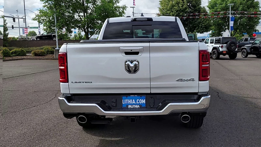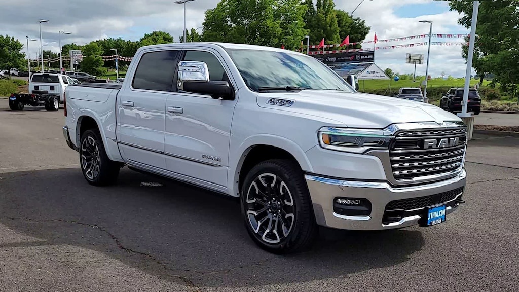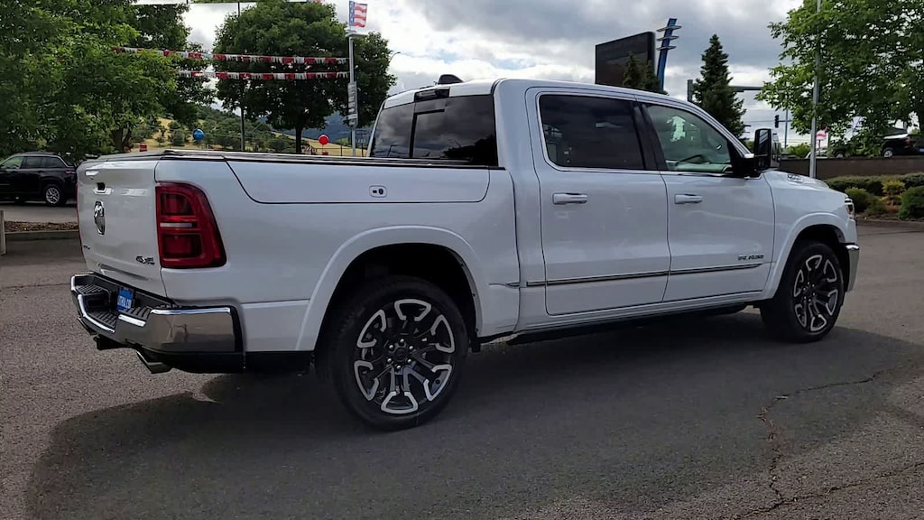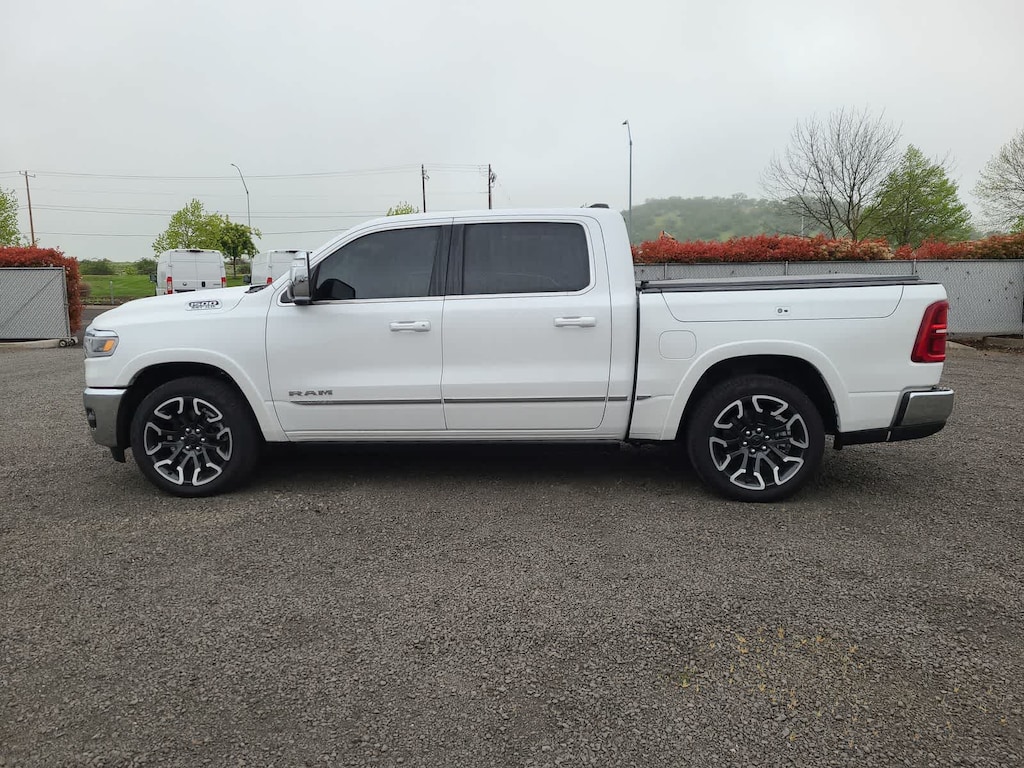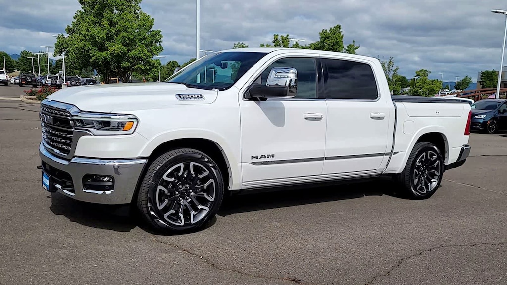 LIMITED LEVEL A EQUIPMENT GROUP Surround View Camera System, LED CHMSL Lamp, For Details, Visit DriveUconnect.com, Tri-Fold Tonneau Cover, Traffic Sign Recognition, Hands-Free Active Driving Assist System, Head Up Display, Evasive Steer Assist, Drowsy Driver Detection, Intersection Collision Assist System, Disassociated Touchscreen Display, Smartphone As A Key Capable, 14.4 Touchscreen Display, Radio: Uconnect 5 Nav w/14.4 Display, 240 Amp Alternator, 12-Way/1-Way Trailer Connector, WHEELS: 22 X 9 PREMIUM PAINT/POLISHED Tires: 285/45R22XL BSW All Season, Pirelli Brand Tires, DUAL-PANE PANORAMIC SUNROOF LED Dome/Reading Lamp, Dome Dual LED Reading Lamp, MULTI-FUNCTION TAILGATE Remote Tailgate Release, RAMs Head Badge, CHROME POWER-FOLD TRAILER TOW MIRRORS Forward & Reverse Utility Lights, Trailer Tow Mirrors, Mirror Clearance/Running Lights, Power Telescoping Mirrors, Auto Dim Exterior Passenger Mirror, Power-Adjustable Convex Aux Mirrors, TRANSMISSION: 8-SPEED AUTOMATIC (8HP75) (STD), ENGINE: 3.0L I6 HURRICANE HO TWIN TURBO ESS (STD). Ram Limited with Ivory White Tri-Coat Pearlcoat exterior and Black interior features a Straight 6 Cylinder Engine.
