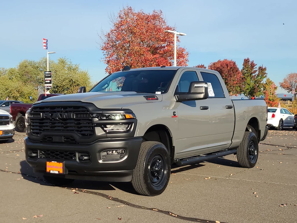 ENGINE: 6.7L I6 CUMMINS HO TURBO DIESEL Selective Catalytic Reduction (Urea), Dual 730 Amp Maintenance Free Batteries, Cummins Turbo Diesel Badge, Heavy Duty Engine Cooling, Diesel Exhaust Brake, Supplemental Heater, 3.42 Axle Ratio, Front Bumper Sight Shields, Capless Fuel Fill w/o Discriminator, GVWR: 11,040 lbs, TRADESMAN LEVEL 1 EQUIPMENT GROUP Convenience Group, Emergency Vehicle Alert System (EVAS), 12 Touchscreen Display, Auto Power-Folding Mirrors, Anti-Spin Differential Rear Axle, Mirror Running Lights, Exterior 115V AC Outlet, Alexa Built-In, Power-Adjustable Convex Aux Mirrors, Forward & Reverse Utility Lights, Disassociated Touchscreen Display, 115V Auxiliary Front Power Outlet, Rear View Auto Dim Mirror, Rear Power Sliding Window, Tinted Acoustic Windshield Glass, GPS Navigation, Exterior Mirrors w/Heating Element, MOPAR Black Tubular Side Steps, SiriusXM w/360L, Connected Travel & Traffic Services, Carpet Floor Covering, Off-Road Info Pages, Trailer Tow Pages, 400W Inverter, HD Radio, Power Heated Folding Telescope Mirrors, Radio: Uconnect 5 Nav w/12.0 Display, Exterior Mirrors, TRANSMISSION: 8-SPEED TORQUEFLITE HD AUTOMATIC, BLACK, CLOTH 40/20/40 BENCH SEAT. Ram Tradesman with Ceramic Gray Clearcoat exterior and Black interior features a Straight 6 Cylinder Engine with 430 HP at 2800 RPM*. Comes with a Lithia 60 Day/3,000 Mile Limited Warranty Clean